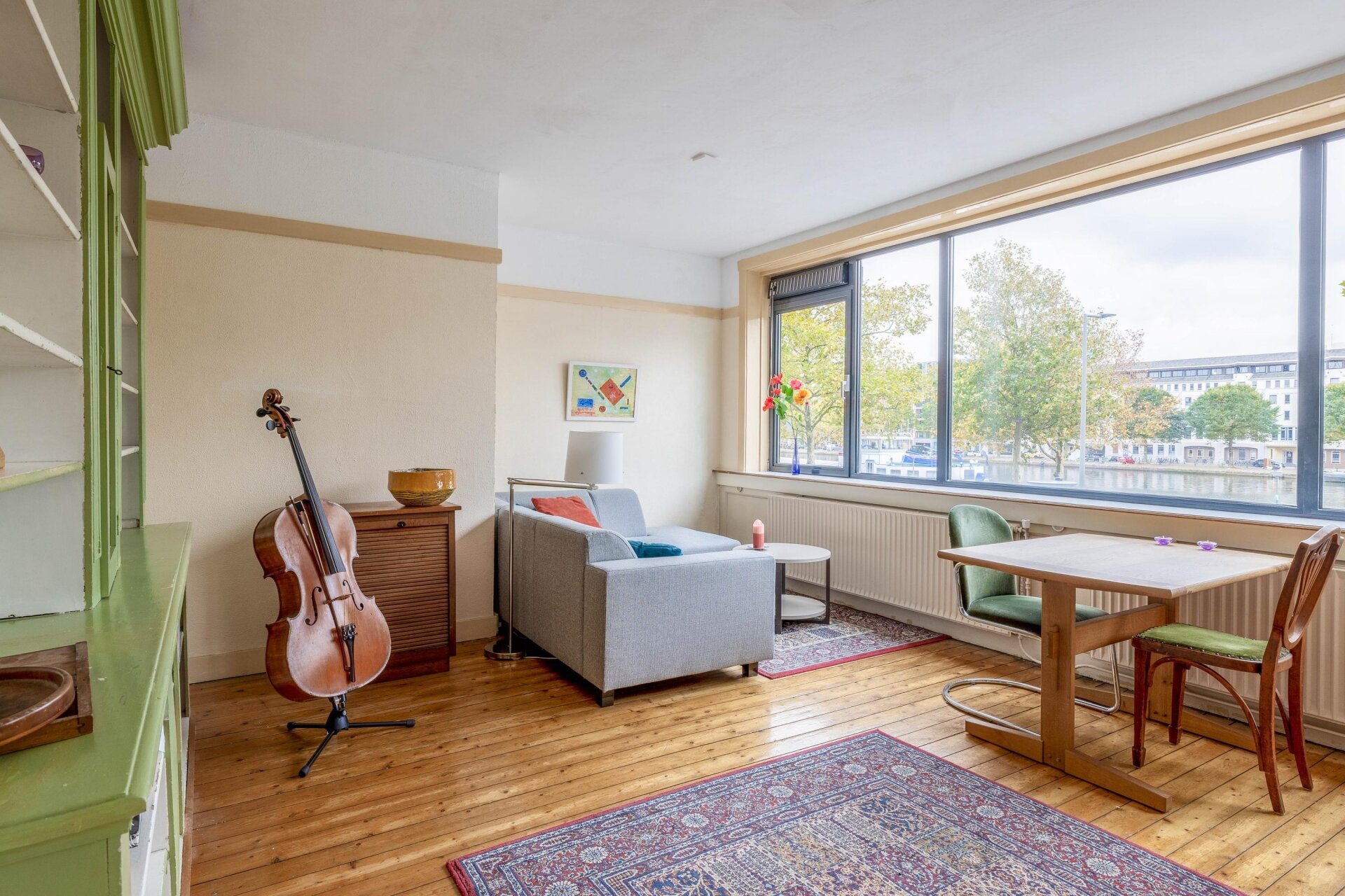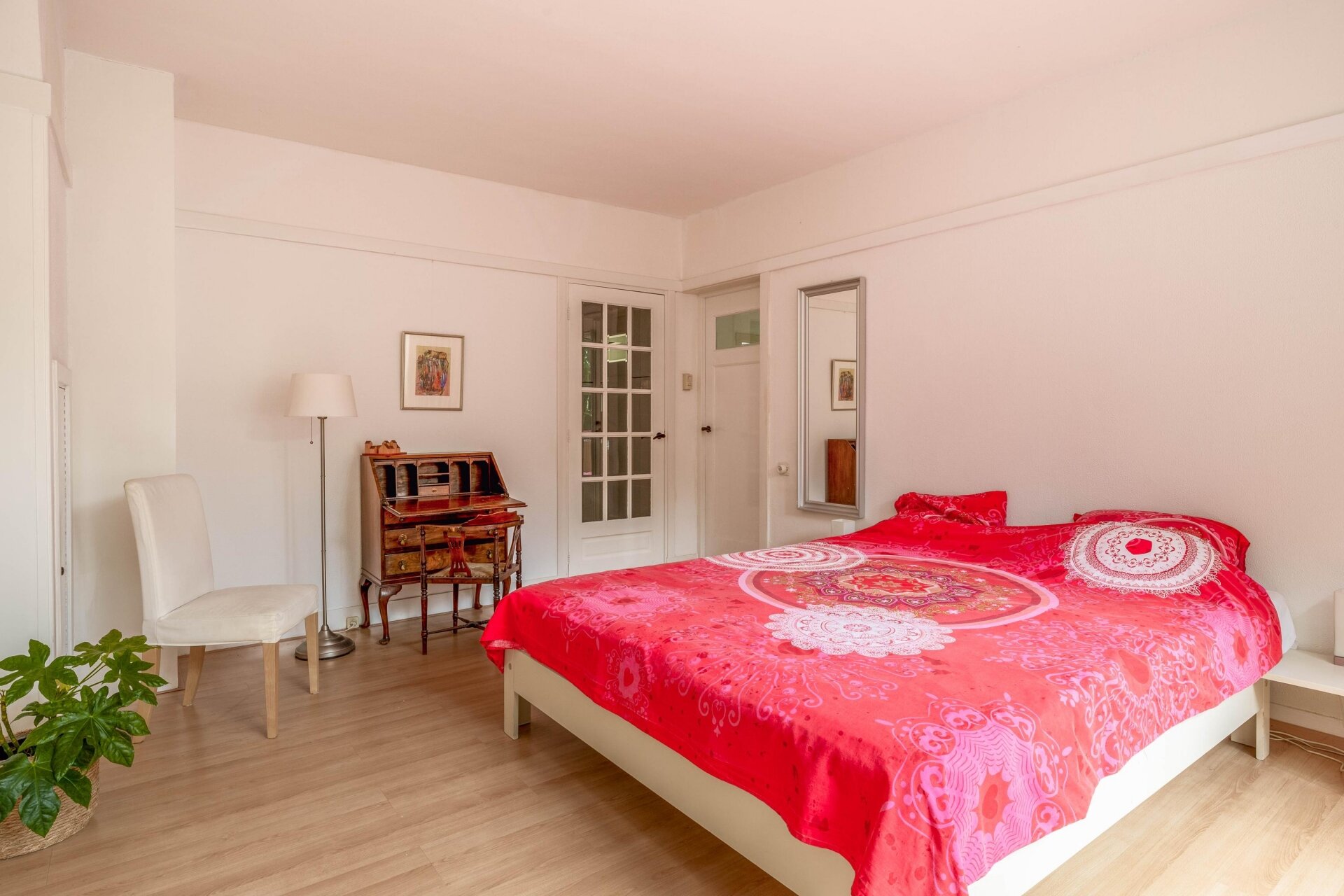 De hoge plafonds, originele details en houten vloeren benadrukken het karakter van de jaren 30-architectuur, terwijl de grote ramen zorgen voor een prettige lichtinval.
