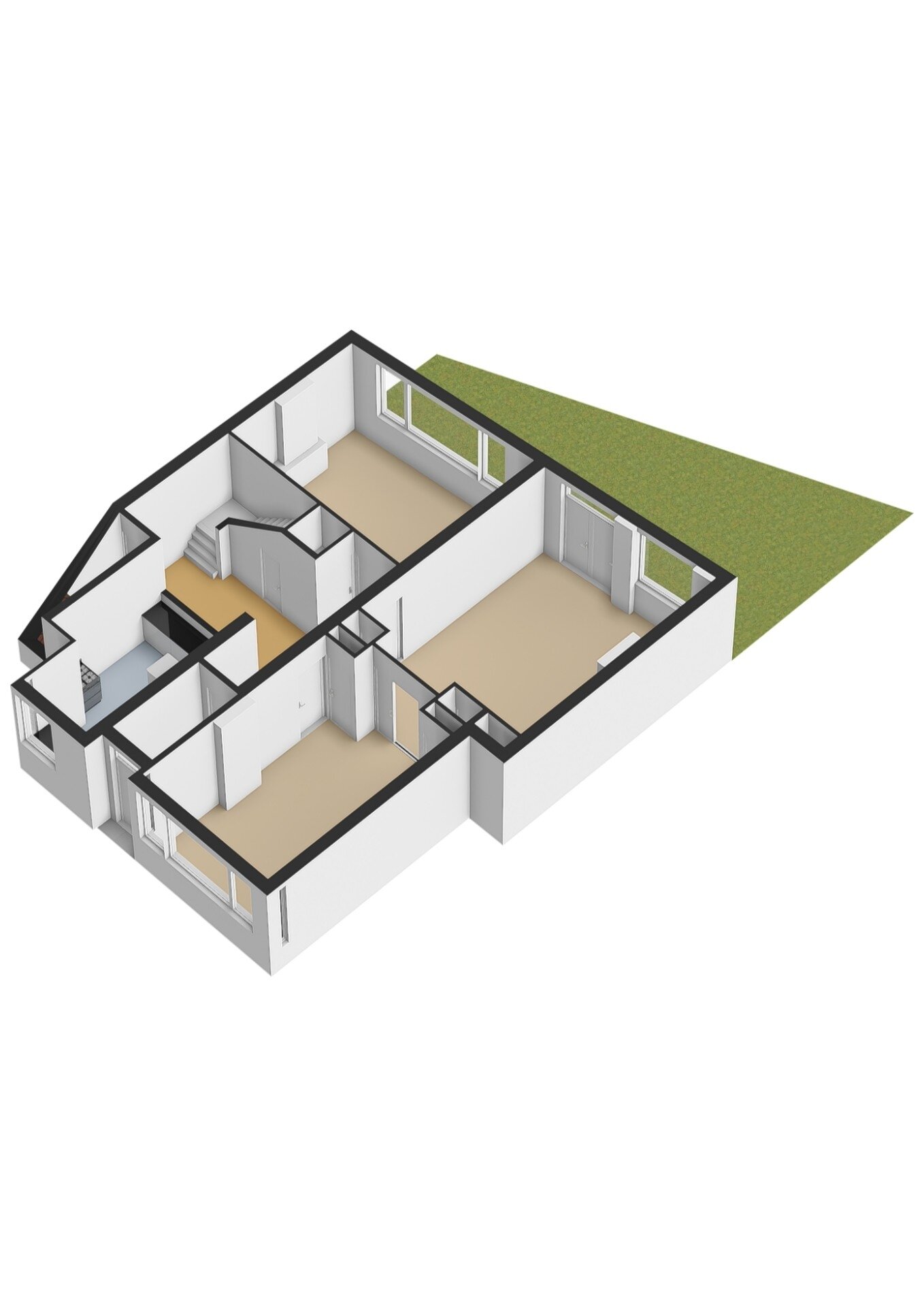 De keuken bevindt zich centraal in de woning en is functioneel ingericht, met een directe verbinding naar de hal en de woonvertrekken, praktisch en overzichtelijk in gebruik.
