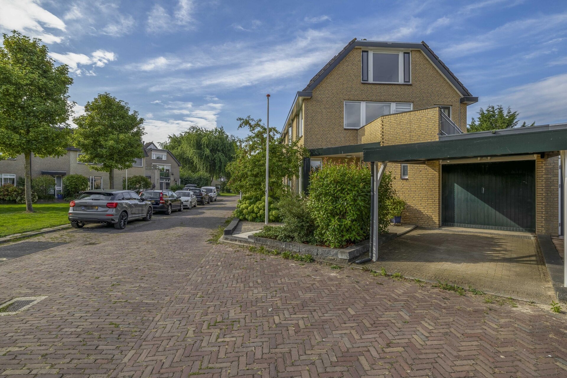De achtertuin ligt op het zuidwesten, waardoor je hier heerlijk van de zon kunt genieten. Er is voldoende ruimte voor een grote eettafel, een loungehoek én speelruimte voor kinderen. Aan de voorzijde van het huis heb je een eigen oprit met carport én een aangebouwde garage, ideaal voor fietsen, gereedschap of gewoon extra opslag, hobby- of werkruimte.