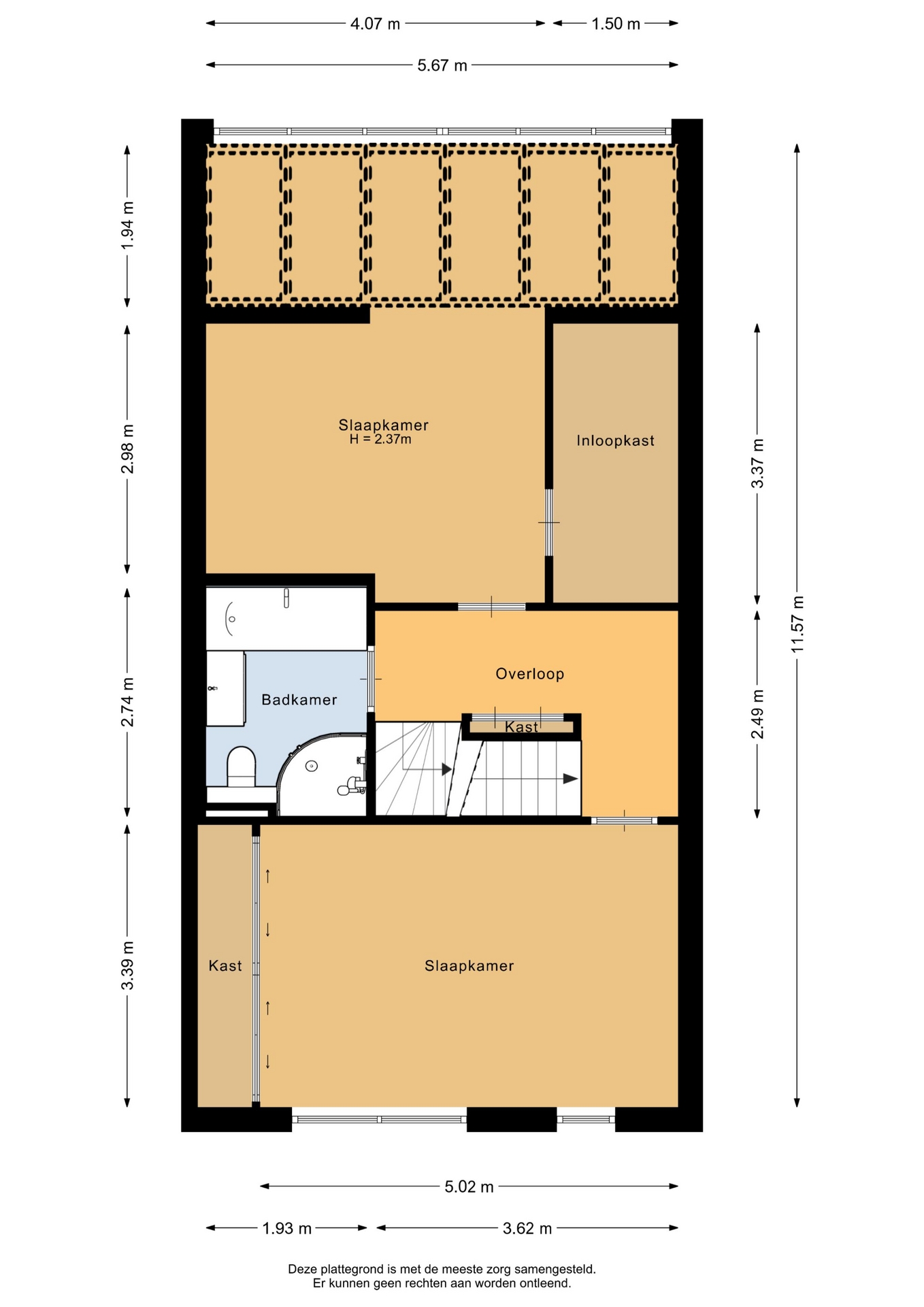 “Deze informatie is door ons met de nodige zorgvuldigheid samengesteld. Onzerzijds wordt echter geen enkele aansprakelijkheid aanvaard voor enige onvolledigheid, onjuistheid of anderszins, dan wel de gevolgen daarvan. Alle opgegeven maten en oppervlakten zijn indicatief.”