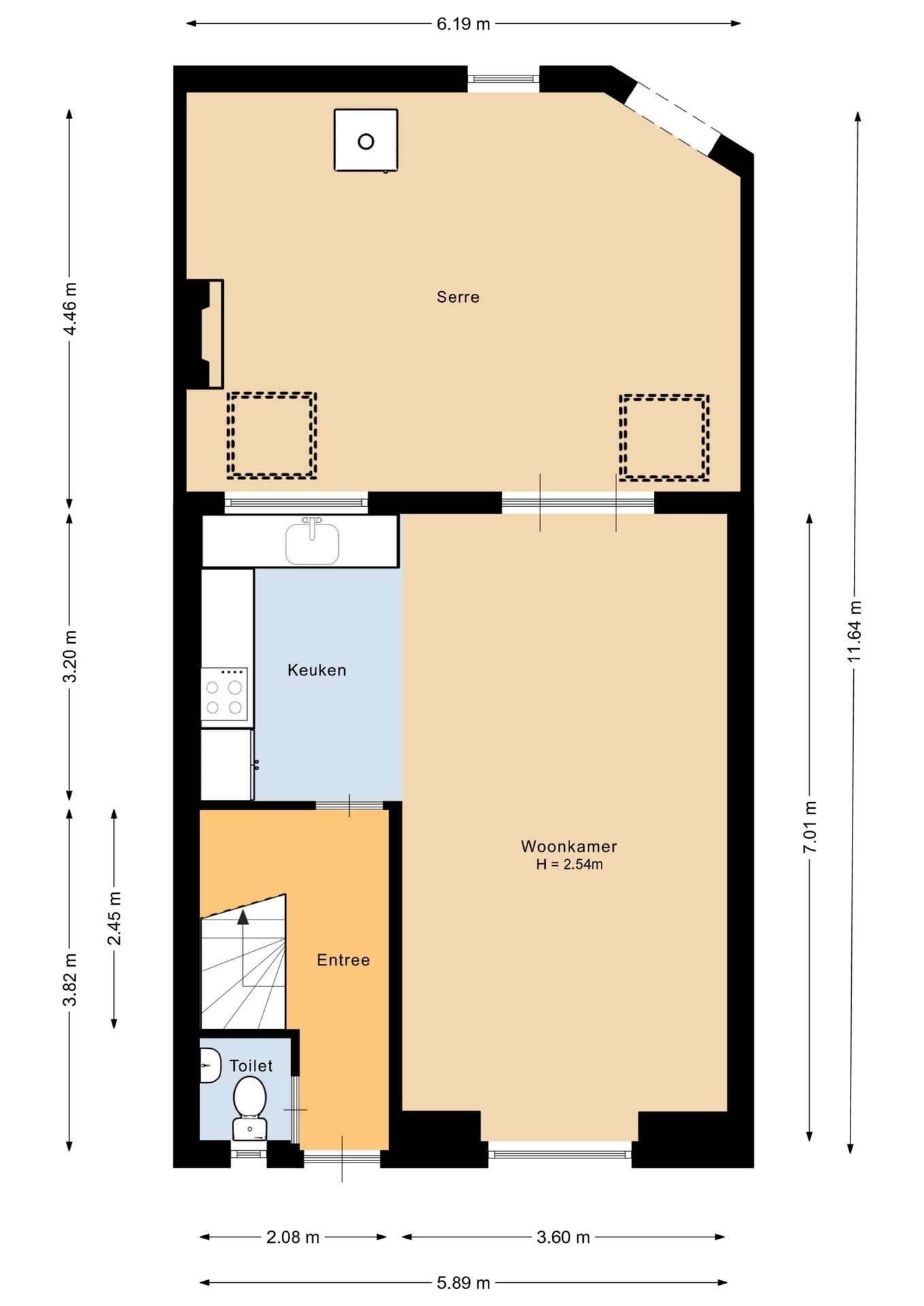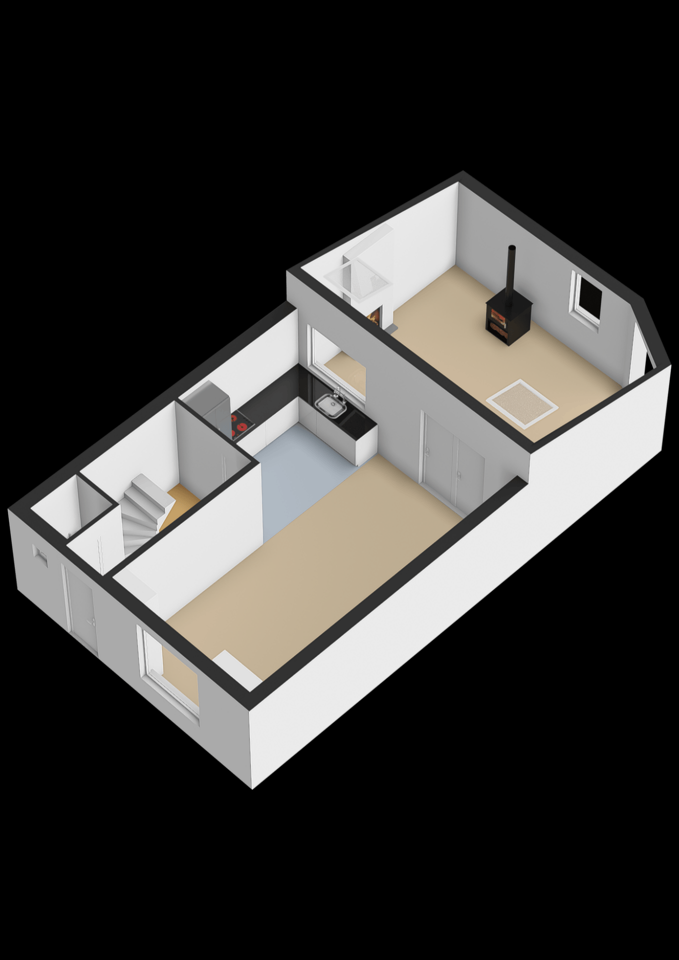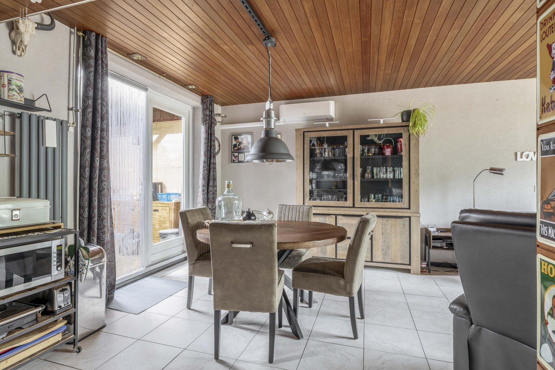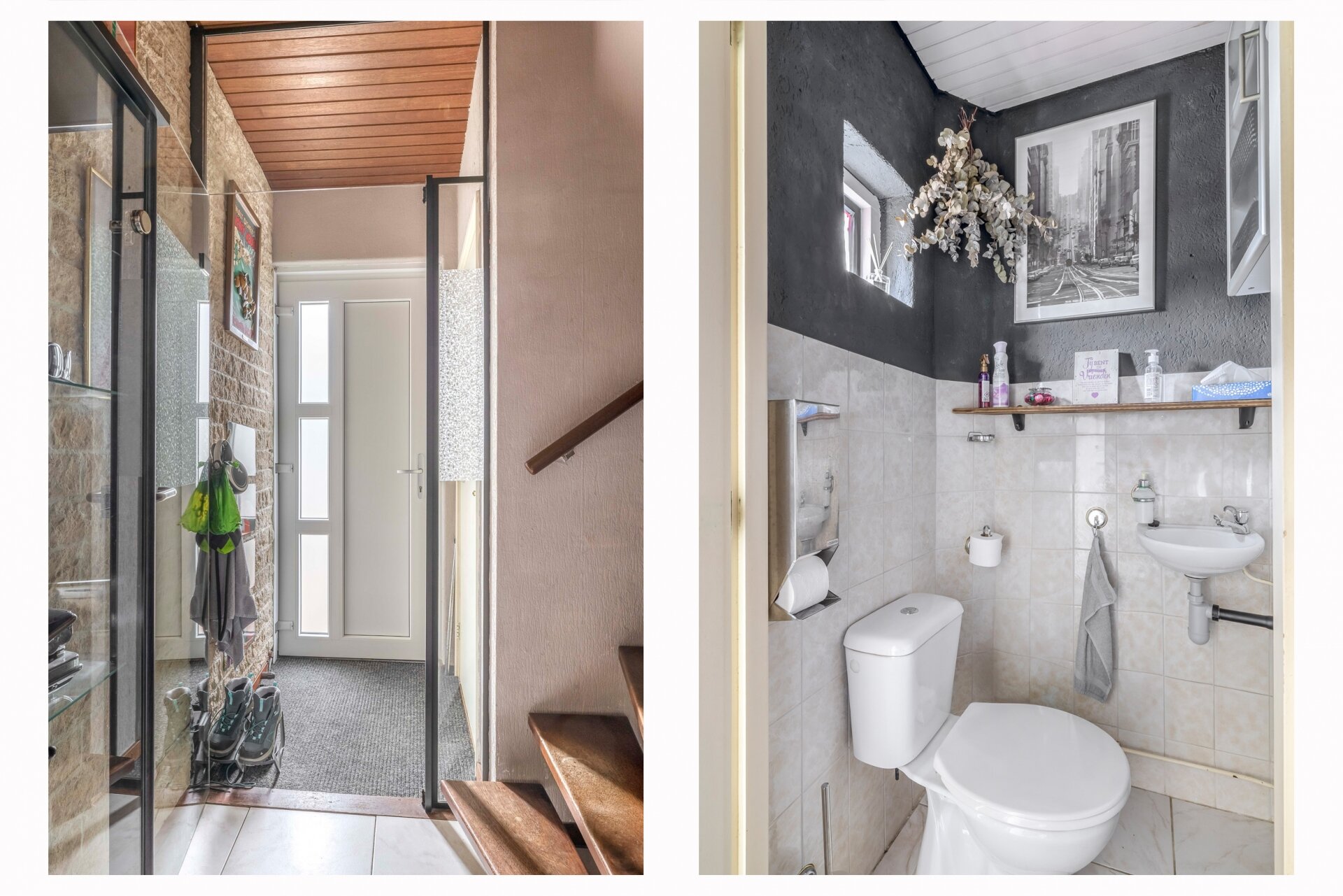 Je komt binnen in een nette hal met meterkast (inclusief krachtstroom), toilet met fonteintje en trapopgang. De woonkamer is ruim, licht en afgewerkt met plavuizen en airco. Vanuit hier loop je door naar de halfopen keuken, die is uitgerust met een inductiekookplaat, afzuigkap, vaatwasser, koel-vriescombinatie en openslaande deuren naar de serre. De keukenopstelling is praktisch en sluit goed aan op het dagelijks gebruik. De serre is een verlengstuk van de woning: voorzien van een sfeervolle sierhaard en allesbrander, waardoor je hier zelfs op koudere dagen comfortabel zit. Een heerlijke plek voor een ontbijtje in het zonnetje of een borrel met vrienden.