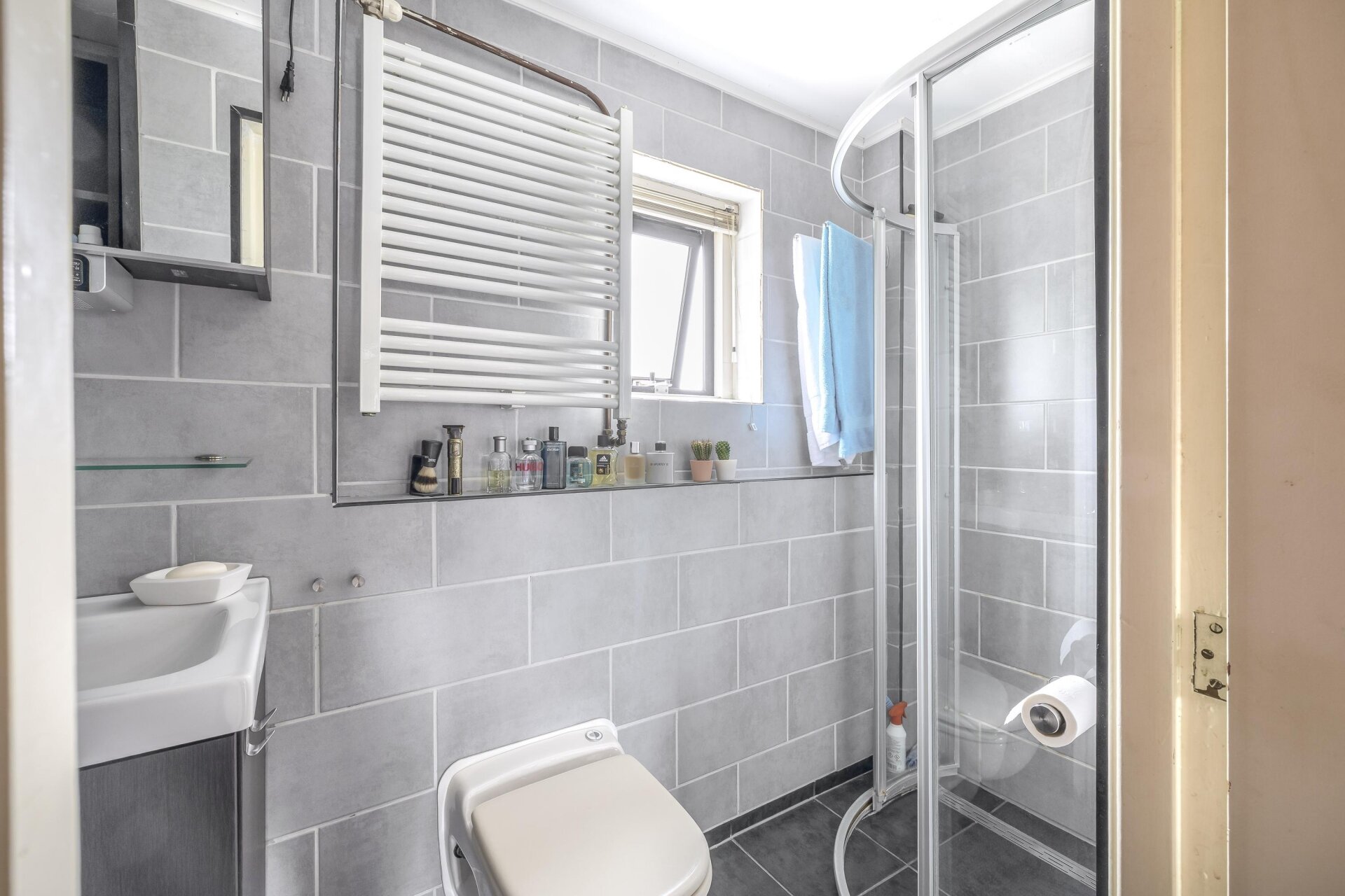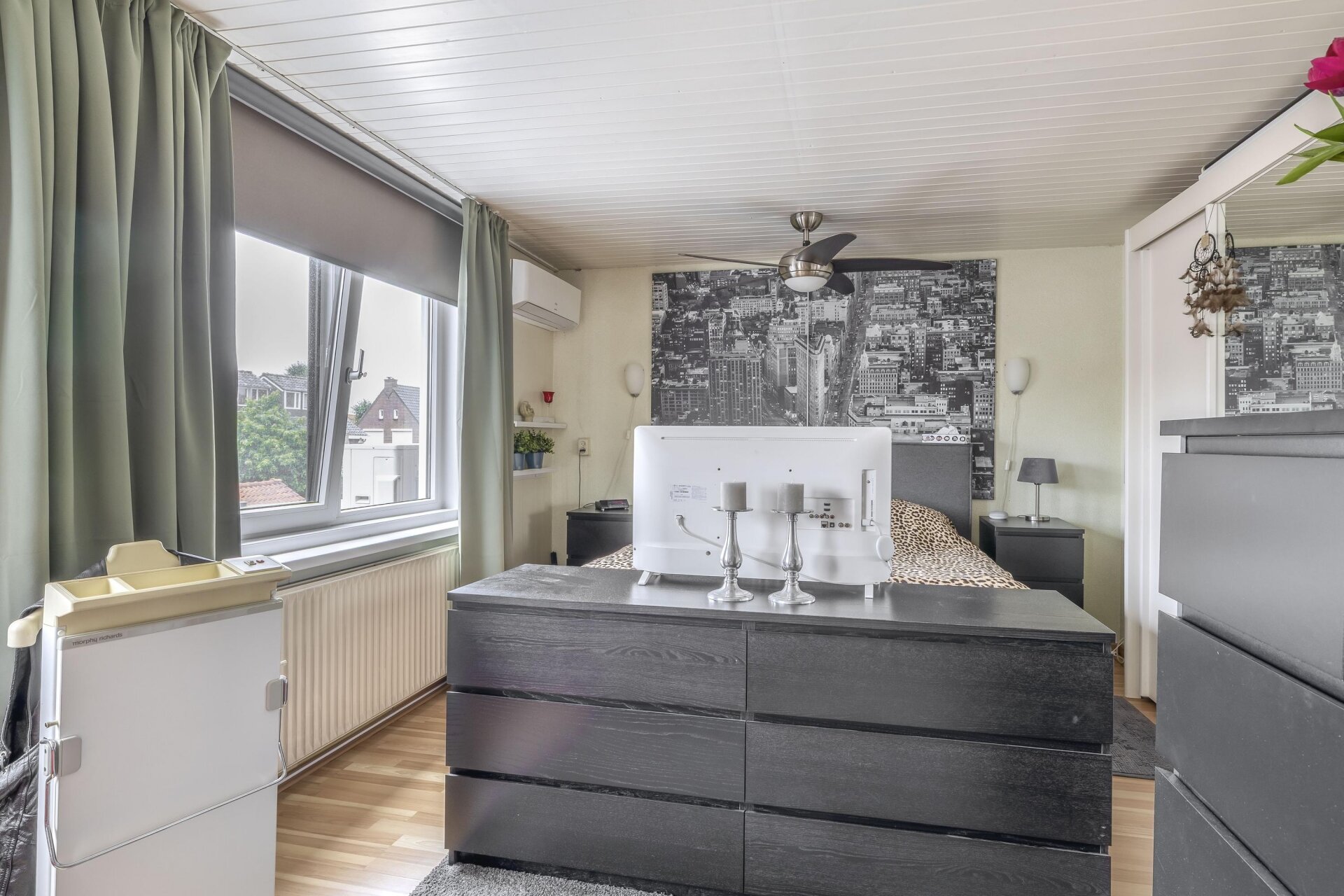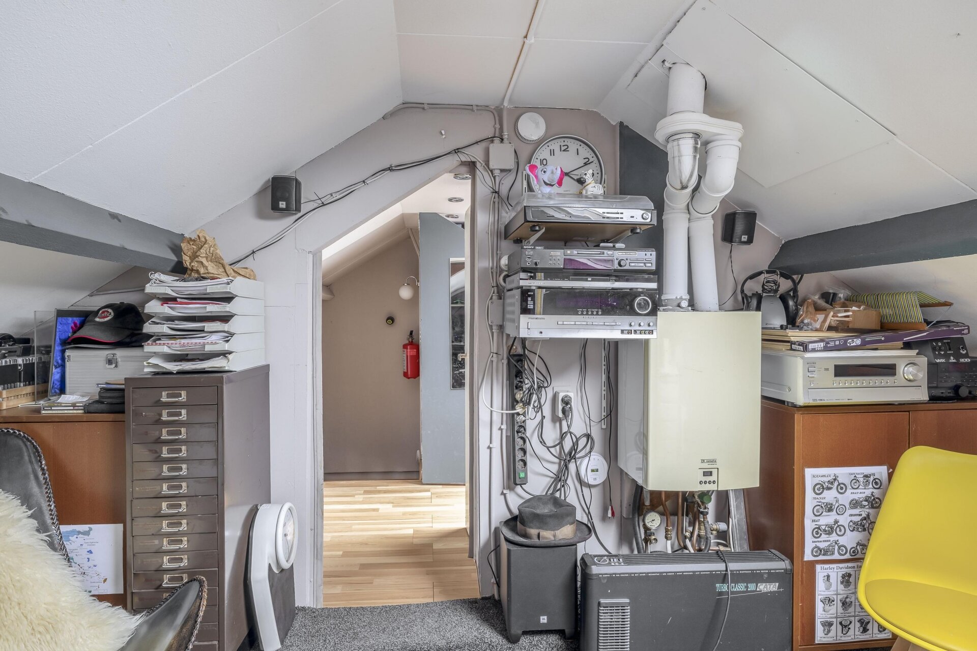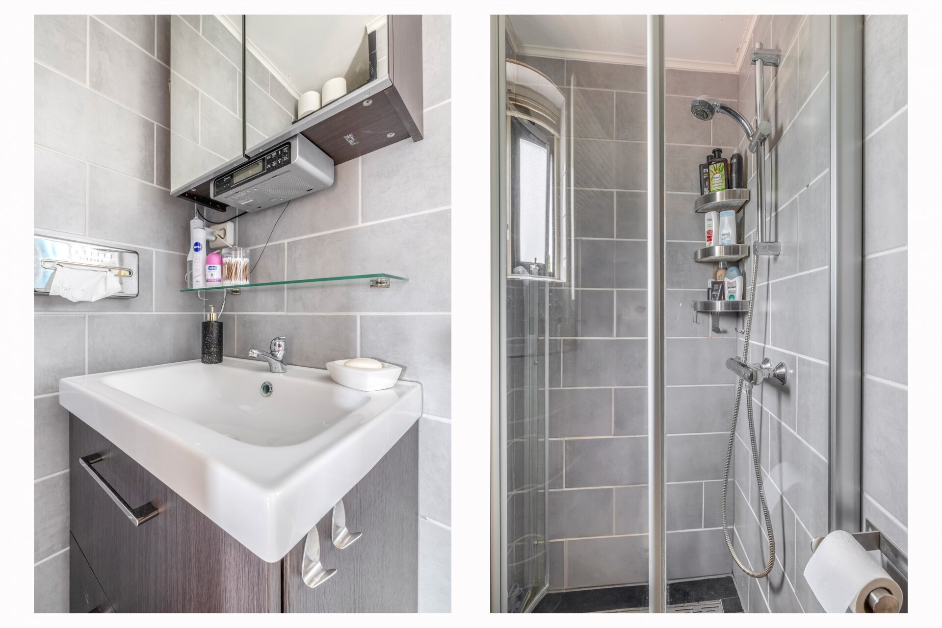 Op de eerste verdieping vind je twee slaapkamers, waarvan één met schuifkastenwand. Daarnaast is er een voorraadkast en een nette badkamer met wastafel, douche en een sanibroyeur-toilet. Op zolder vind je de voorzolder met wasmachineaansluiting en een derde slaapkamer met dakraam en cv-ketel (circa 2010). Dankzij de vaste trap en goede lichtinval is dit een volwaardige verdieping die zich uitstekend leent voor logees, werkruimte of tienerkamer.