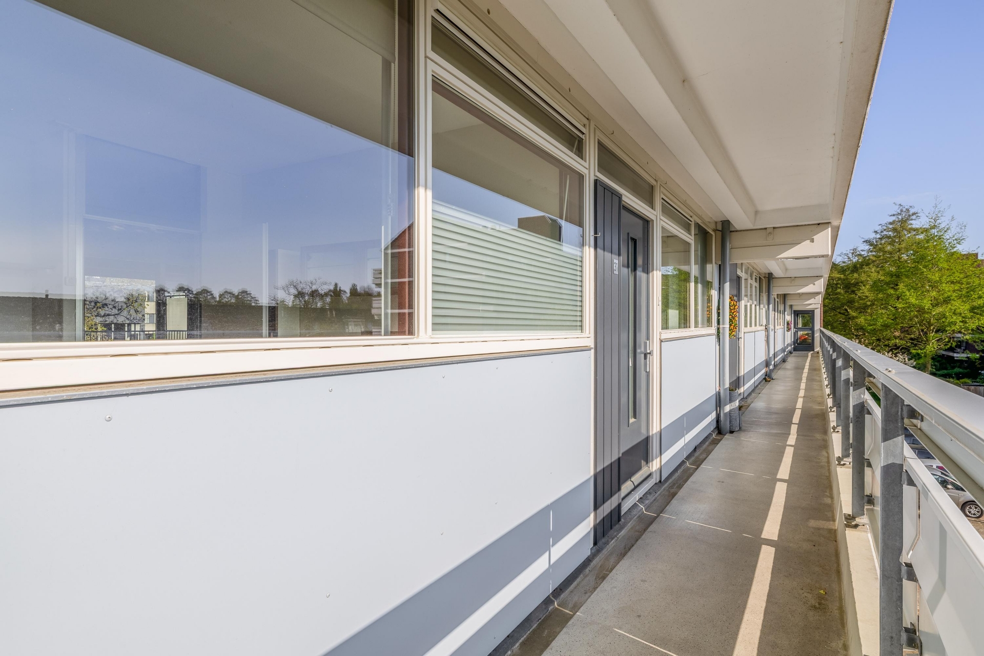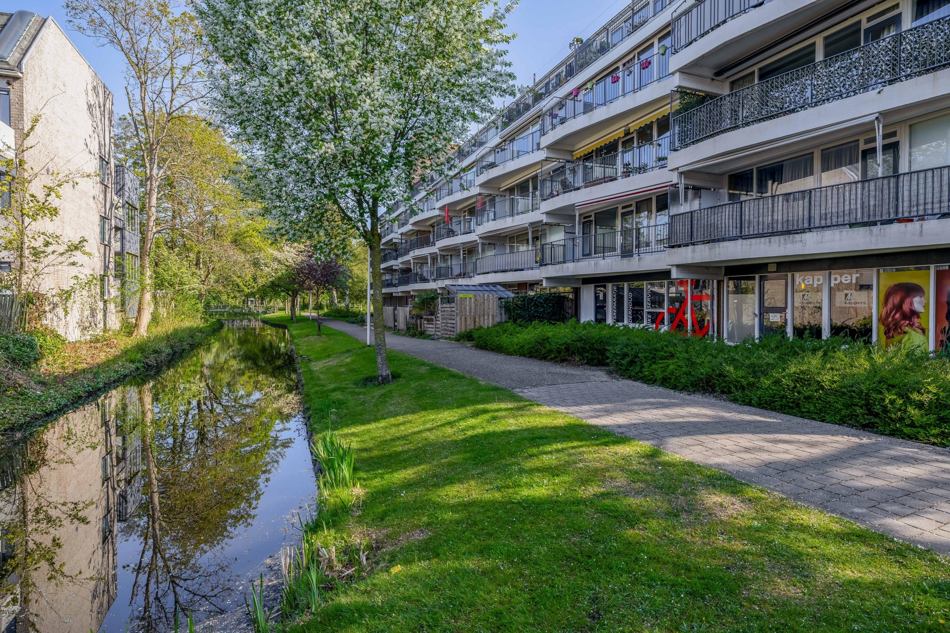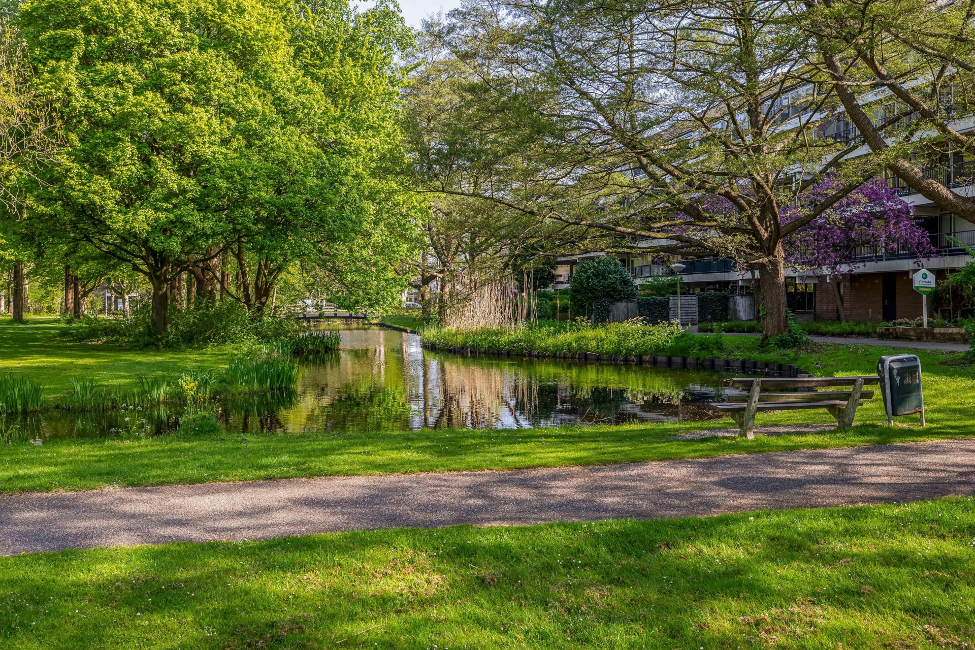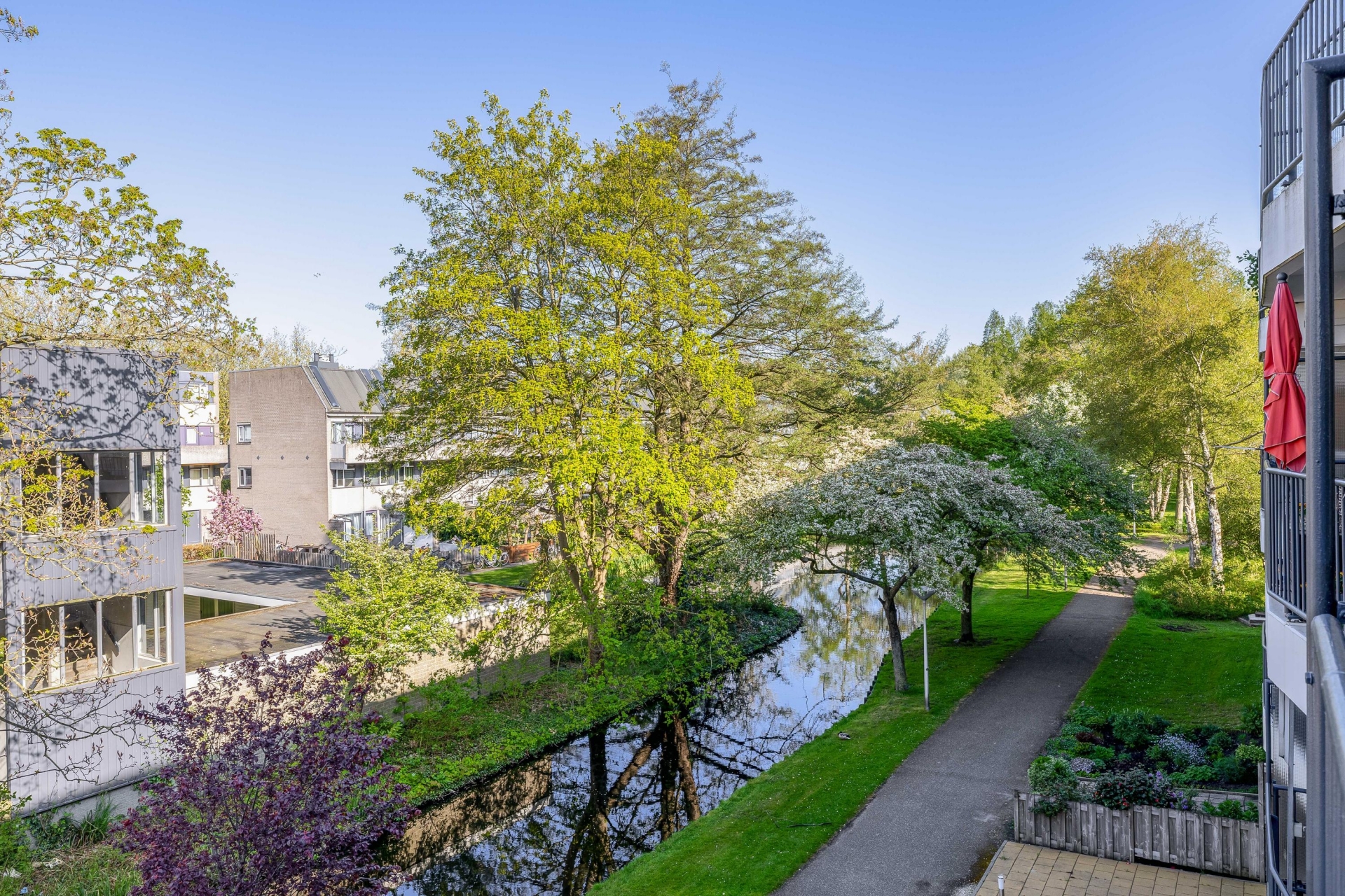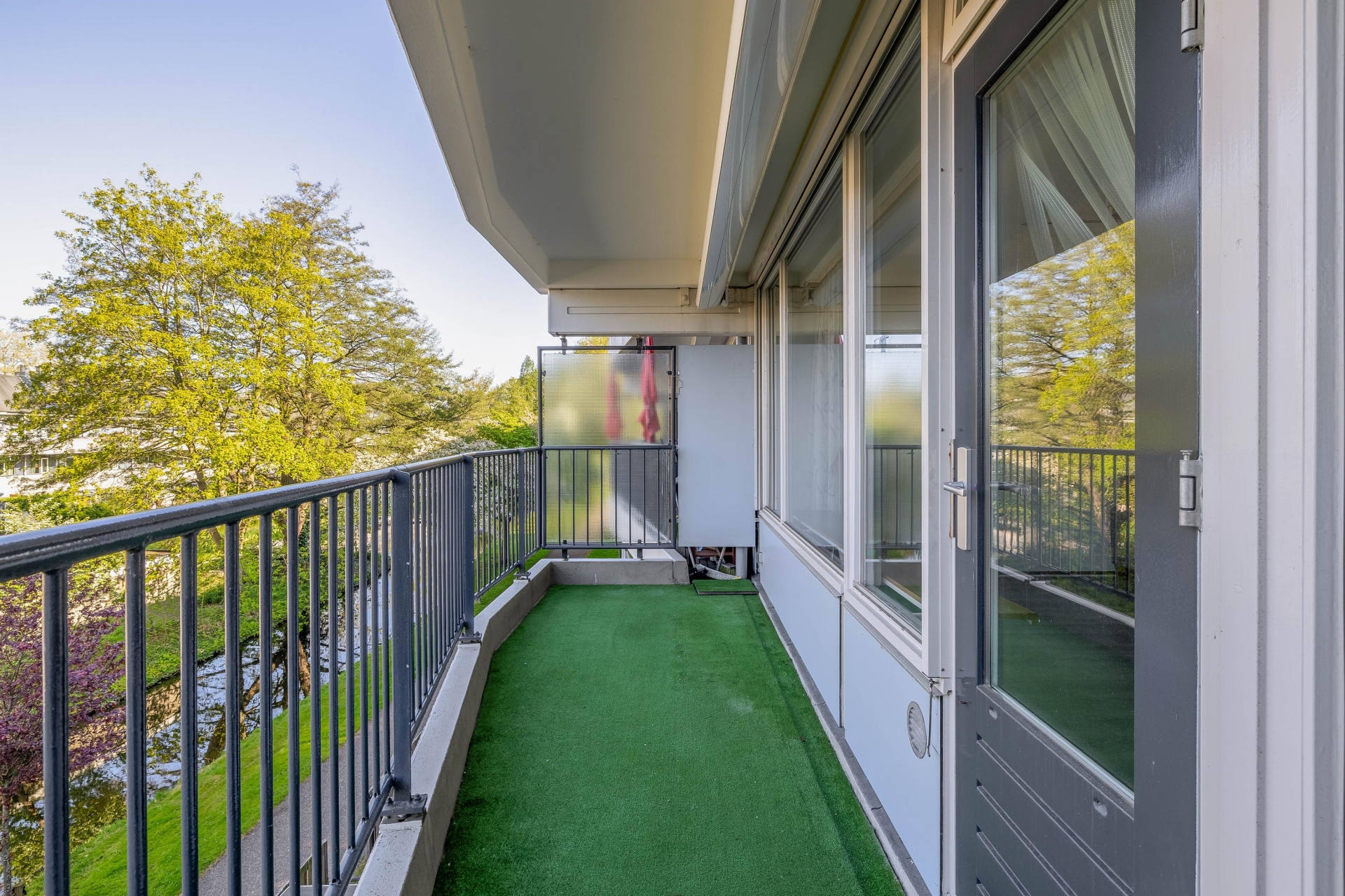 - Ruim balkon op het westen, met vrij uitzicht over aangrenzend park met groen en water;