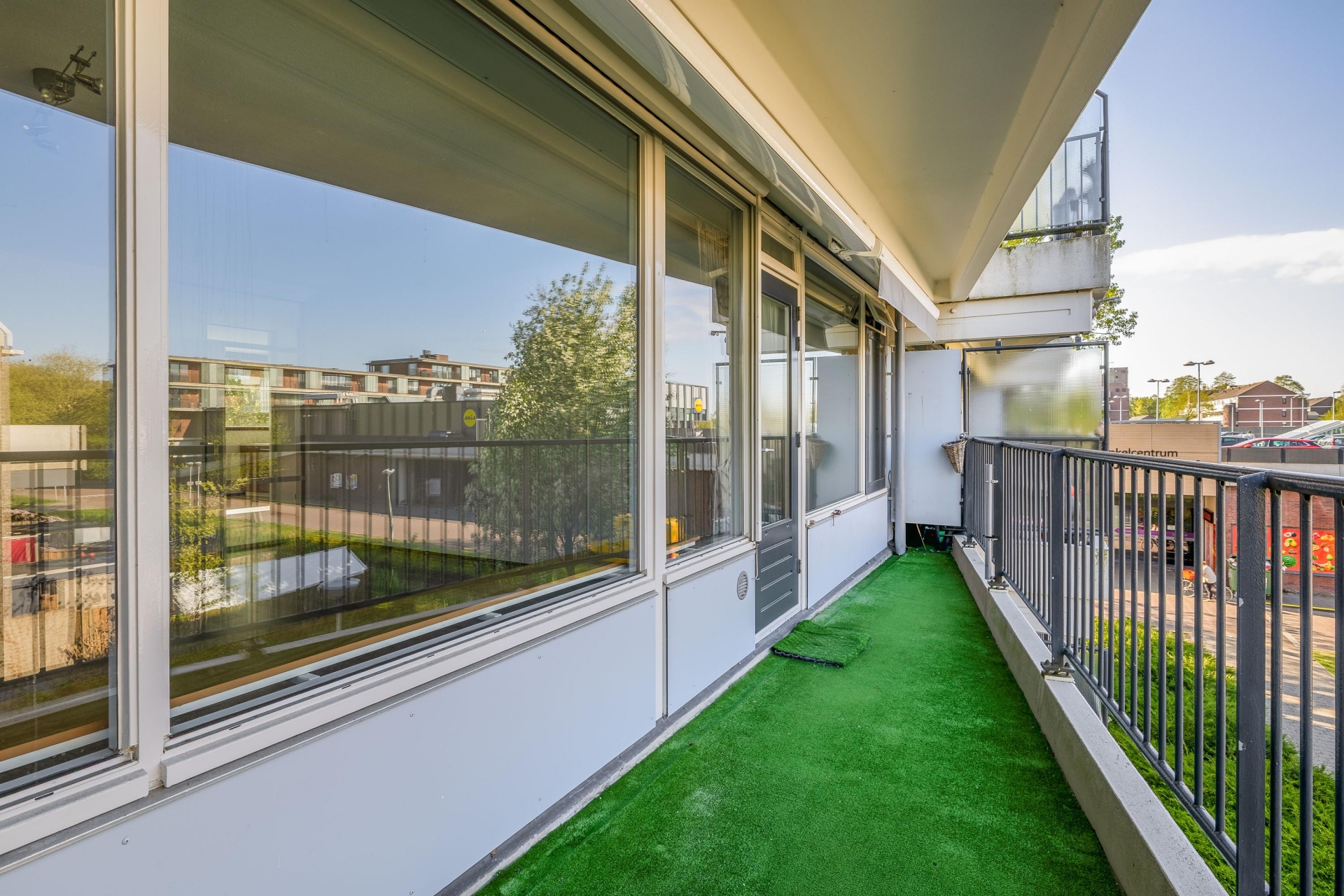 Vanuit de woonkamer heb je direct toegang tot het balkon. Door de ligging op het westen geniet je hier vooral in de middag en avond van de zon — een heerlijke plek om na het werk nog even buiten te zitten. Het uitzicht en de rustige ligging maken dit echt een verlengstuk van de woonkamer.
