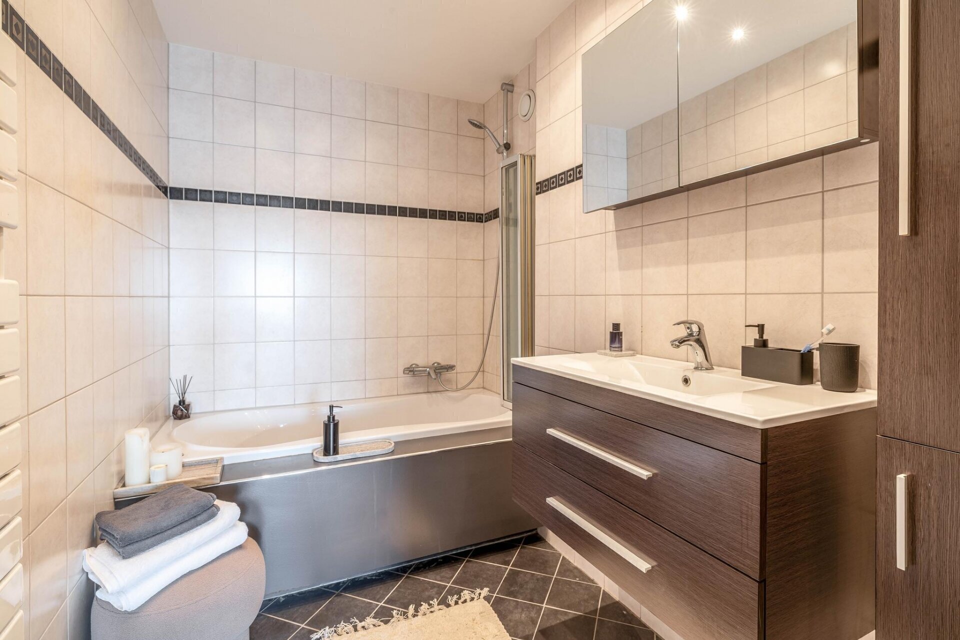 De woning beschikt over twee ruime slaapkamers en een half afgesloten ruimte die ideaal is als werkplek, sportruimte of speelkamer. Daarnaast biedt de aparte wasruimte extra gemak en opbergruimte. De luxe badkamer, volledig betegeld en voorzien van zowel een ligbad als een douche, is een oase van ontspanning.