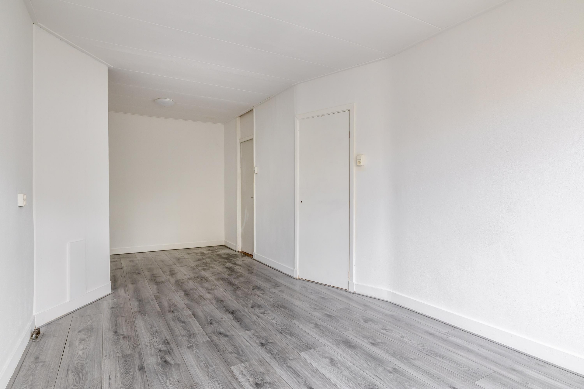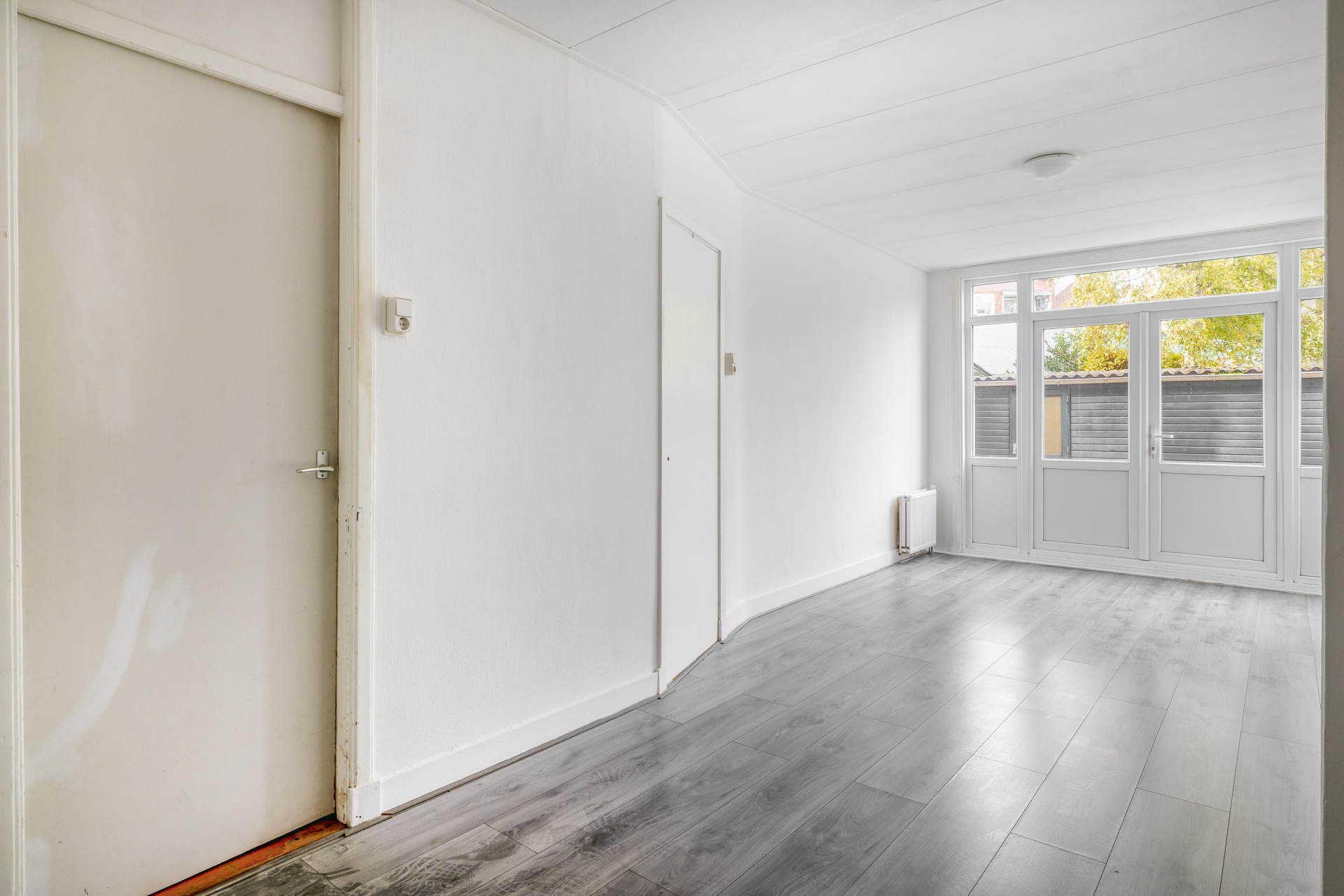 Het appartement voelt door de praktische indeling groter dan je misschien op papier zou verwachten. De tuingerichte woonkamer is strak afgewerkt met een lichte vloer en witte wanden – klaar voor jouw eigen stijl. Grote ramen en een openslaande deur zorgen voor veel daglicht en een directe verbinding met de achtertuin. Vanwege de noord-westelijke ligging kun je hier in de avond heerlijk in de zon zitten. Ideaal voor een loungeset, een BBQ met vrienden of simpelweg om tot rust te komen.