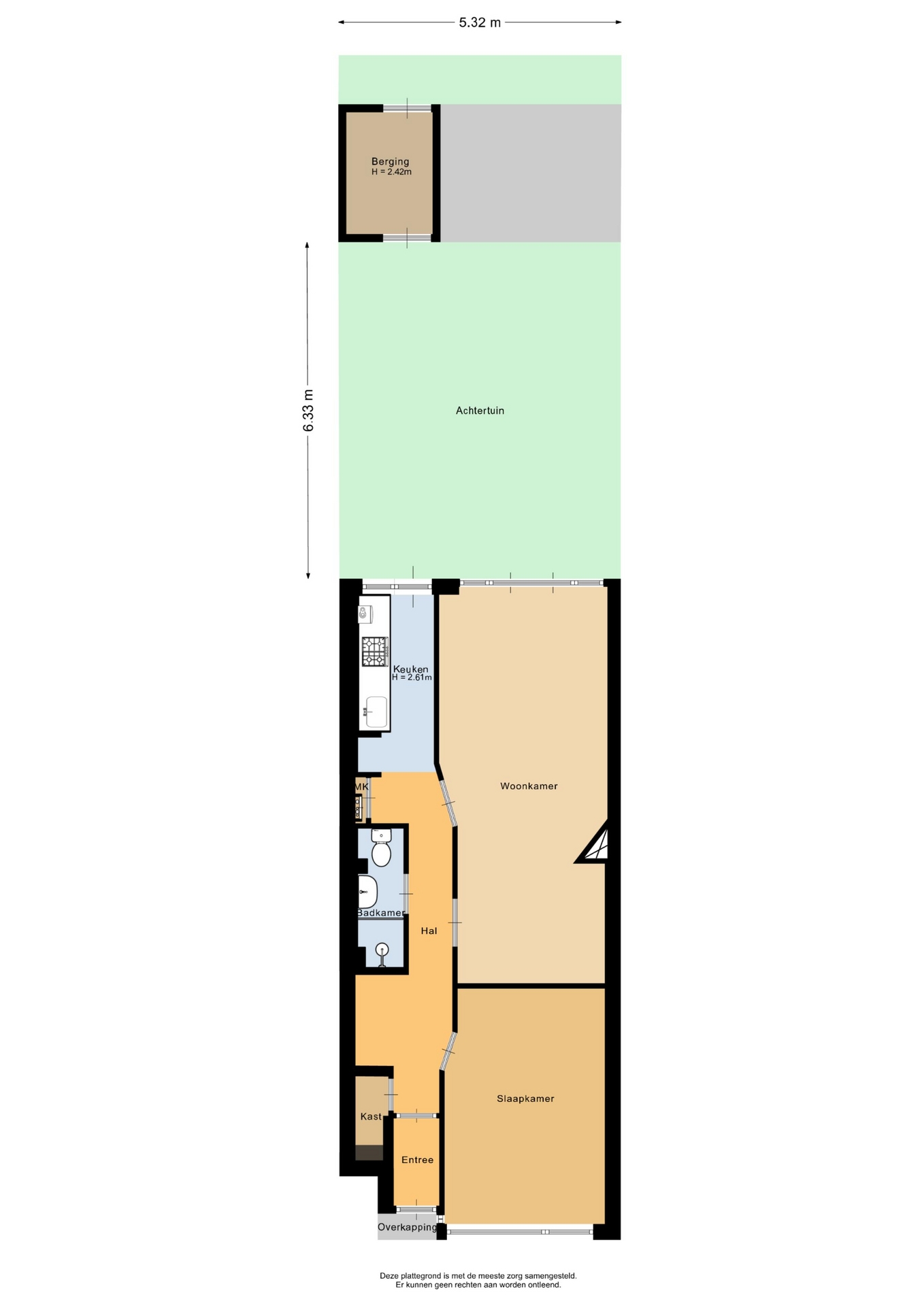 “Deze informatie is door ons met de nodige zorgvuldigheid samengesteld. Onzerzijds wordt echter geen enkele aansprakelijkheid aanvaard voor enige onvolledigheid, onjuistheid of anderszins, dan wel de gevolgen daarvan. Alle opgegeven maten en oppervlakten zijn indicatief.”