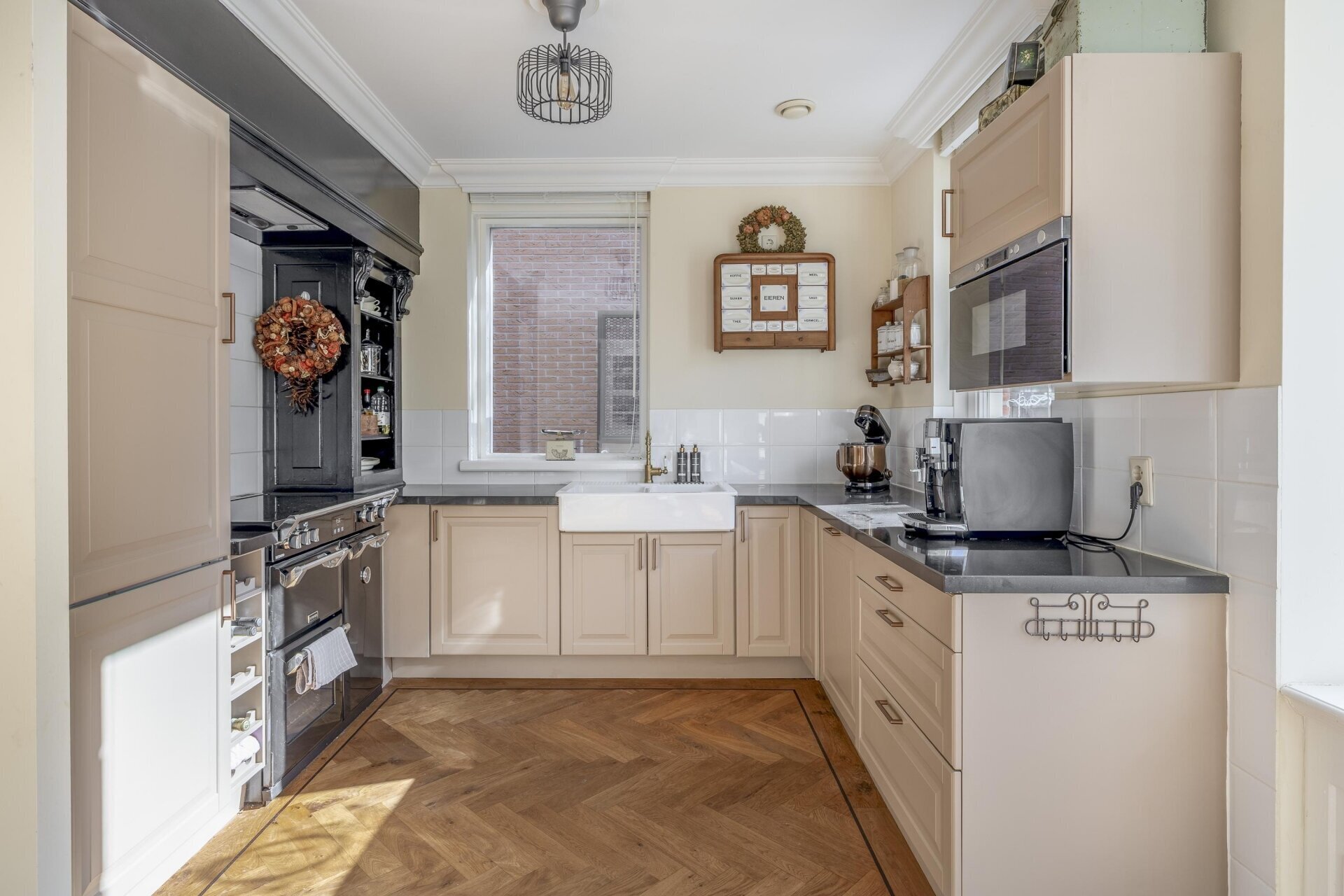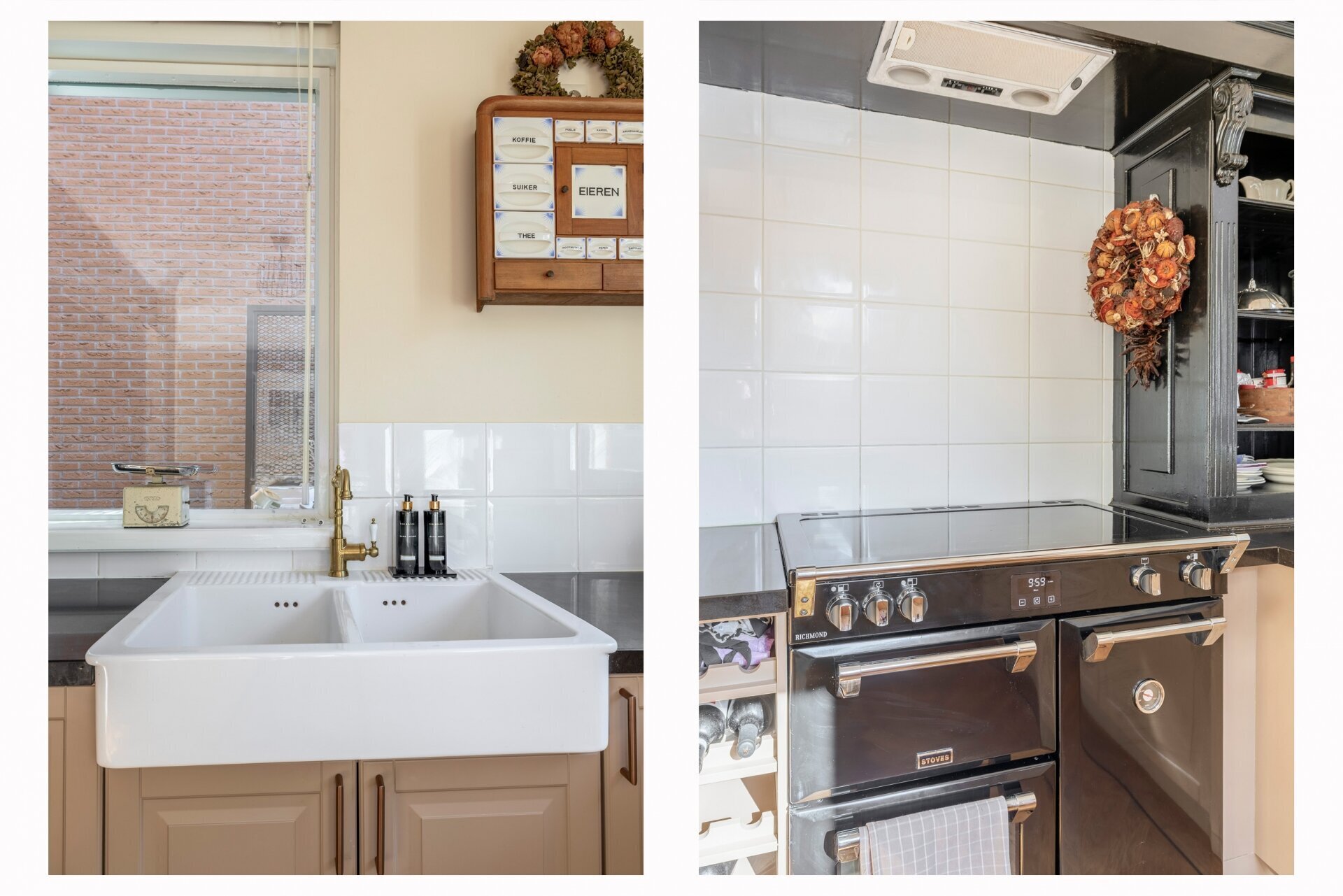 De lichte fronten, het contrasterende zwarte fornuis en de nostalgische details geven de ruimte een warme, landelijke uitstraling. Tegelijk is de keuken helemaal van nu, voorzien van afwasmachine (5 jaar oud); koel-vries combinatie (juli 2025); magnetron en Inductiefornuis. Dankzij het slimme U-vormige ontwerp heb je veel werkruimte, terwijl het uitzicht naar buiten zorgt voor extra sfeer tijdens het koken. Of je nu een snelle pasta maakt of uitgebreid gaat koken voor vrienden: dit is een keuken waar je met plezier staat.