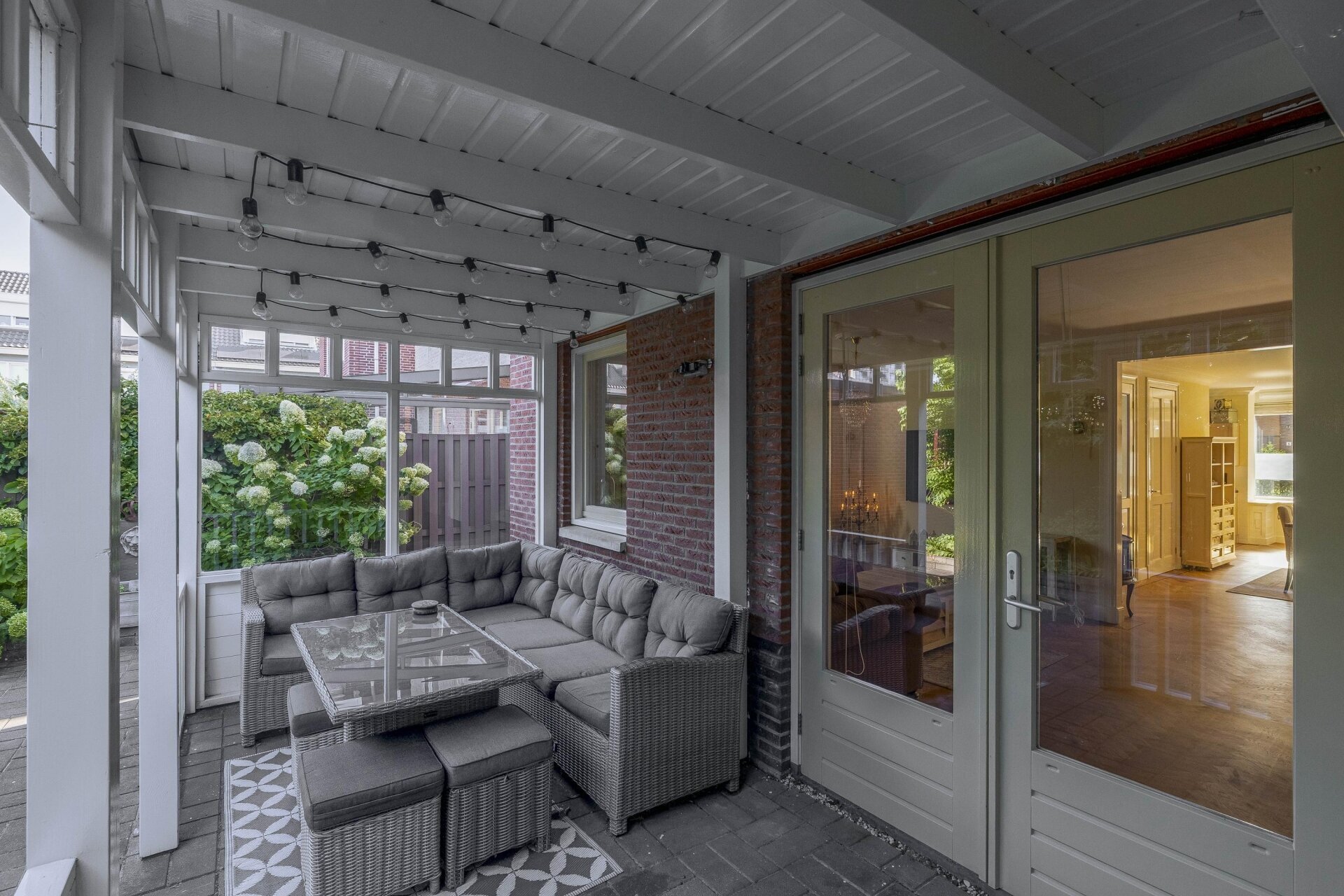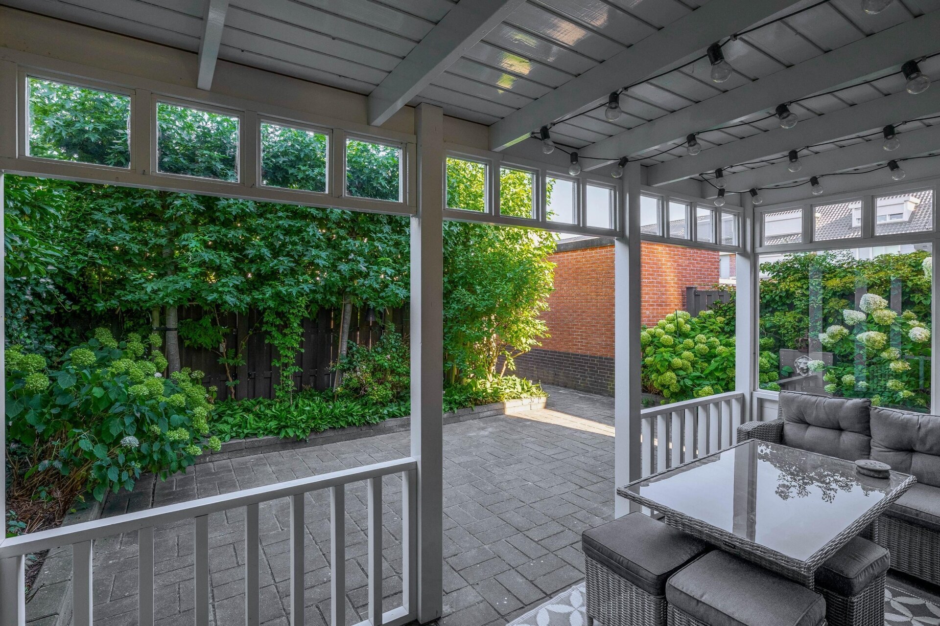 Achter het huis ligt een zonnige tuin op het noordwesten waar je in de middag en avond heerlijk van de zon kunt genieten. De veranda is zonder twijfel het verlengde van je woonkamer: perfect voor lange zomeravonden met vrienden of juist een rustige ochtend met koffie en krant. Het geheel is onderhoudsvriendelijk aangelegd, met ruimte voor zowel een loungeset als een eettafel. En doordat de tuin volledig is omsloten, heb je veel privacy.