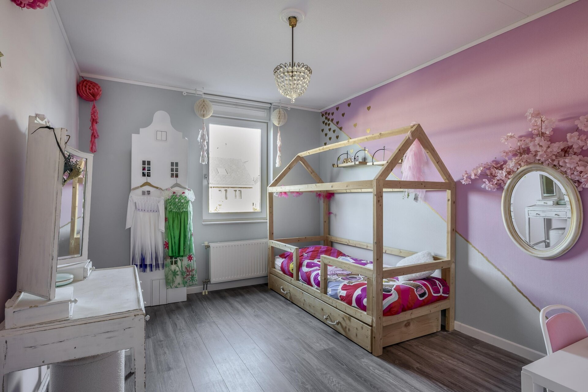 Verspreid over de bovenverdiepingen vind je vijf goed bemeten slaapkamers. De grootste slaapkamer is ruim genoeg voor een kingsize bed én een grote inloopkast. De overige vier kamers zijn stuk voor stuk licht en praktisch in te delen – ideaal als kinderkamer, logeerkamer, werkkamer of hobbyruimte. De badkamer is netjes en compleet, en biedt alles wat je nodig hebt.