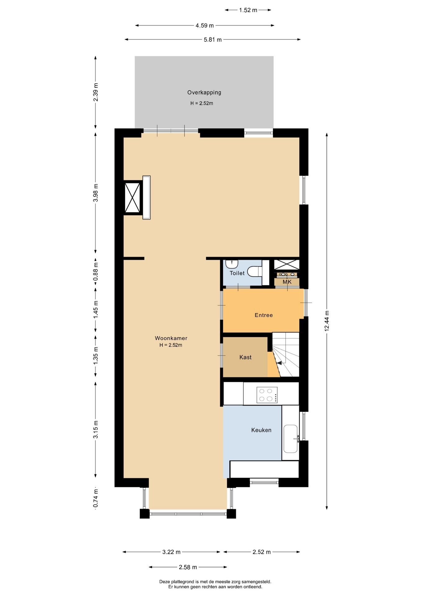 “Deze informatie is door ons met de nodige zorgvuldigheid samengesteld. Onzerzijds wordt echter geen enkele aansprakelijkheid aanvaard voor enige onvolledigheid, onjuistheid of anderszins, dan wel de gevolgen daarvan. Alle opgegeven maten en oppervlakten zijn indicatief.”