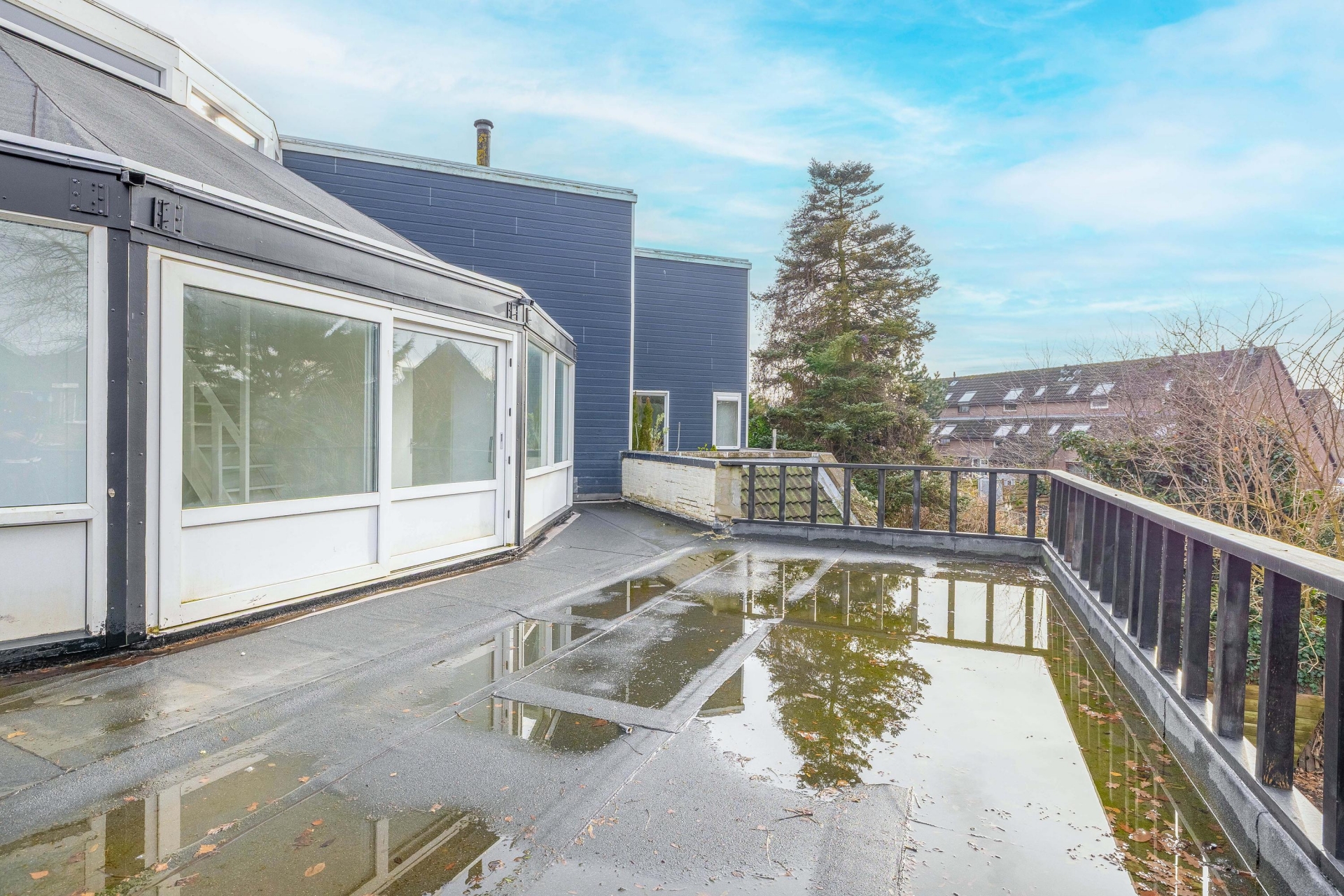 Met in totaal vijf slaapkamers verdeeld over drie verdiepingen is dit huis een uitkomst voor grotere gezinnen of wie gewoon graag de ruimte heeft. De bovenverdieping telt twee slaapkamers, beide met veel lichtinval dankzij de grote ramen. Vanuit de overloop is er toegang tot het indrukwekkende dakterras van bijna 50 m² – een echt verlengstuk van de woning. De derde verdieping biedt nog een volwaardige zolderkamer, perfect als hobbyruimte, extra slaapkamer of thuiskantoor.