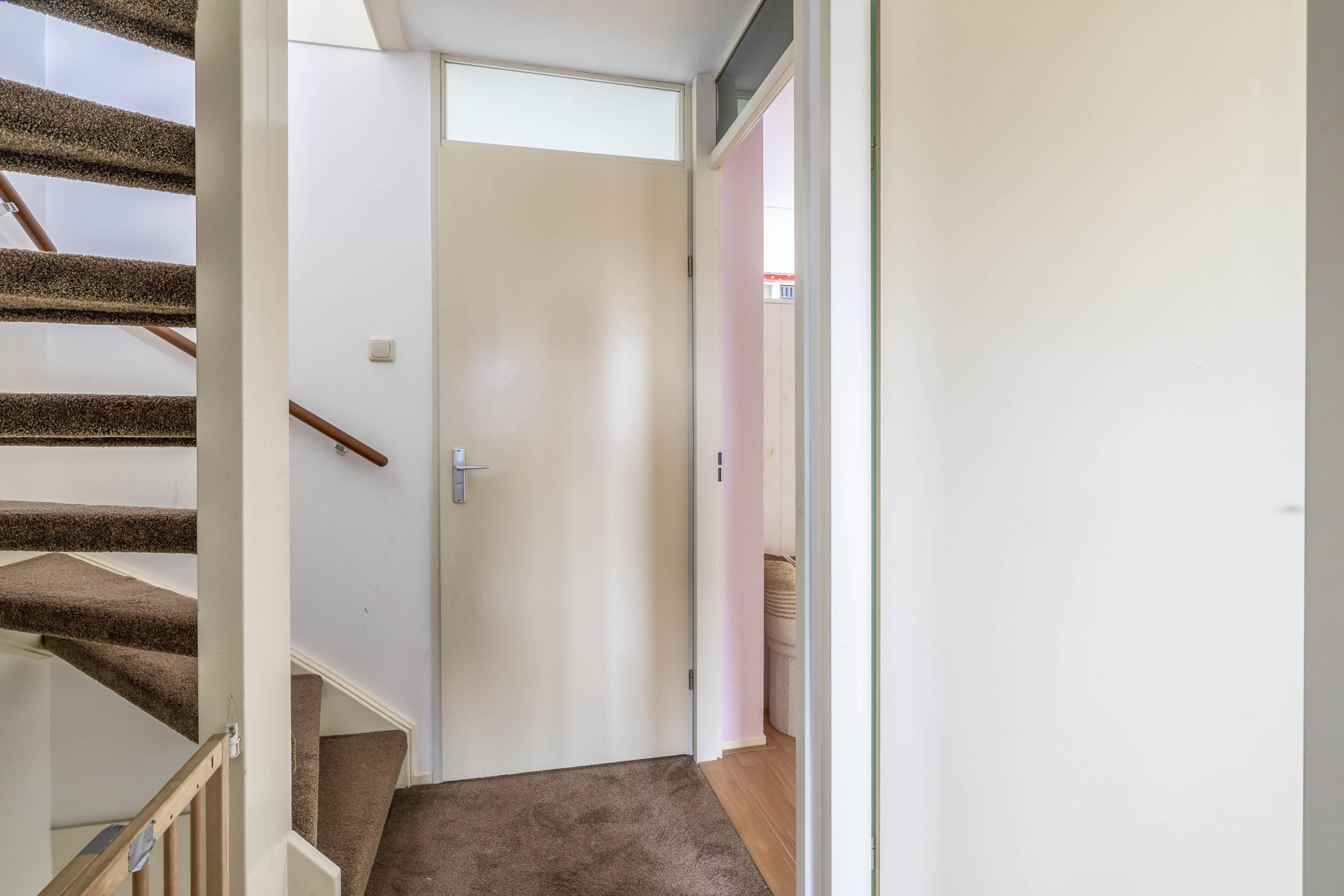 Entree via de hal met moderne meterkast, trapopgang en toiletruimte met fonteintje. De lichte doorzonwoonkamer biedt een prettige leefruimte en staat in open verbinding met de nette keuken. Deze is voorzien van diverse inbouwapparatuur waaronder een vaatwasser, 4-pits kookplaat en combi-oven. Vanuit de woonkamer is er toegang tot de goed aangelegde, zonnige achtertuin met vrijstaande houten berging en achterom.