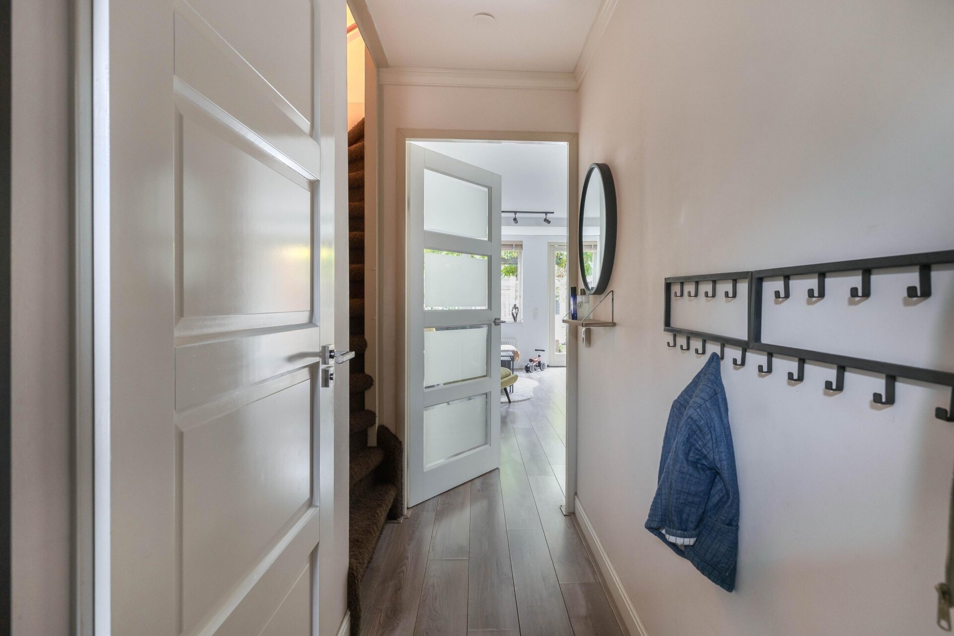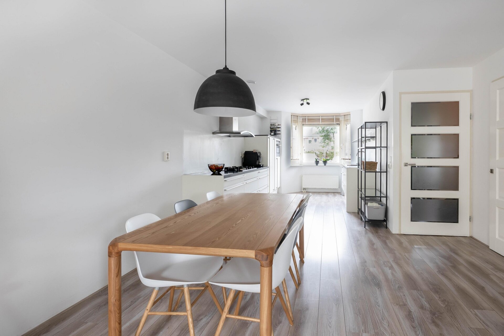 Bij binnenkomst valt direct de lichte en verzorgde uitstraling op. De hal leidt naar de royale woonkamer aan de achterzijde, waar openslaande deuren zorgen voor een fijne verbinding met de tuin. De zithoek is ruim opgezet en dankzij de grote ramen is het hier aangenaam licht.