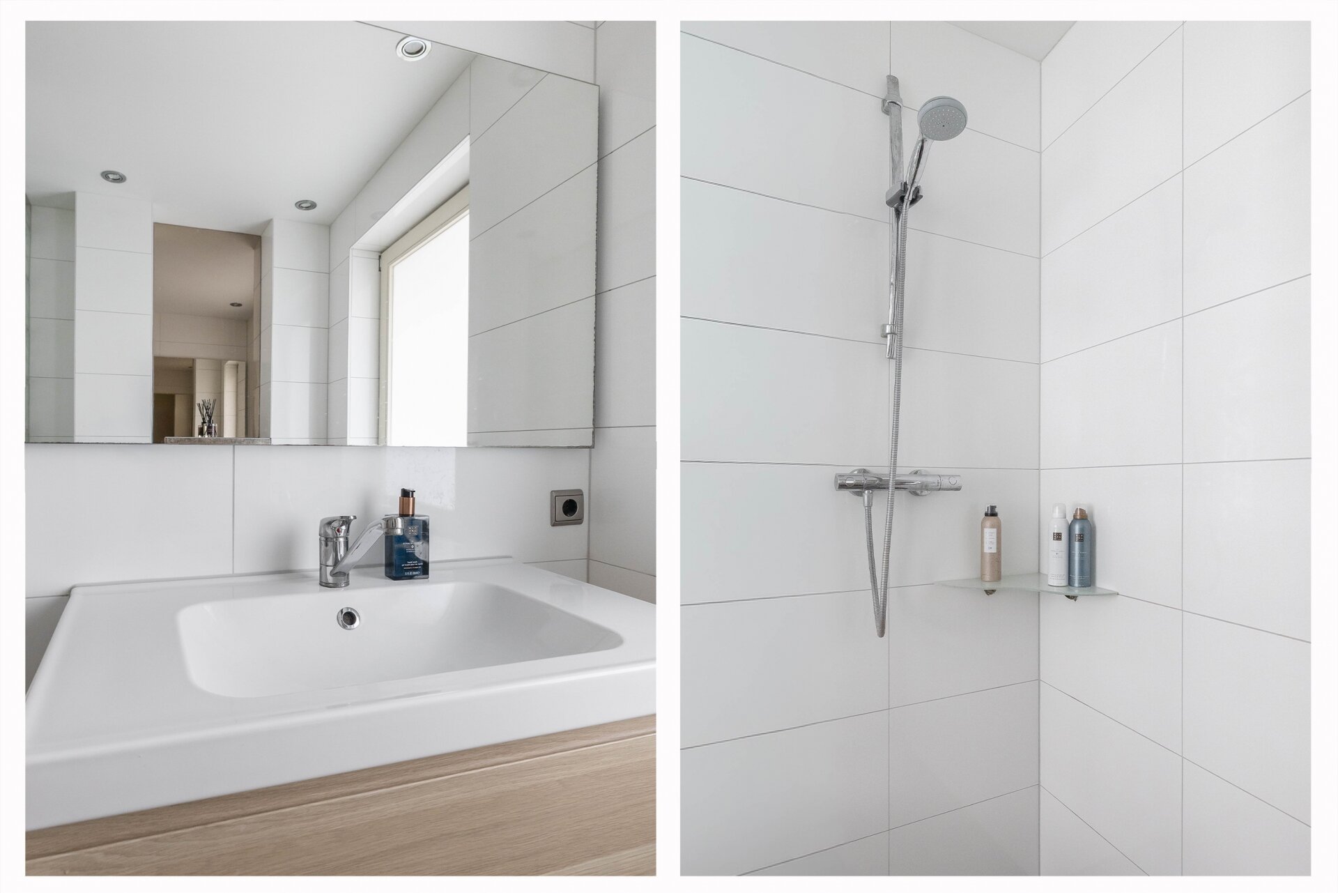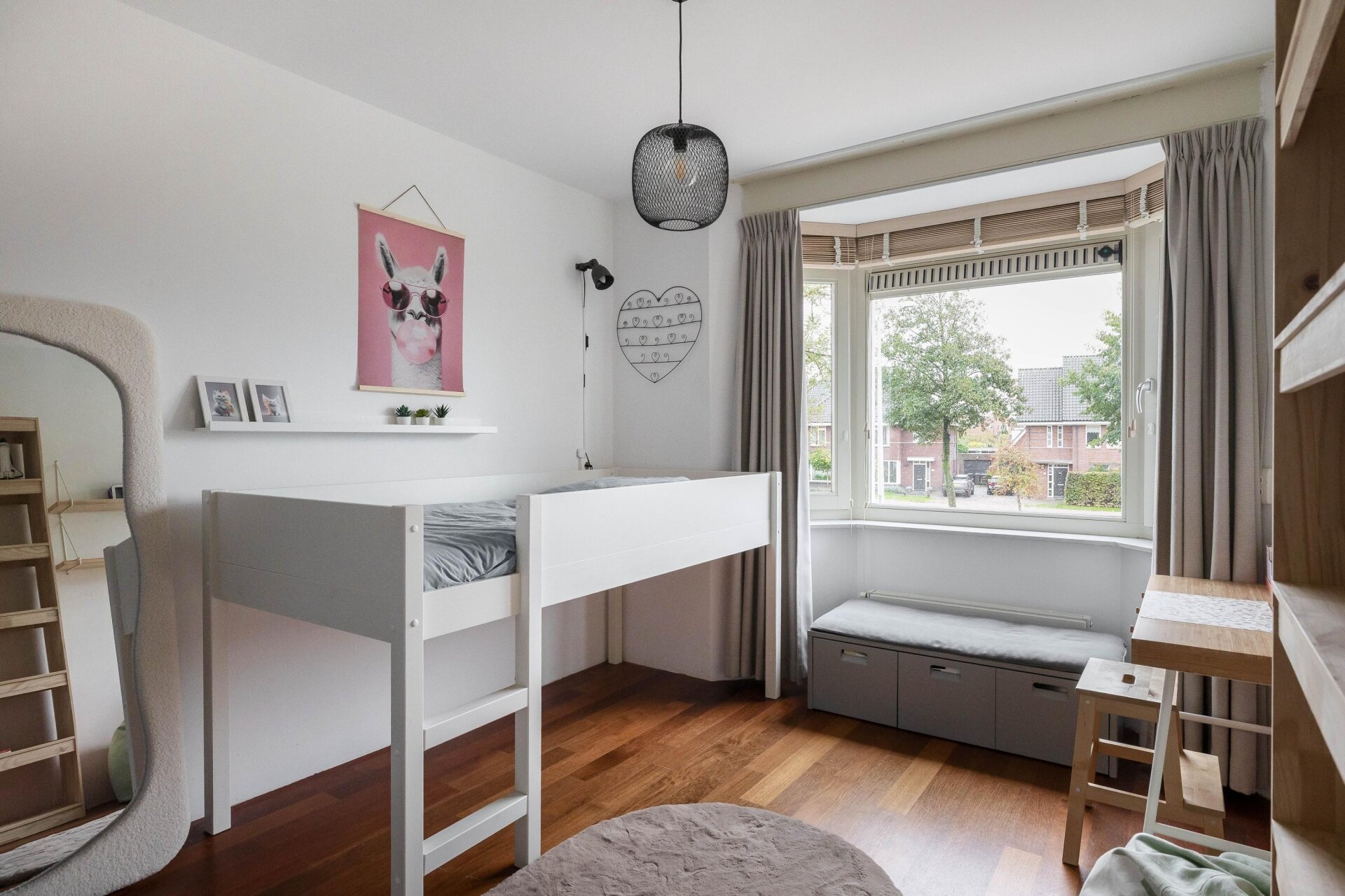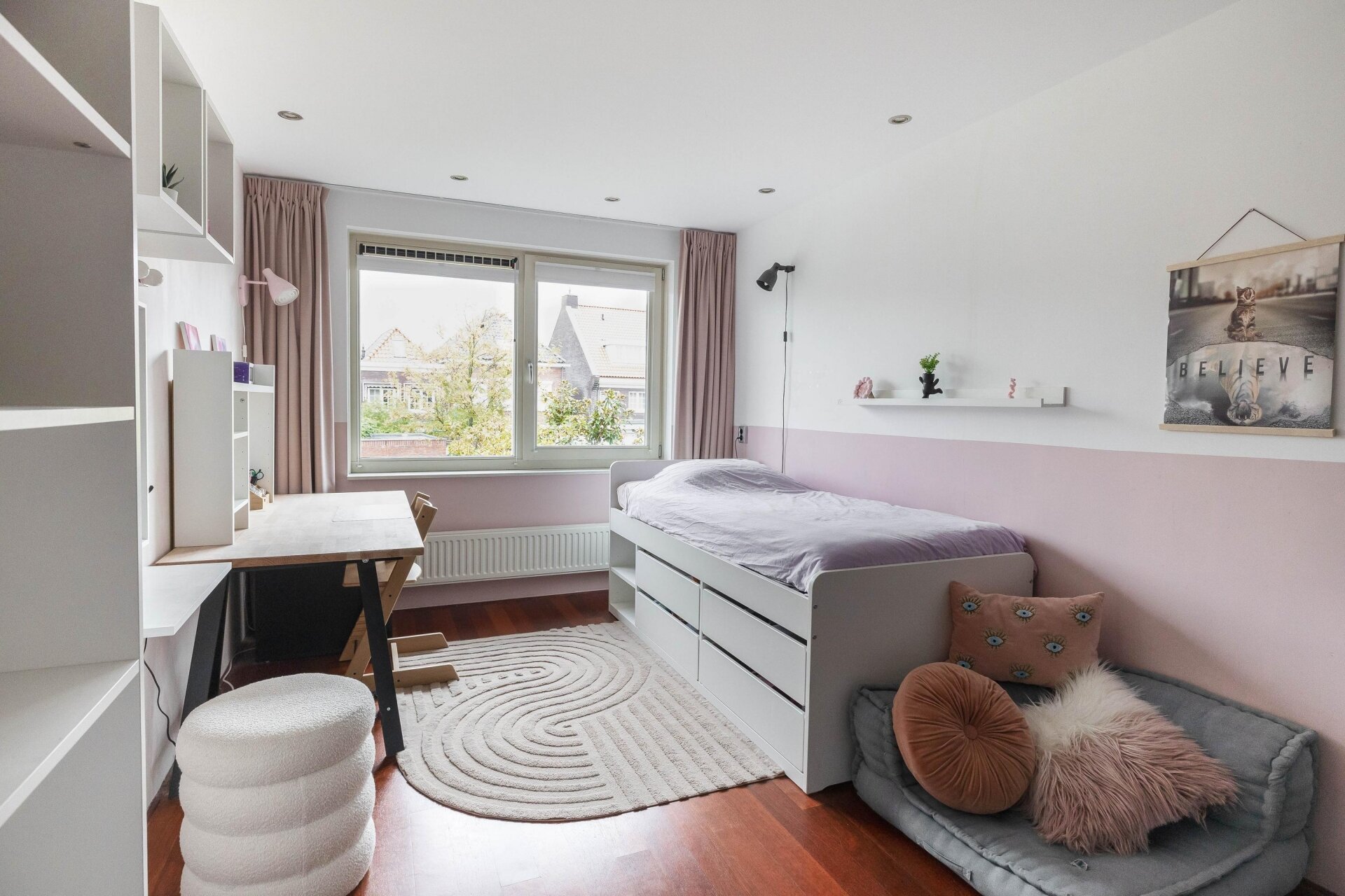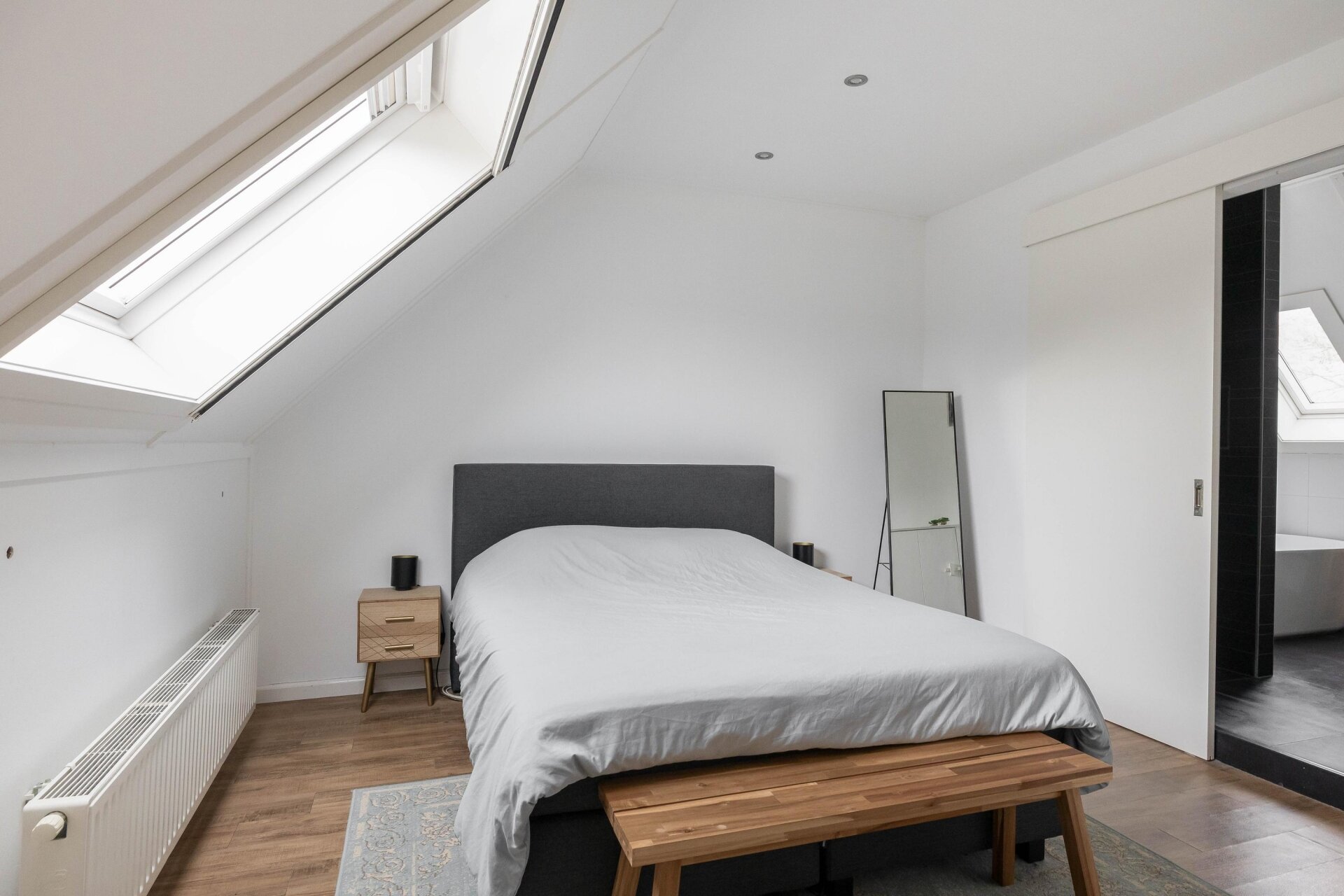 Aan de voorzijde ligt de strak afgewerkte, halfopen keuken met een fijne erker. De keuken is voorzien van diverse inbouwapparatuur, veel werkruimte en een doordachte opstelling. Hier kook je met plezier, met zicht op de rustige straat. De eerste verdieping telt 3 slaapkamers, waarvan 2 bijzonder ruim zijn. De grootste kamer aan de achterzijde biedt voldoende plek voor een groot bed en een kastenwand, ideaal als master bedroom. De andere 2 kamers zijn riant en perfect als kinder-of werkkamer. Op deze verdieping is ook de eerste moderne badkamer te vinden, met inloopdouche, dubbele wastafel en toilet.