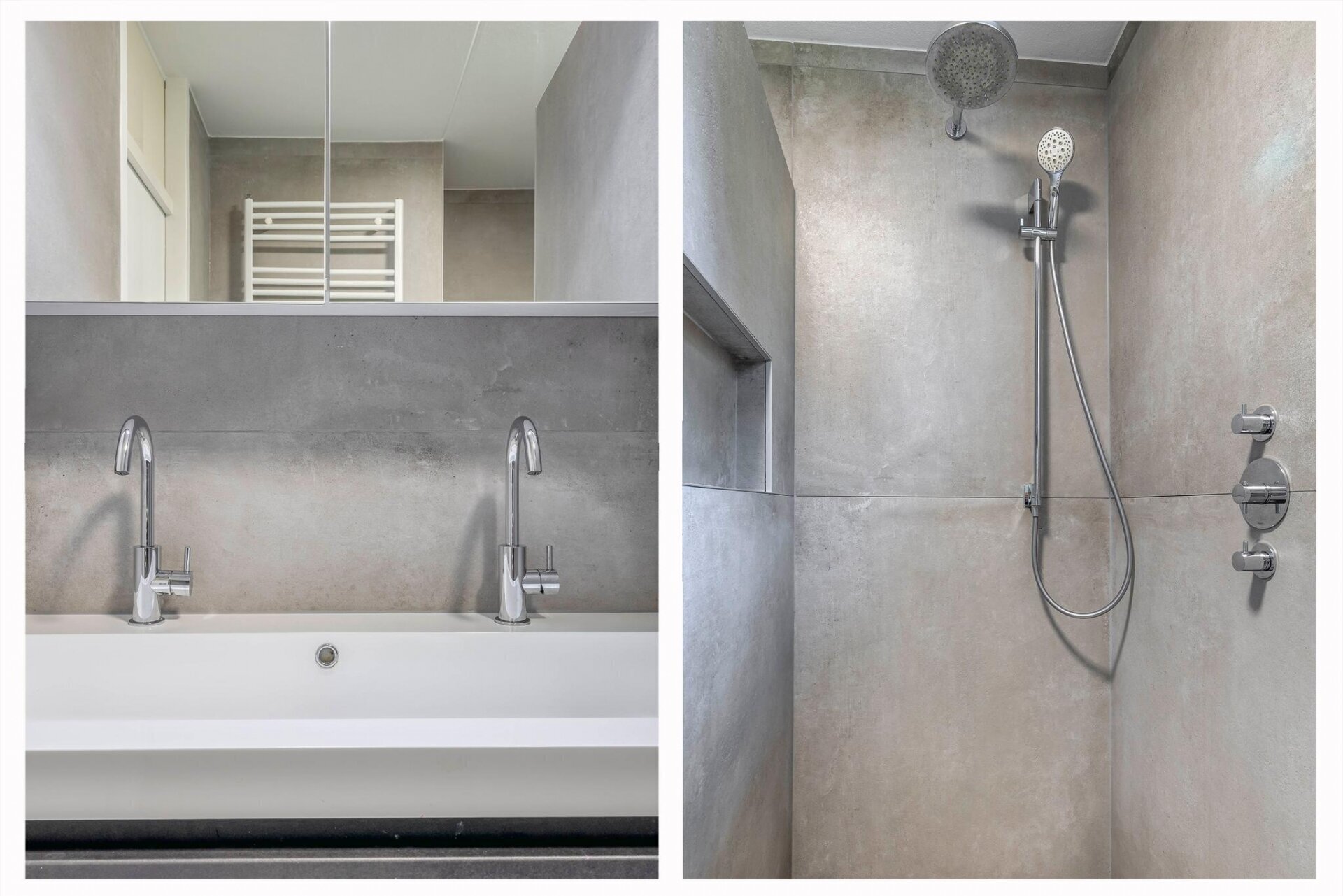 Boven zijn er 4 goed ingedeelde slaapkamers, verdeeld over twee verdiepingen. De grootste slaapkamer ligt aan de achterzijde en heeft, net als de andere kamers, een prettige lichtinval. Alle kamers zijn netjes afgewerkt en door de rechte gevels is er weinig ruimteverlies. Ideaal als je kinderen hebt, een thuiskantoor zoekt of graag een hobbykamer inricht. De badkamer is recent vernieuwd en is uitgerust met een inloopdouche, dubbele wastafel, 2e toilet en een stijlvol wastafelmeubel – helemaal van nu.
