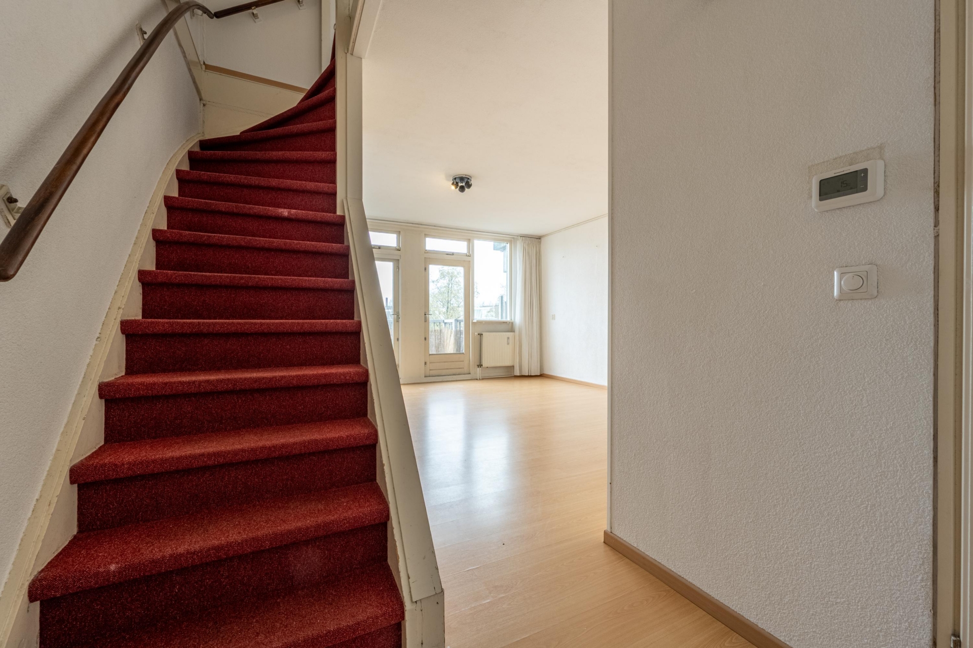 De open keuken aan de voorzijde heeft een efficiënte opstelling en is voorzien van diverse inbouwapparatuur: onder meer een keramische kookplaat, vaatwasser, koelkast en oven. Dankzij de ruime indeling kun je hier prima koken én tegelijk onderdeel blijven van het gezelschap in de woonkamer. Onder de trap is een handige bergkast voor je voorraad of stofzuiger.