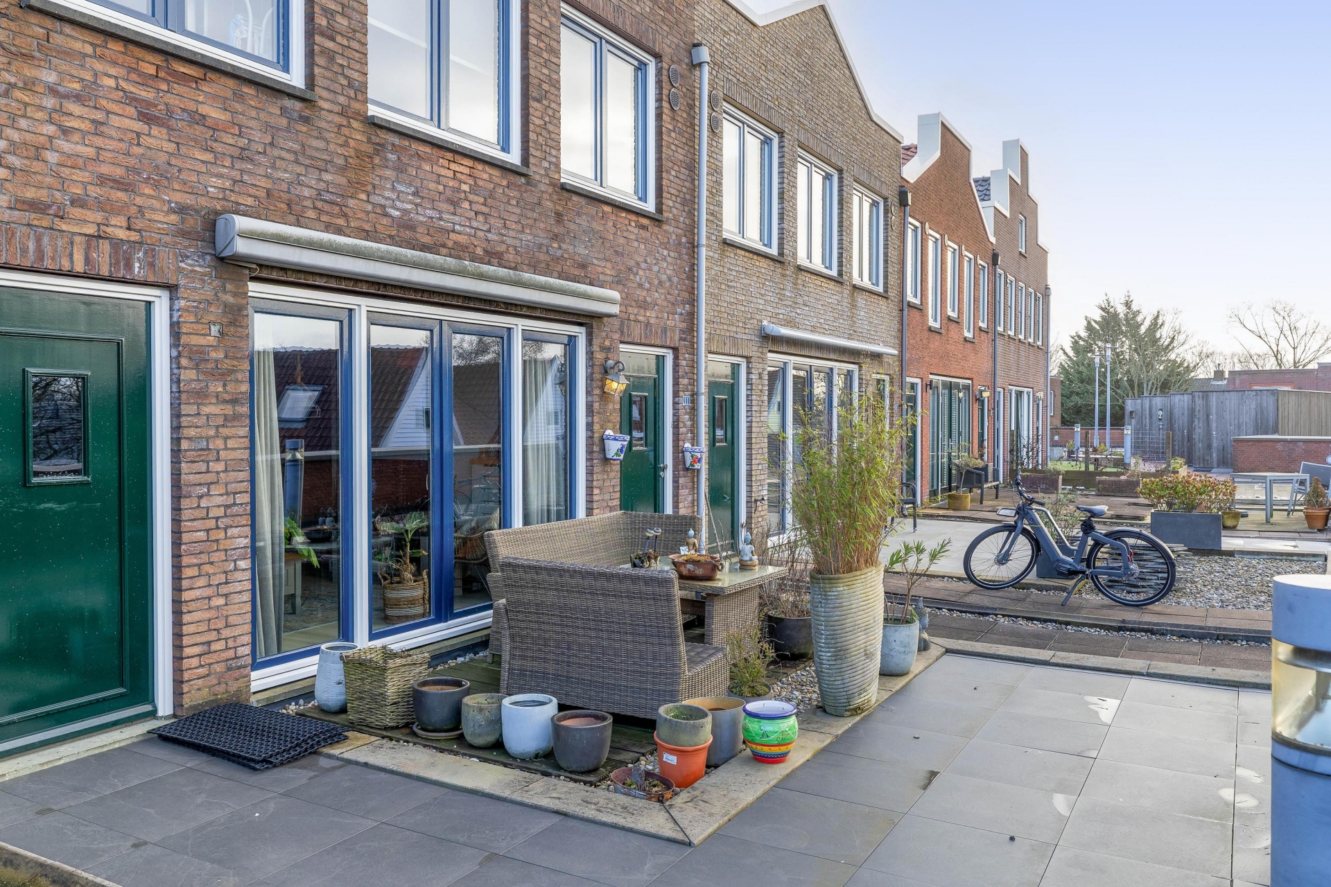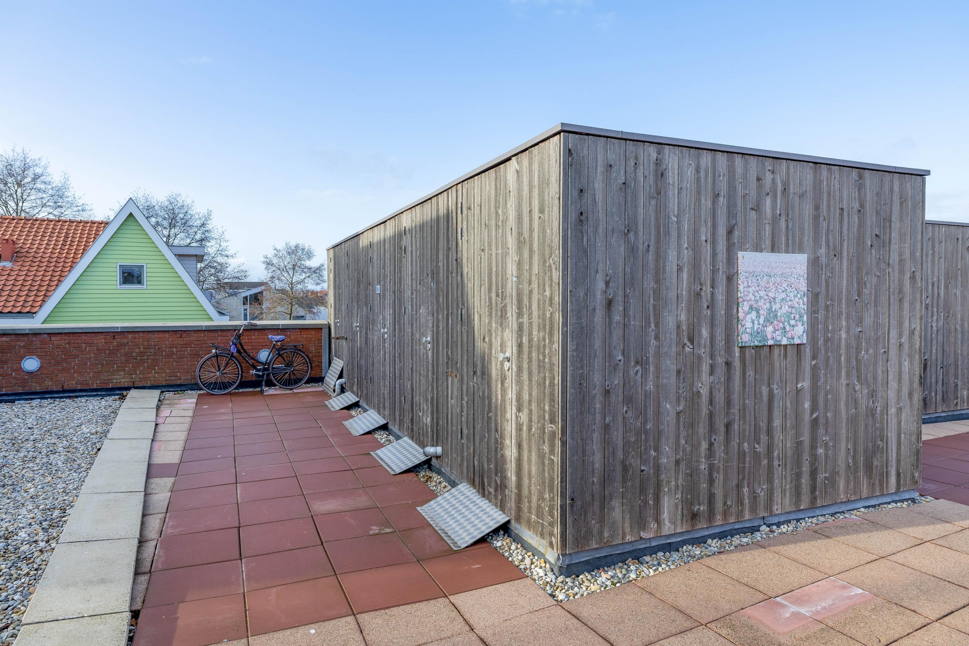 Het zonnige terras ligt aan de voorzijde van het appartement. In het centrum van Nootdorp geniet je hier toch van een oase van rust.