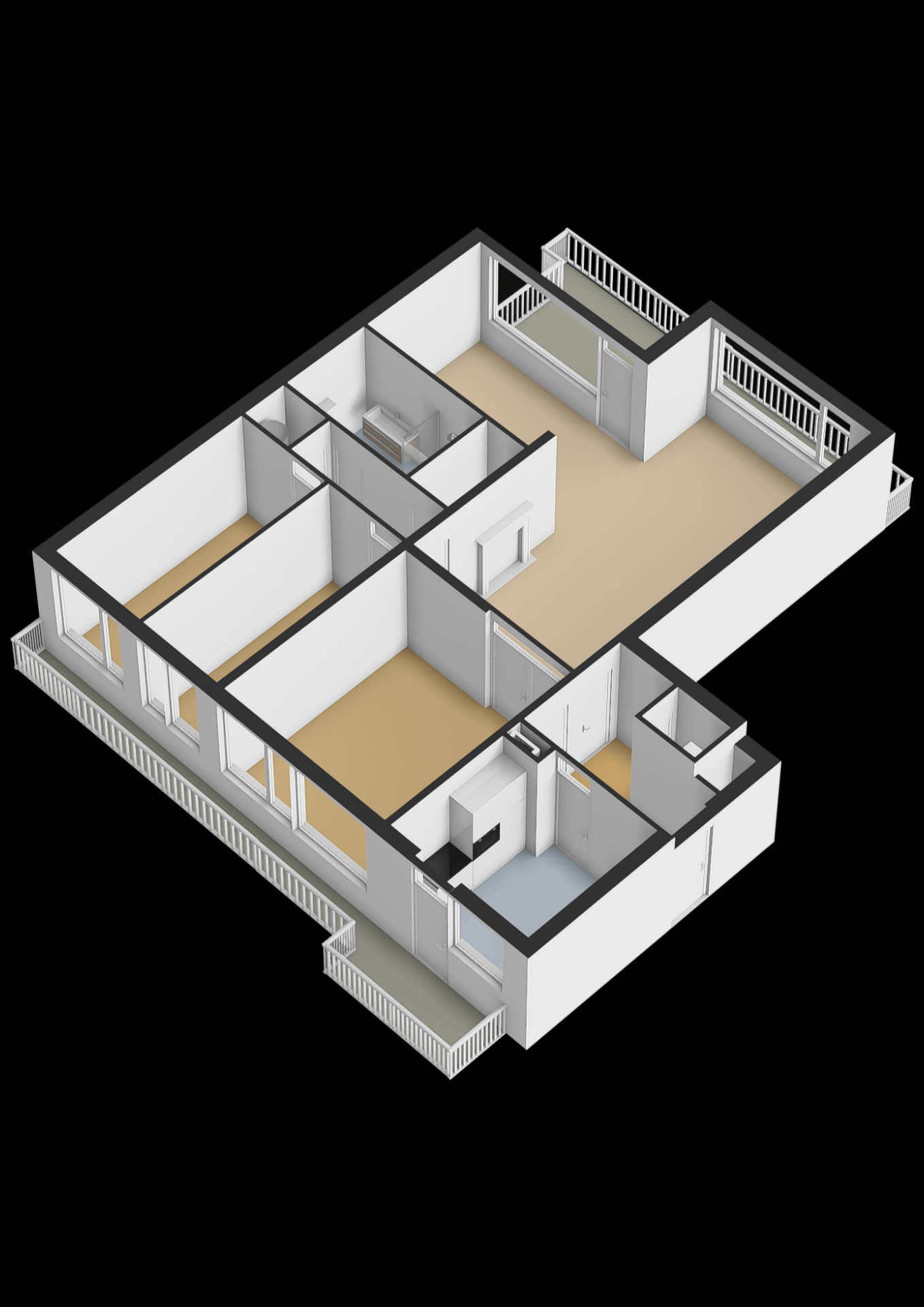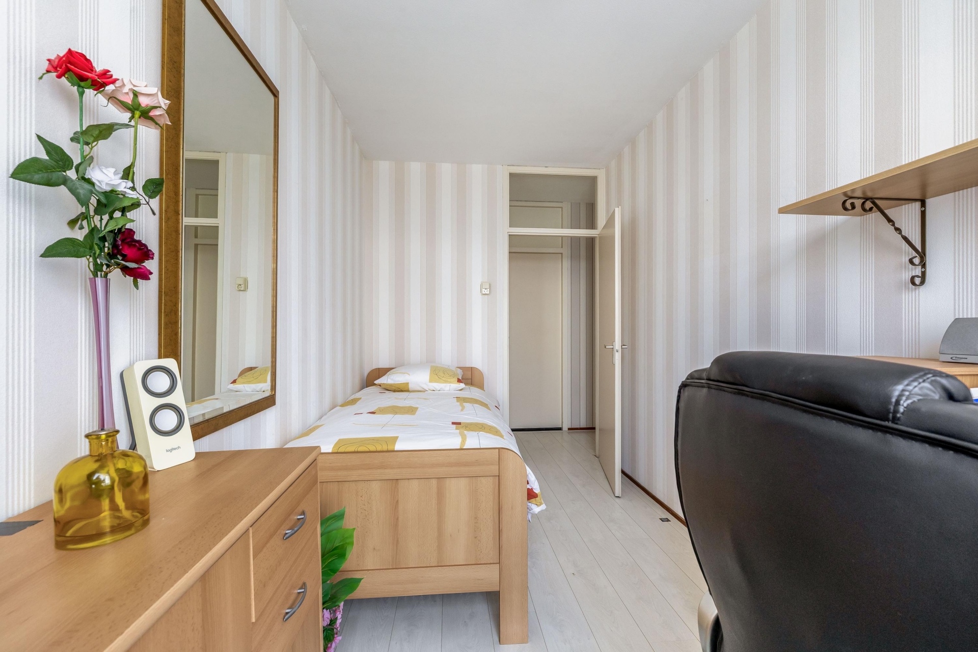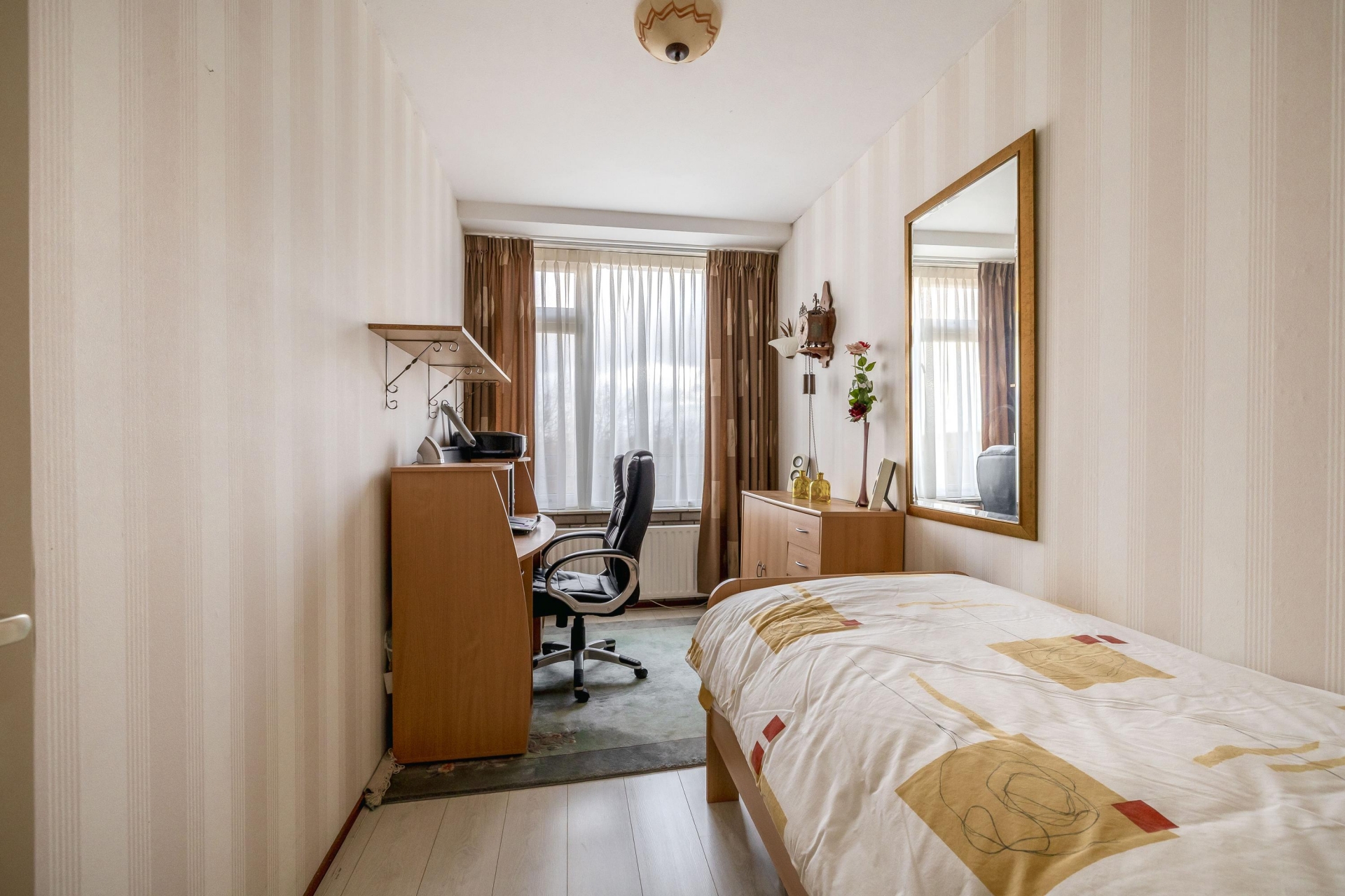 Dit appartement beschikt over drie slaapkamers, allemaal met ramen en een prettige indeling. De grootste slaapkamer ligt aan de balkonzijde en is ruim genoeg voor een groot bed en kast. De tweede slaapkamer doet momenteel dienst als werkkamer, en de derde is perfect als logeerkamer of kinderkamer.