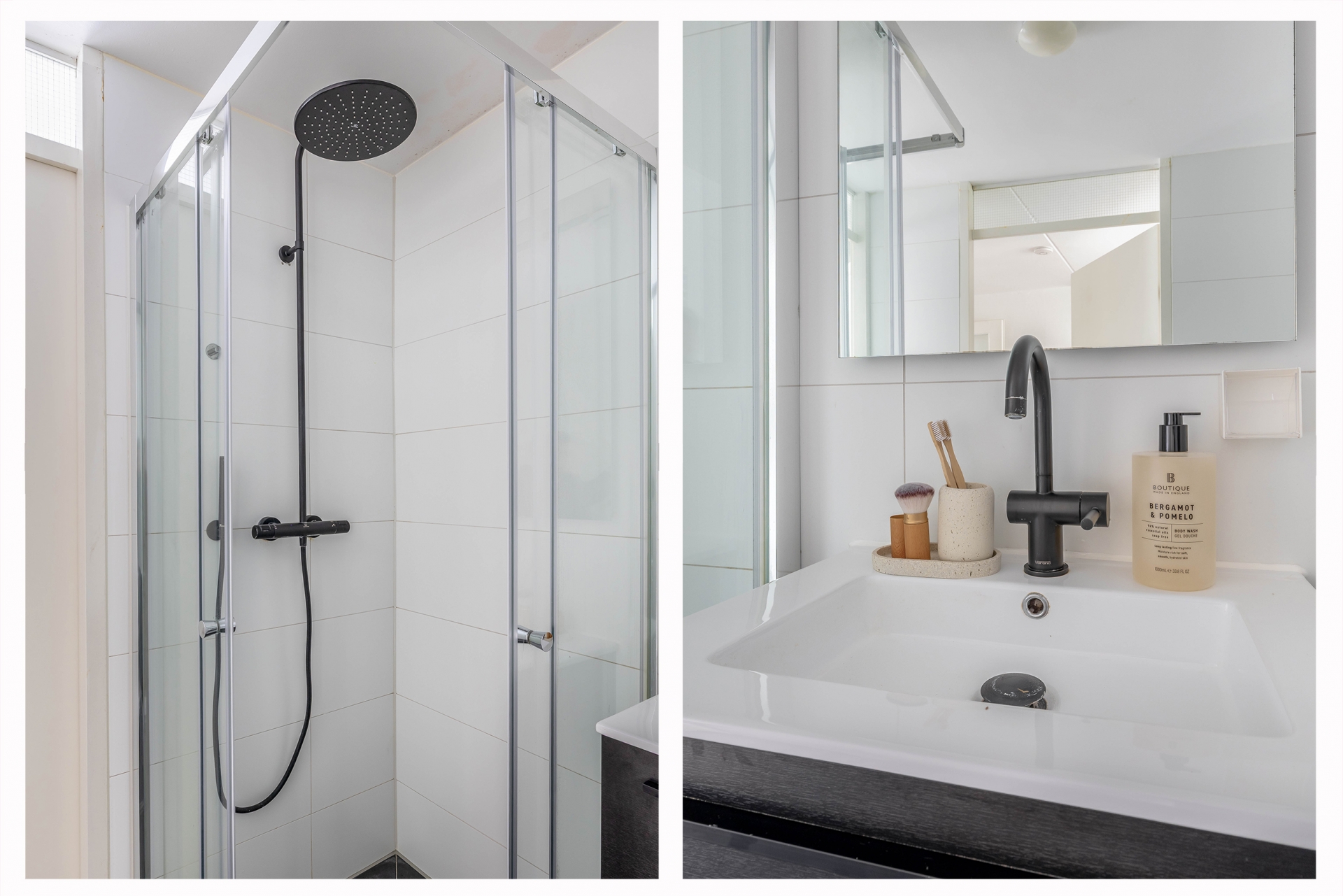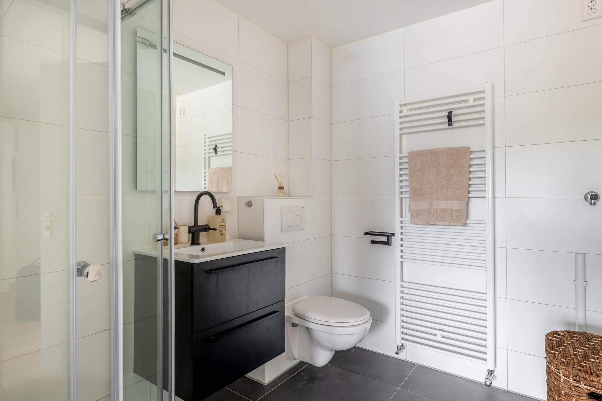 - De nette badkamer is voorzien van een toilet, wastafelmeubel en inloopdouche. Tevens is hier de opstelplaats voor de wasapparatuur;