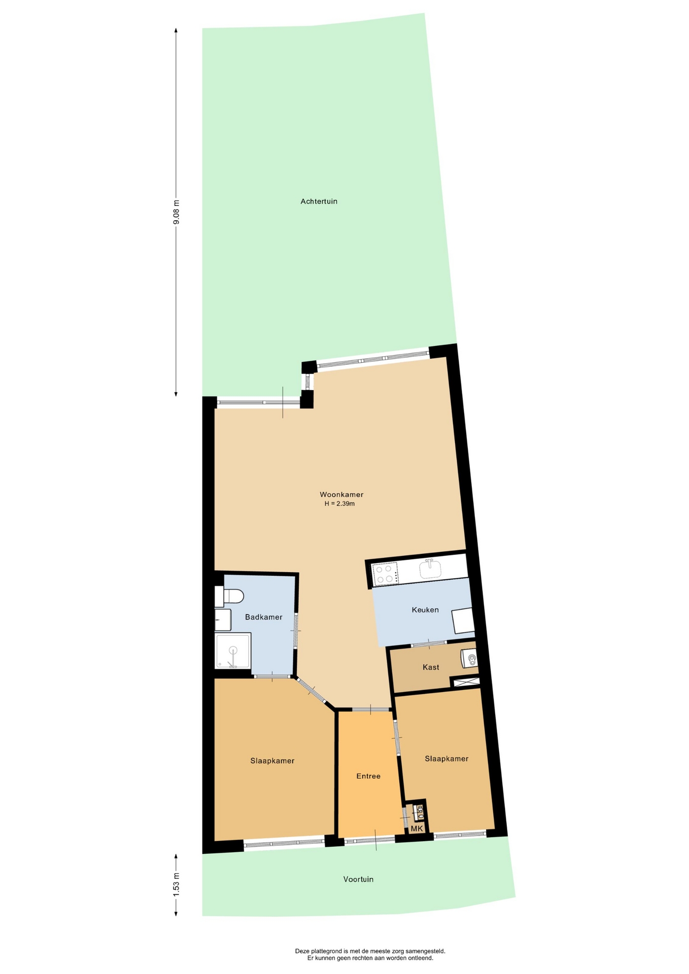 “Deze informatie is door ons met de nodige zorgvuldigheid samengesteld. Onzerzijds wordt echter geen enkele aansprakelijkheid aanvaard voor enige onvolledigheid, onjuistheid of anderszins, dan wel de gevolgen daarvan. Alle opgegeven maten en oppervlakten zijn indicatief.”