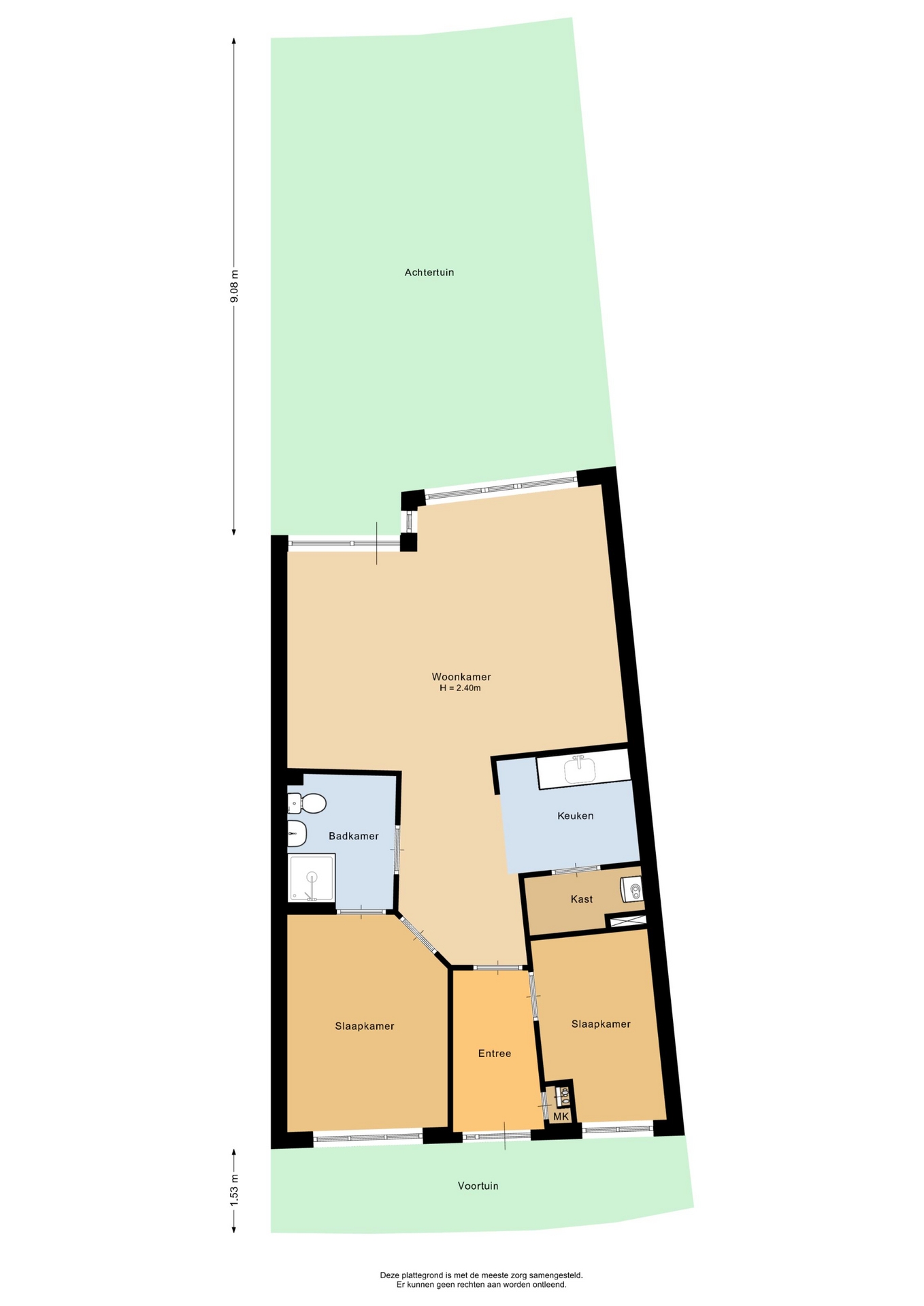 “Deze informatie is door ons met de nodige zorgvuldigheid samengesteld. Onzerzijds wordt echter geen enkele aansprakelijkheid aanvaard voor enige onvolledigheid, onjuistheid of anderszins, dan wel de gevolgen daarvan. Alle opgegeven maten en oppervlakten zijn indicatief.”