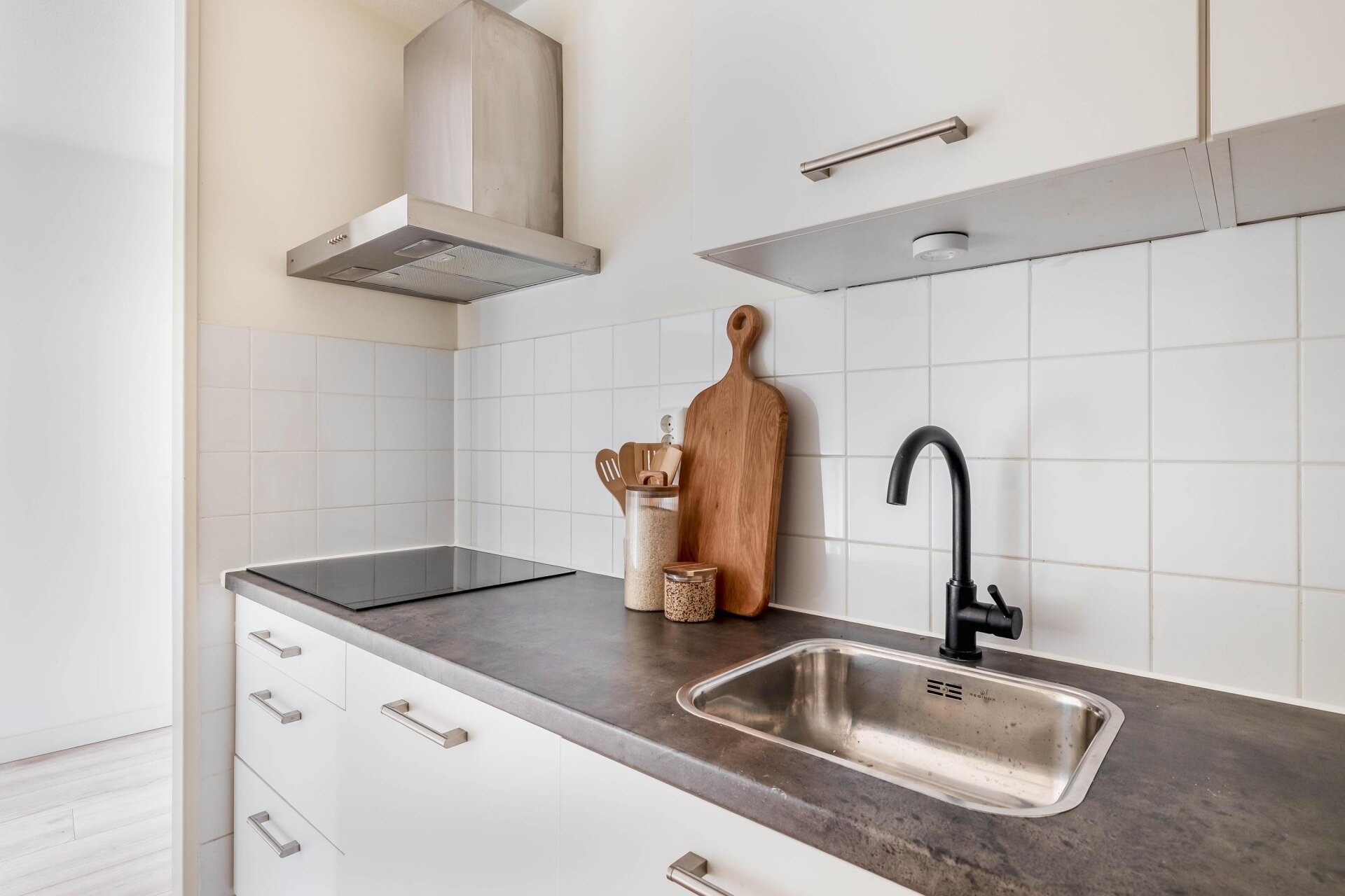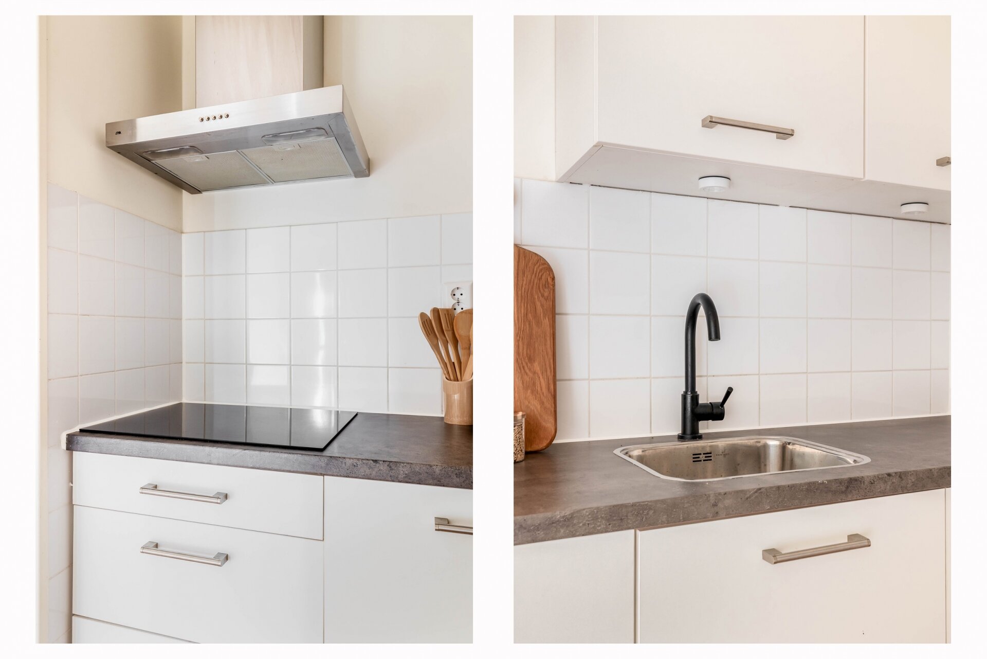 - De keuken is voorzien van een inductiekookplaat, afzuigkap, oven en koelkast.