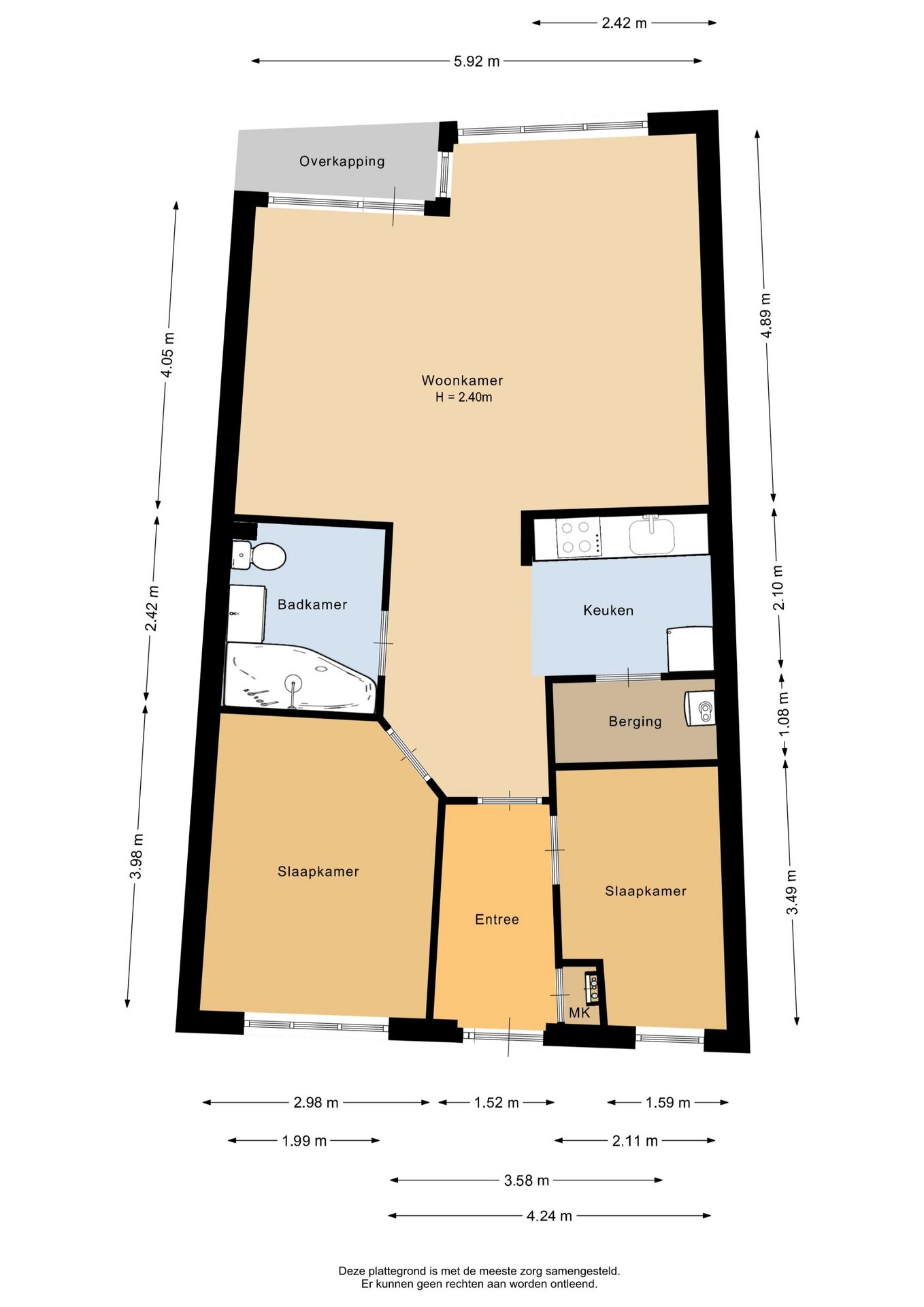 “Deze informatie is door ons met de nodige zorgvuldigheid samengesteld. Onzerzijds wordt echter geen enkele aansprakelijkheid aanvaard voor enige onvolledigheid, onjuistheid of anderszins, dan wel de gevolgen daarvan. Alle opgegeven maten en oppervlakten zijn indicatief.”