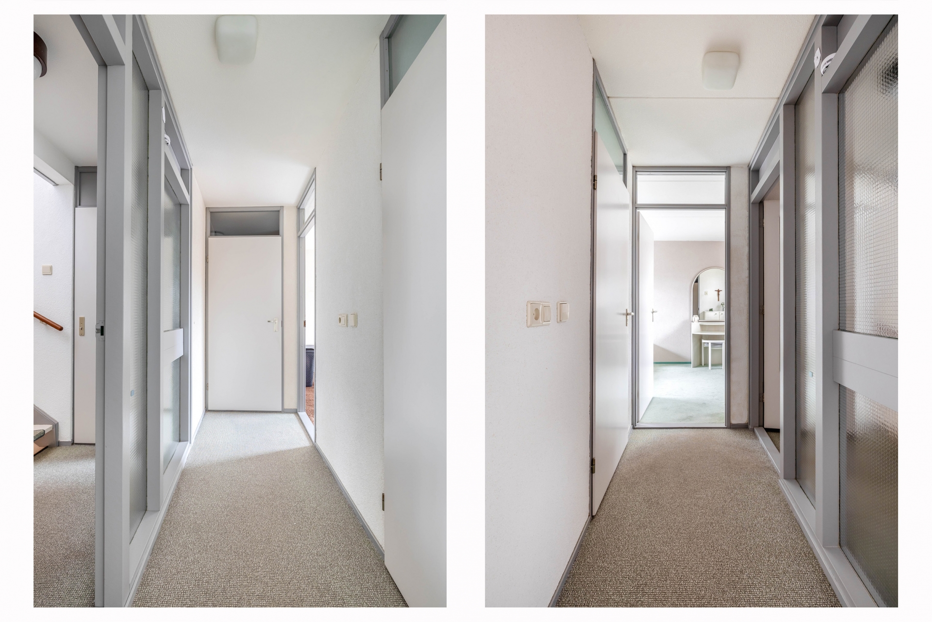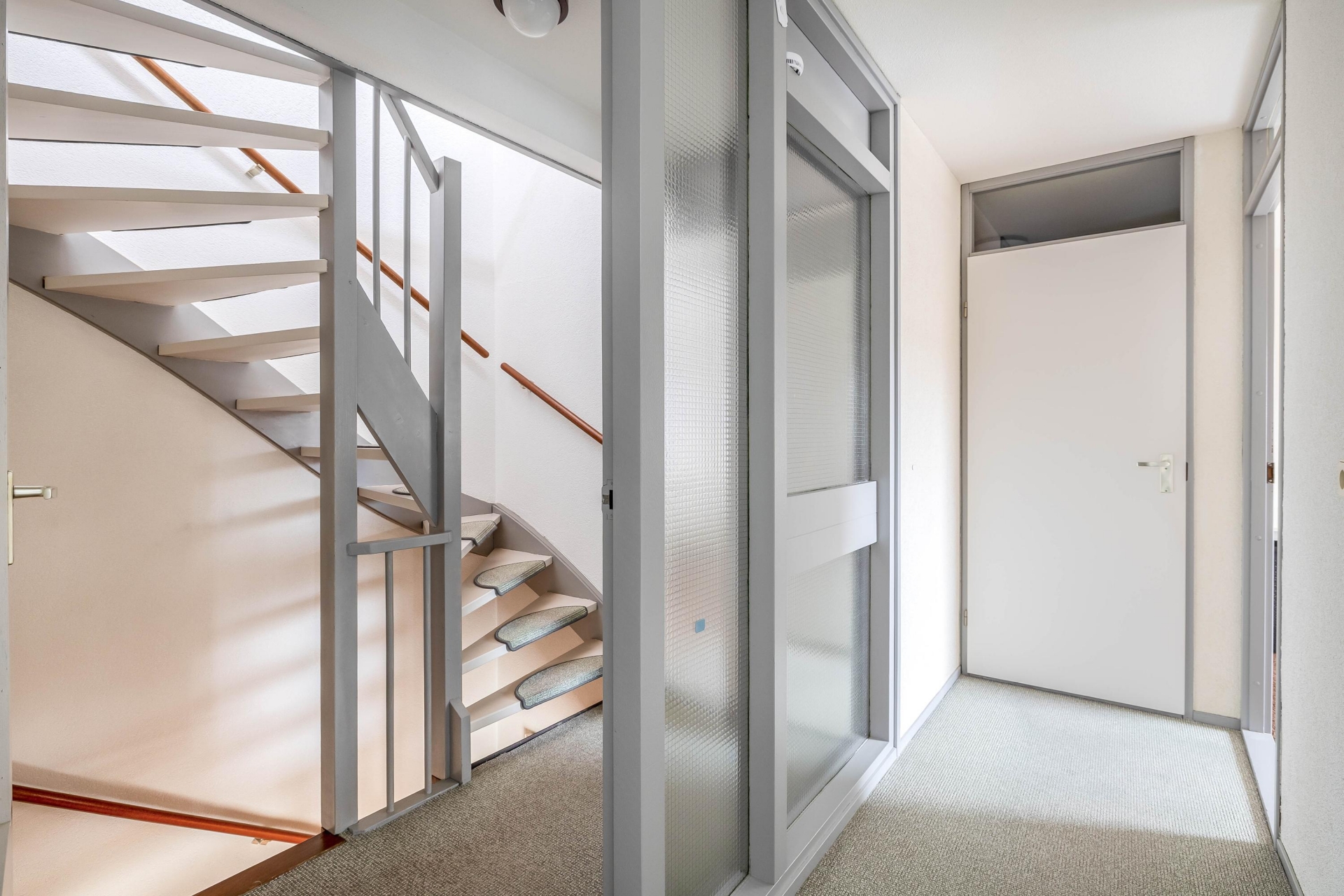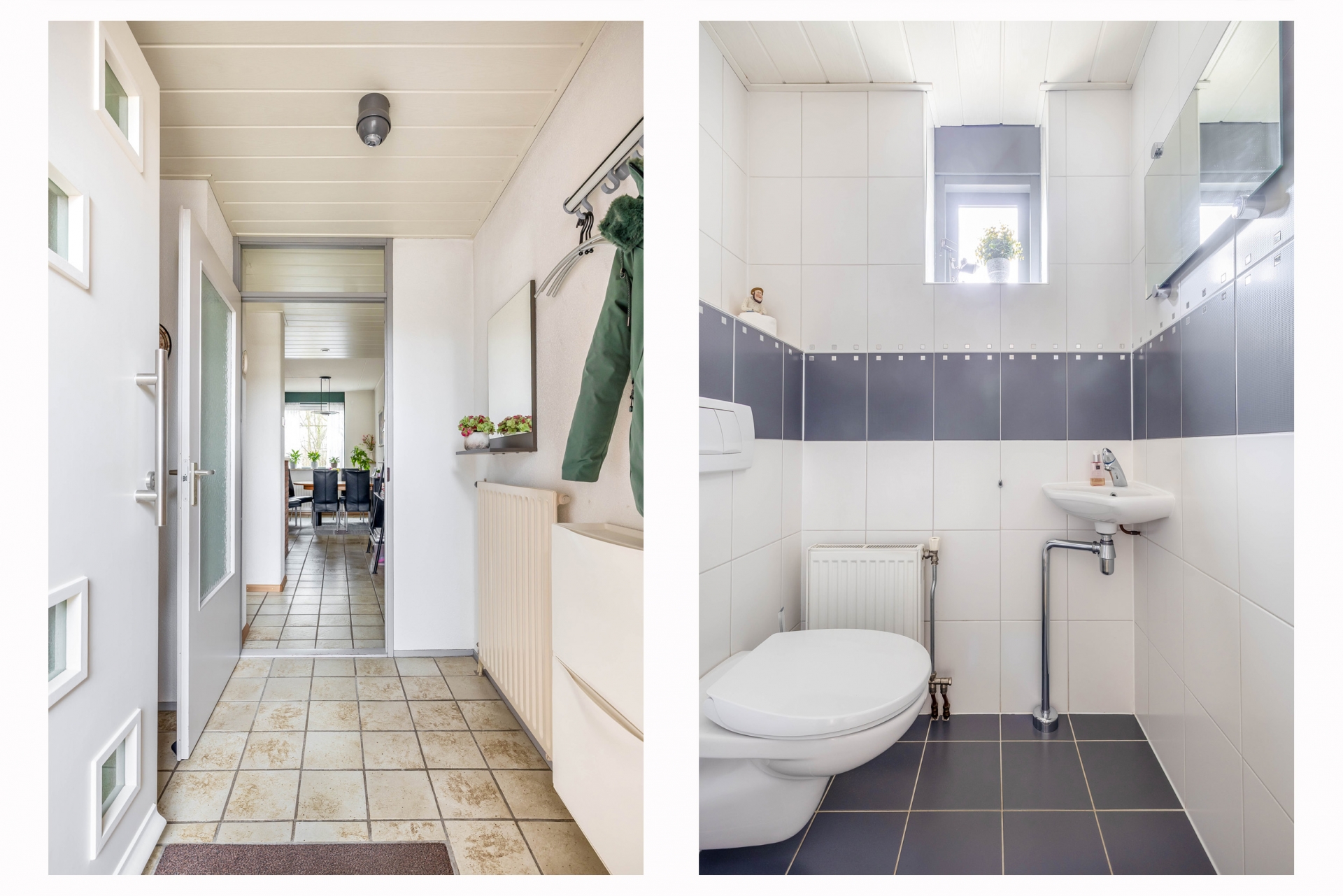 Aan de voorzijde parkeer je eenvoudig meerdere auto’s op eigen erf. De carport zorgt ervoor dat je altijd droog uitstapt. De entree ligt beschut en geeft toegang tot de hal met toilet en meterkast. Vanuit hier loop je direct de leefruimte in.