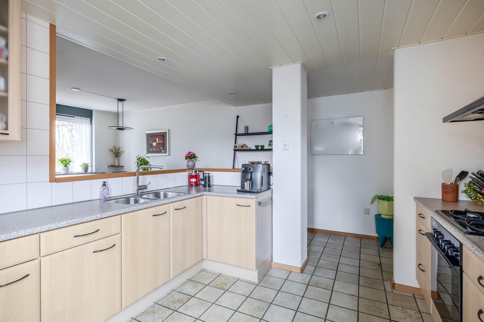 Wat direct opvalt is de ruimte en de breedte van de woonkamer. Met circa 39 m² heb je hier alle vrijheid om een royale zithoek én een grote eettafel te plaatsen. Dankzij de grote raampartijen aan zowel de voor- als achterzijde valt er prettig daglicht binnen.