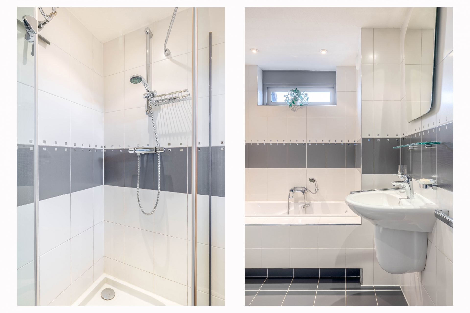 De badkamer is compleet uitgevoerd met een ligbad, separate douche, wastafel en tweede toilet. Dankzij het raam is er natuurlijke ventilatie en prettig daglicht.