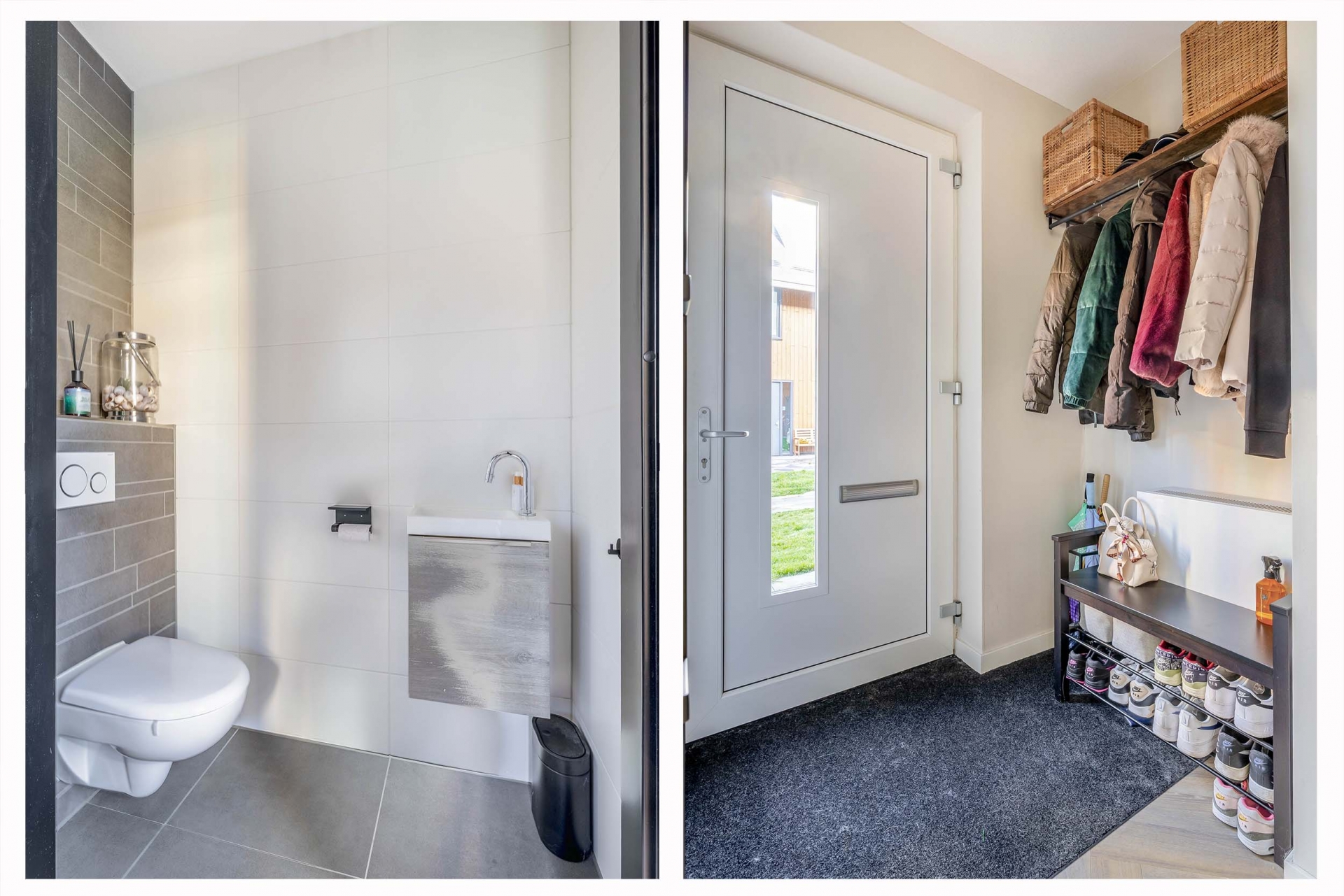 Vanaf het moment dat je binnenkomt, straalt de woning luxe en zorgvuldige afwerking uit. Alles is tot in detail verzorgd. Je betreedt de woning via het groene parkje en komt binnen in de entree, die toegang biedt tot de meterkast, het toilet met fonteintje en de keuken.