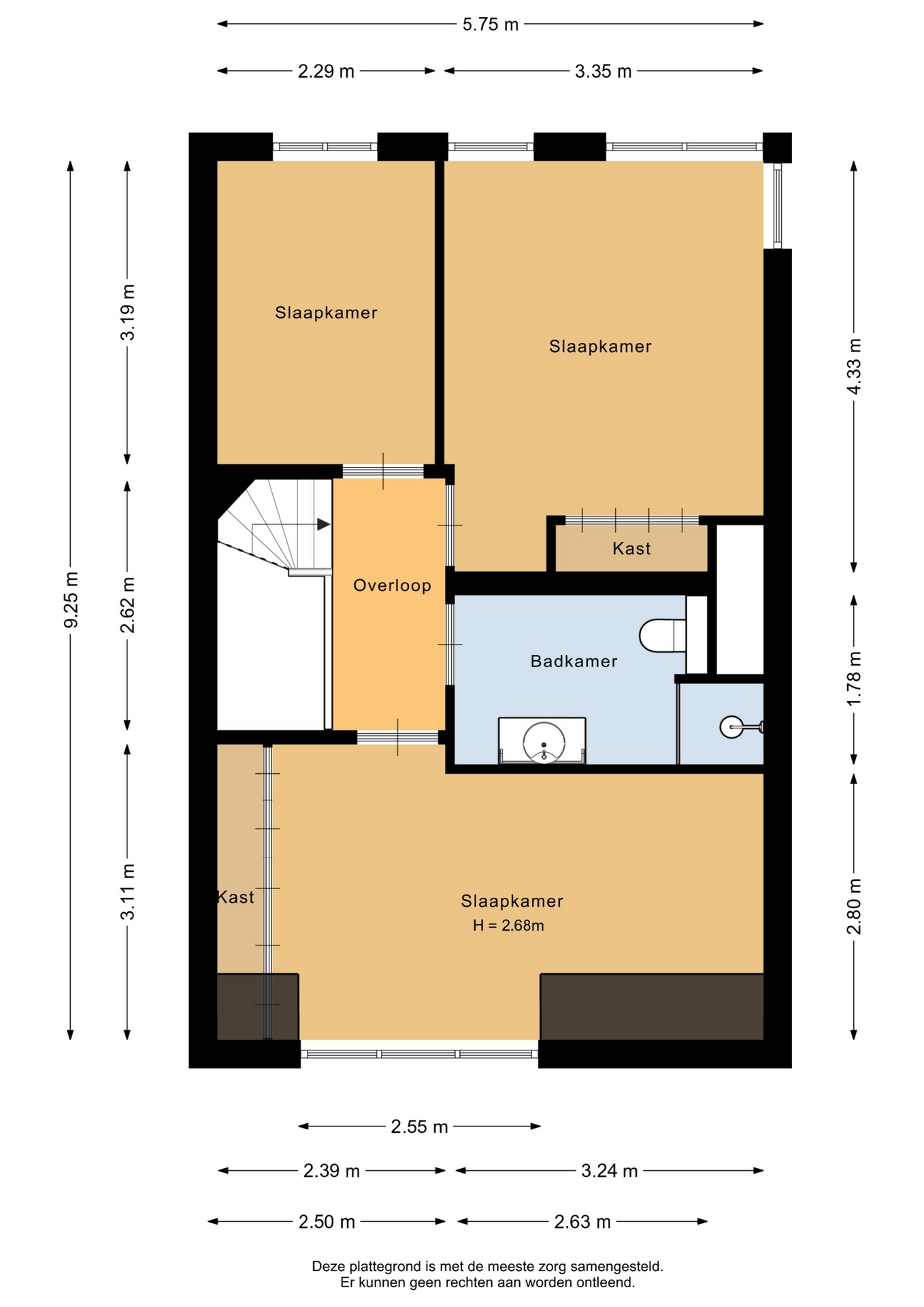 “Deze informatie is door ons met de nodige zorgvuldigheid samengesteld. Onzerzijds wordt echter geen enkele aansprakelijkheid aanvaard voor enige onvolledigheid, onjuistheid of anderszins, dan wel de gevolgen daarvan. Alle opgegeven maten en oppervlakten zijn indicatief.”