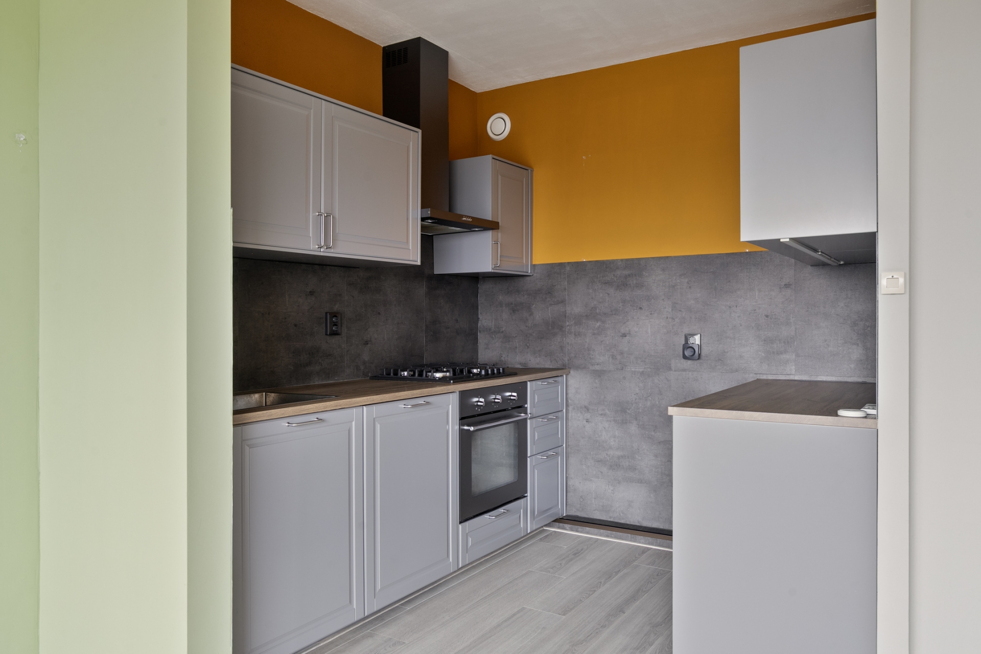 De keuken is compact maar functioneel en uitgevoerd in een moderne, neutrale kleurstelling. Er is voldoende kastruimte en werkblad om prettig te koken. Of je nu snel iets klaarmaakt na een werkdag of uitgebreid kookt in het weekend, hier kan het allemaal.