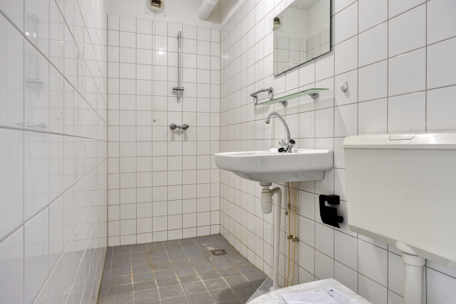 De badkamer is eenvoudig maar compleet. Voorzien van een douche, toilet en wastafel heb je hier alles wat je nodig hebt. Praktisch ingedeeld en overzichtelijk. Juist voor een eerste huis is dat vaak precies wat je zoekt: geen overbodige luxe, maar gewoon goed en functioneel.
