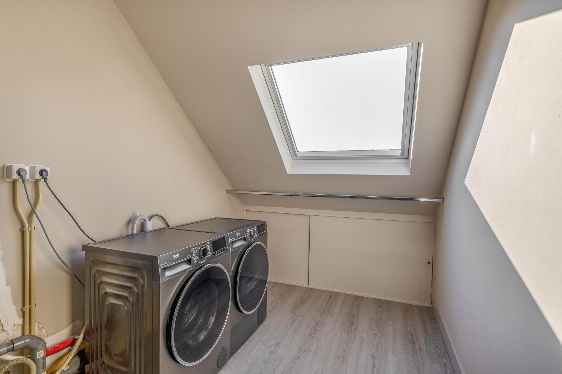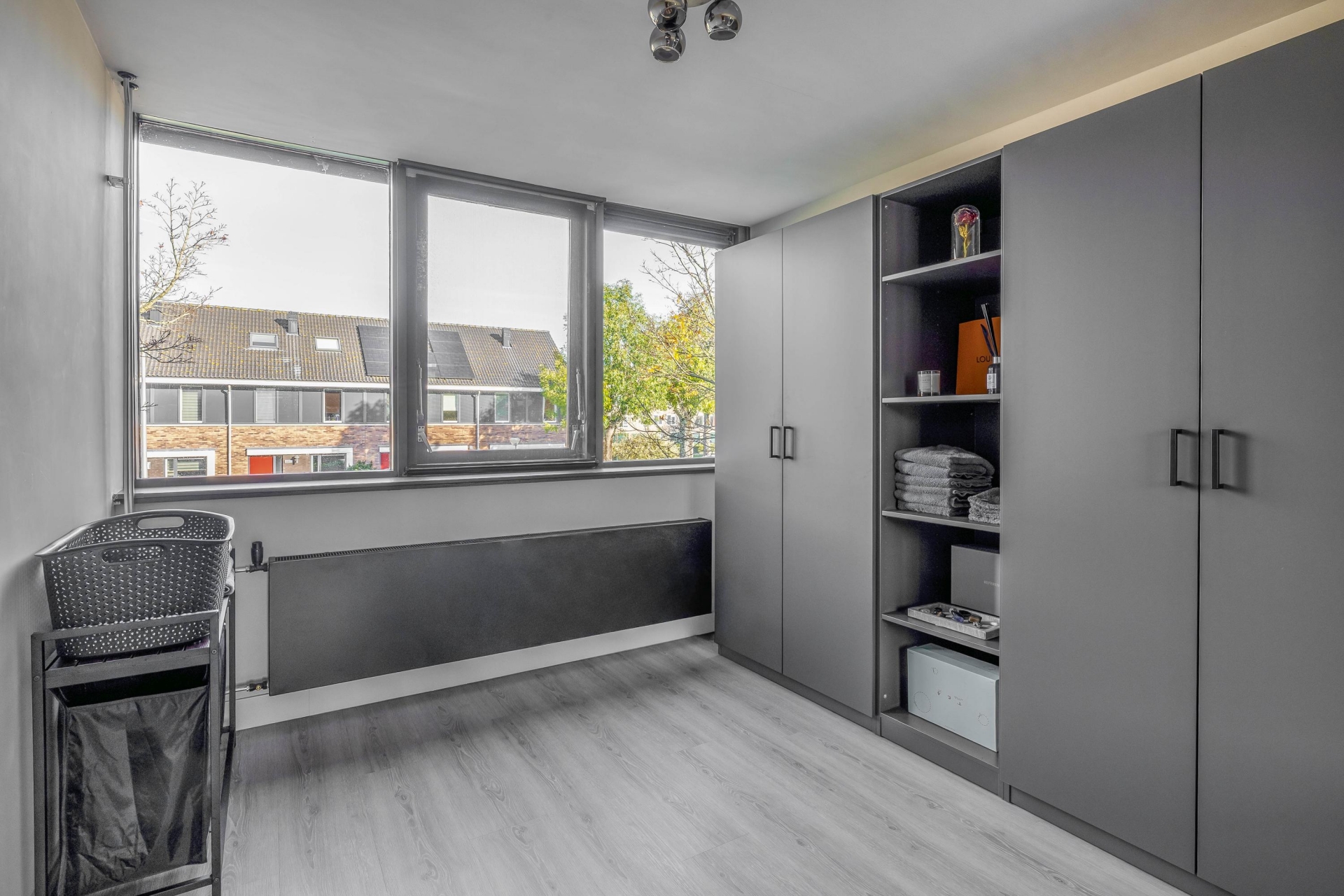 De tweede verdieping is een volwaardige extra woonlaag, voorzien van twee dakkapellen en een ruime vierde slaapkamer. Hier vind je tevens een aparte wasruimte met aansluitingen voor wasmachine en droger. Daarnaast is er een grote separate opslagruimte én extra bergruimte achter de knieschotten, waardoor er verrassend veel opbergmogelijkheden zijn. Dankzij de dakkapellen is de ruimte licht en goed bruikbaar – ideaal als slaapkamer, kantoor of hobbykamer. Ook is er een vaste internetkabel aanwezig, perfect voor thuiswerken.