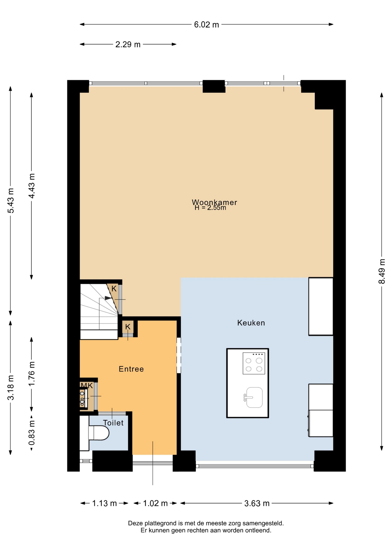 “Deze informatie is door ons met de nodige zorgvuldigheid samengesteld. Onzerzijds wordt echter geen enkele aansprakelijkheid aanvaard voor enige onvolledigheid, onjuistheid of anderszins, dan wel de gevolgen daarvan. Alle opgegeven maten en oppervlakten zijn indicatief.”