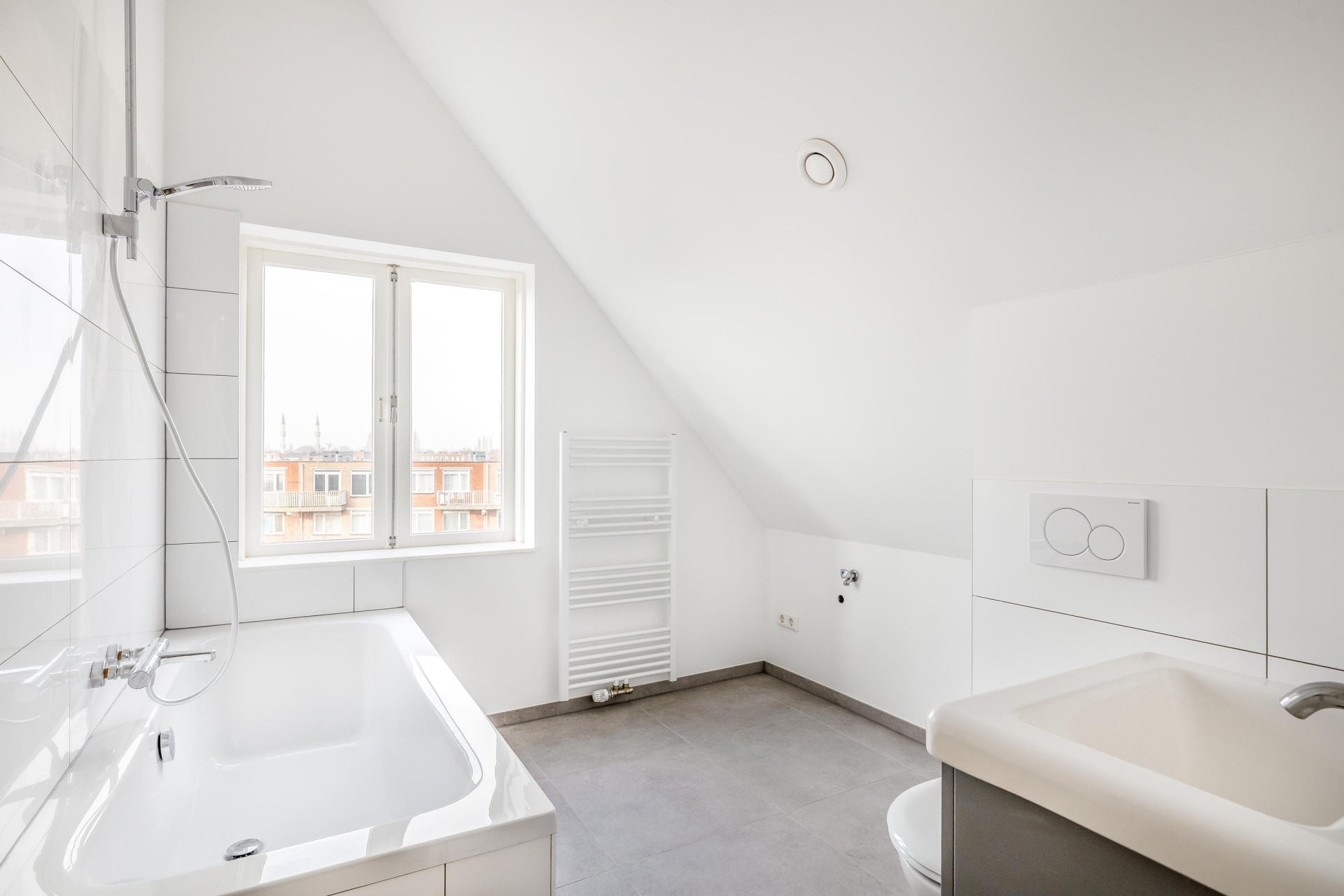 De badkamer is in 2025 vernieuwd en praktisch ingericht met ligbad-douchecombinatie, wastafelmeubel met bergruimte, designradiator en aansluiting voor wasmachine en droger. Ook op deze verdieping vind je de opstelplaats van de CV-ketel (2025).