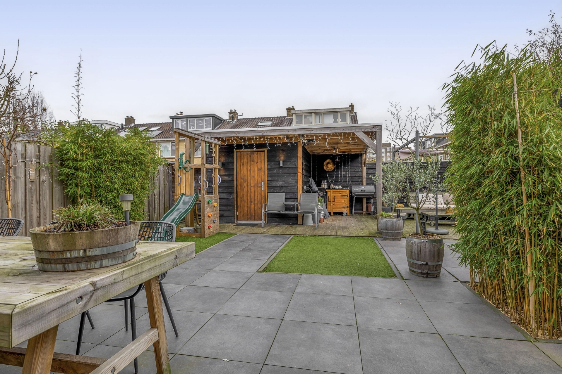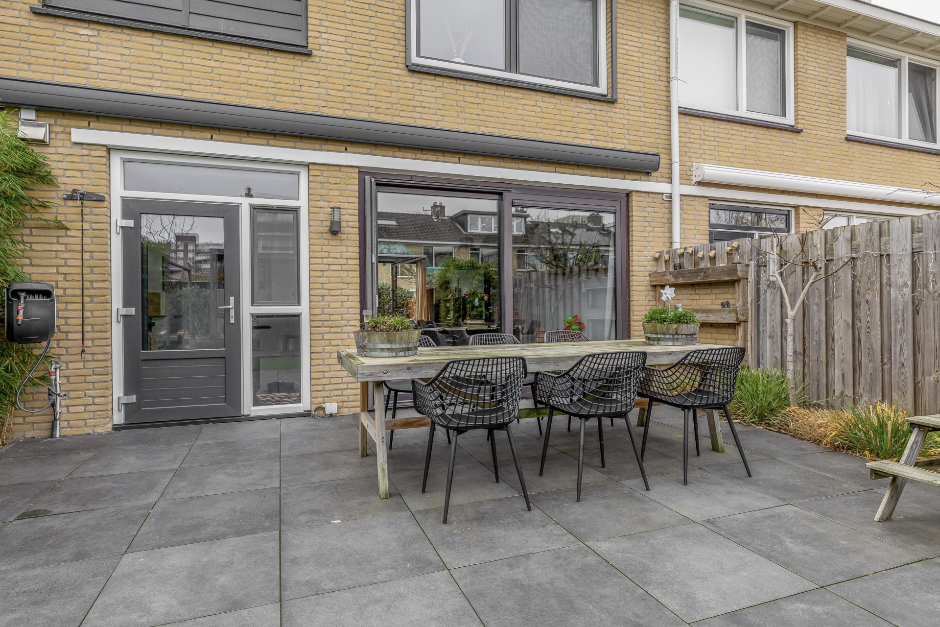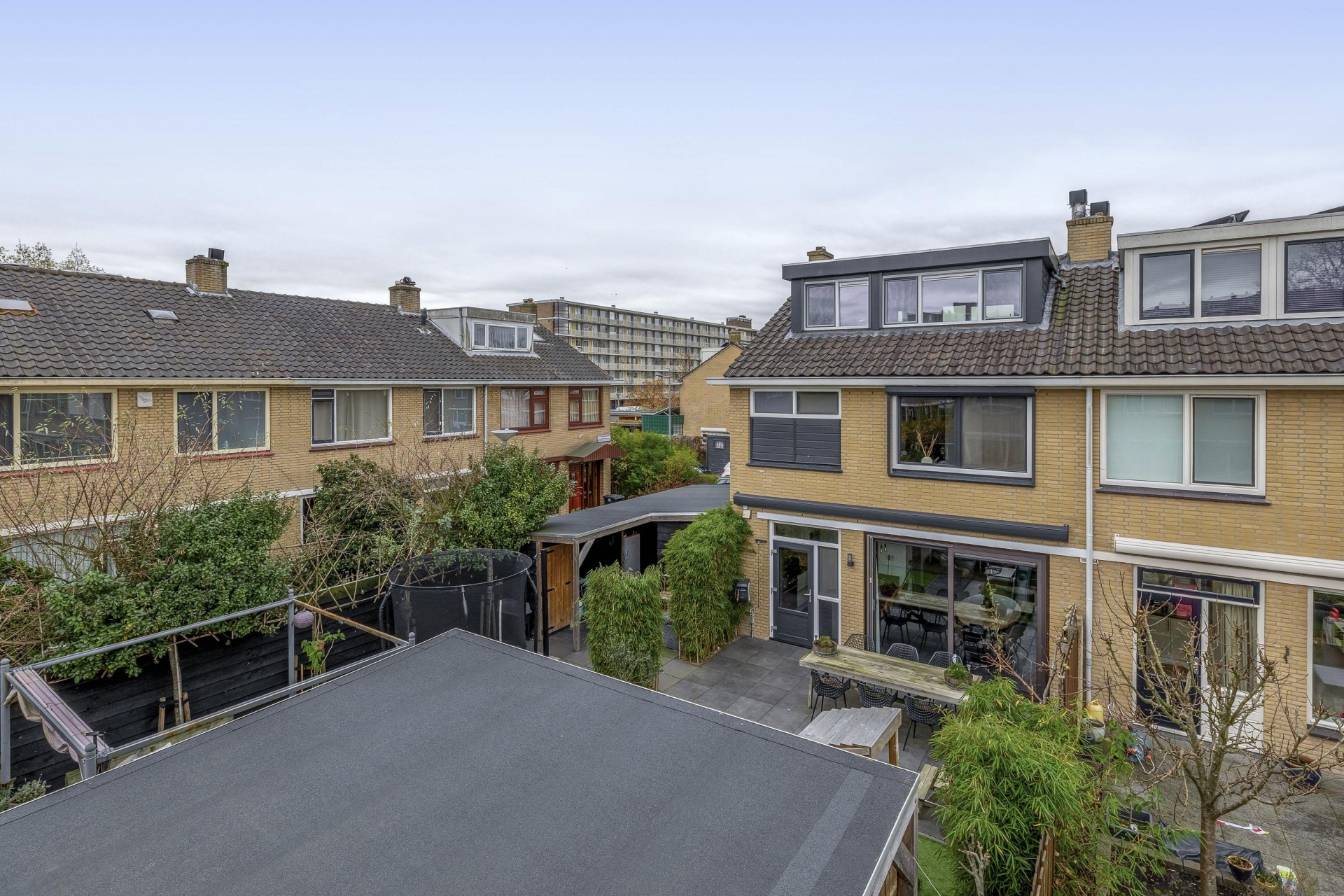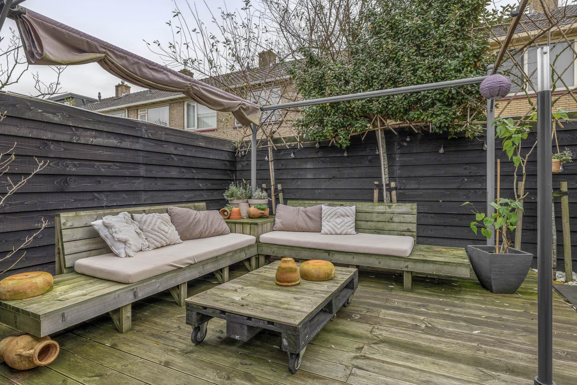 De achtertuin ligt op het oosten, maar door de hoekligging kun je vanaf de ochtend tot later in de avond genieten van de zon. De tuin is verzorgd aangelegd met terras, groen en een houten geïsoleerde berging met overkapping achterin: een heerlijke plek om buiten te eten, te borrelen of de kinderen te laten spelen. Naast het huis, in het verlengde van de oprit, bevindt zich een carport met 2 openslaande deuren welke verschillende mogelijkheden biedt.
