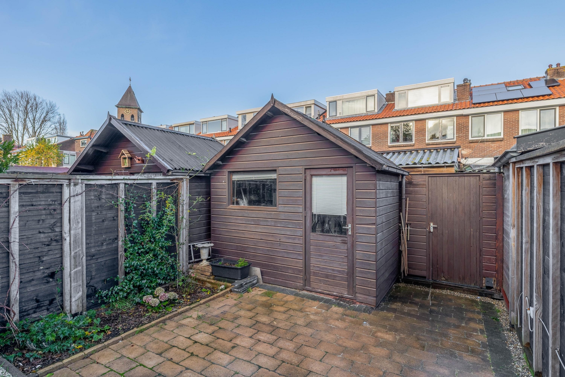De diepe achtertuin is gelegen op het noordoosten, ideaal voor wie houdt van een prettige combinatie van ochtend- en middagzon. ’s Ochtends geniet je van het eerste licht tijdens een ontbijt buiten, terwijl de rest van de dag een aangename, rustige sfeer heerst. Perfect voor loungen, werken in de tuin of lang tafelen zonder de felste zon. Achterin bevindt zich een ruime berging, ideaal voor fietsen en extra opslag. De tuin vormt een mooie verlenging van de luxe leefkeuken.