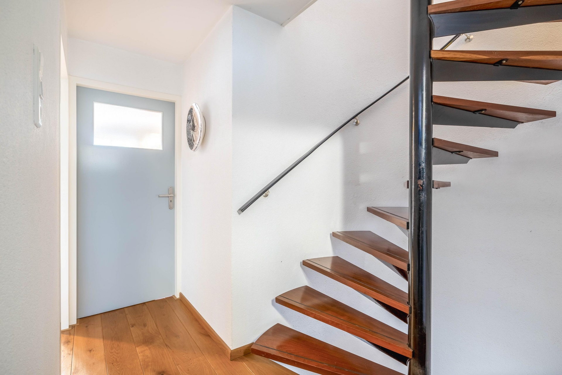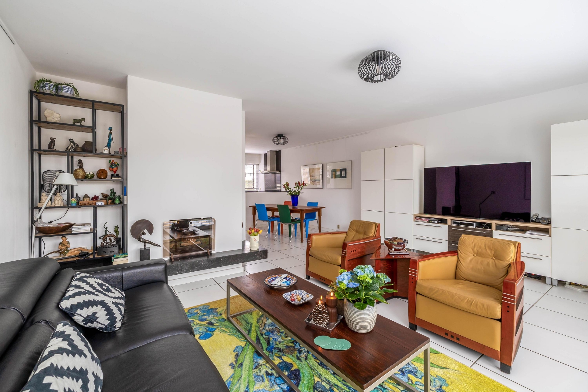 Zodra je binnenkomt, merk je dat dit huis goed onderhouden is. De hal is netjes afgewerkt en geeft toegang tot de woonkamer. De living is ruim opgezet en profiteert van grote raampartijen aan de achterzijde. Dankzij de schuifpui loopt binnen naadloos over in buiten – vooral op zonnige dagen is dat een groot pluspunt.