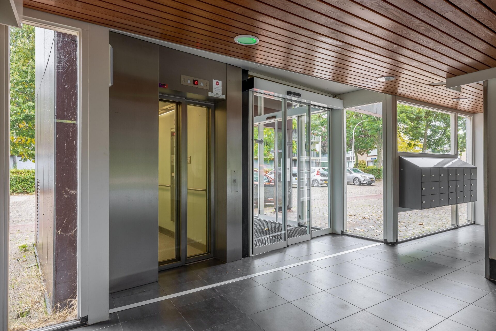 Afgesloten entree van het verzorgde complex op de begane grond met bellentableau en brievenbussen. Ruime centrale hal met liftinstallatie en het trappenhuis. Via de centrale hal is er ook toegang tot de bergingen.