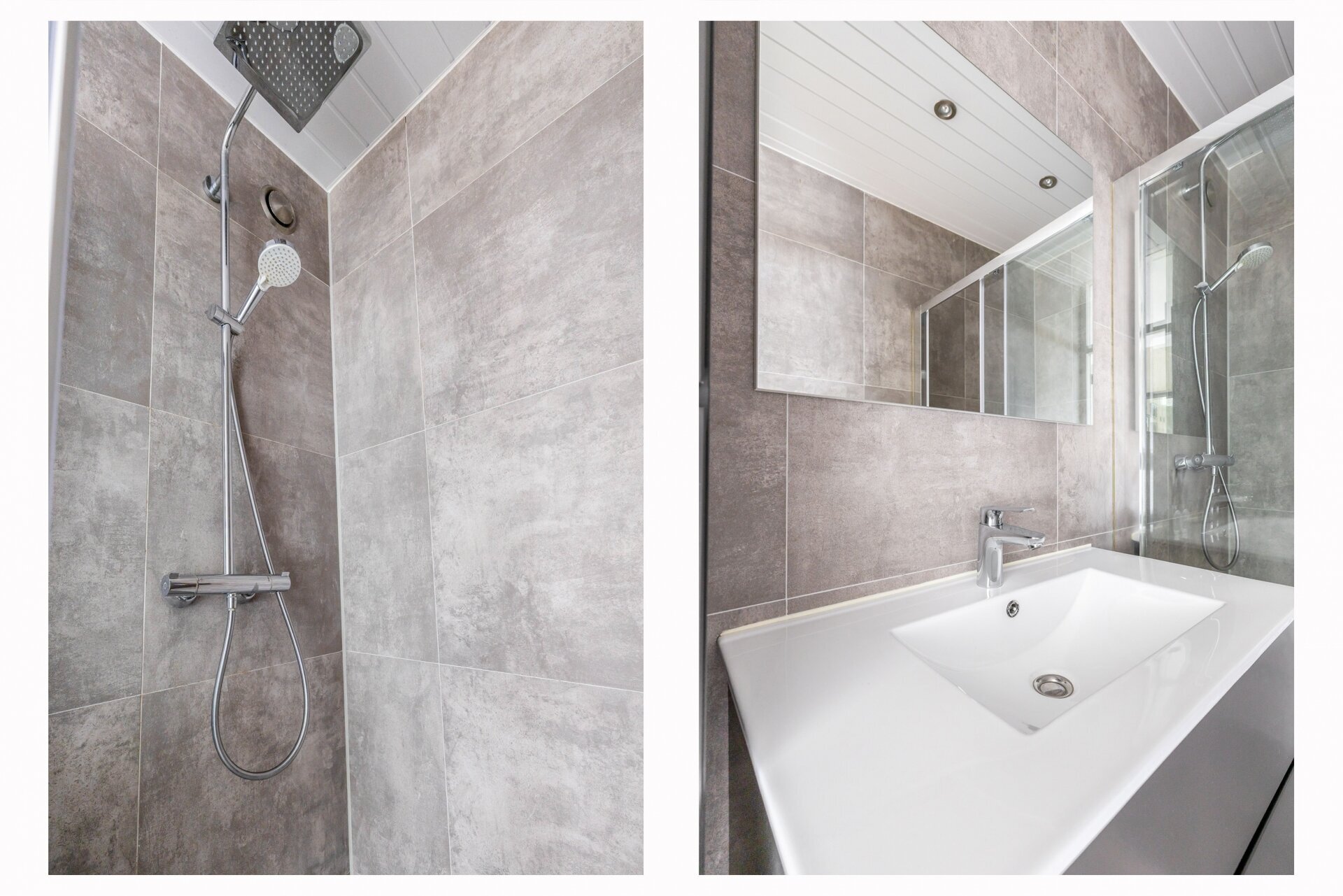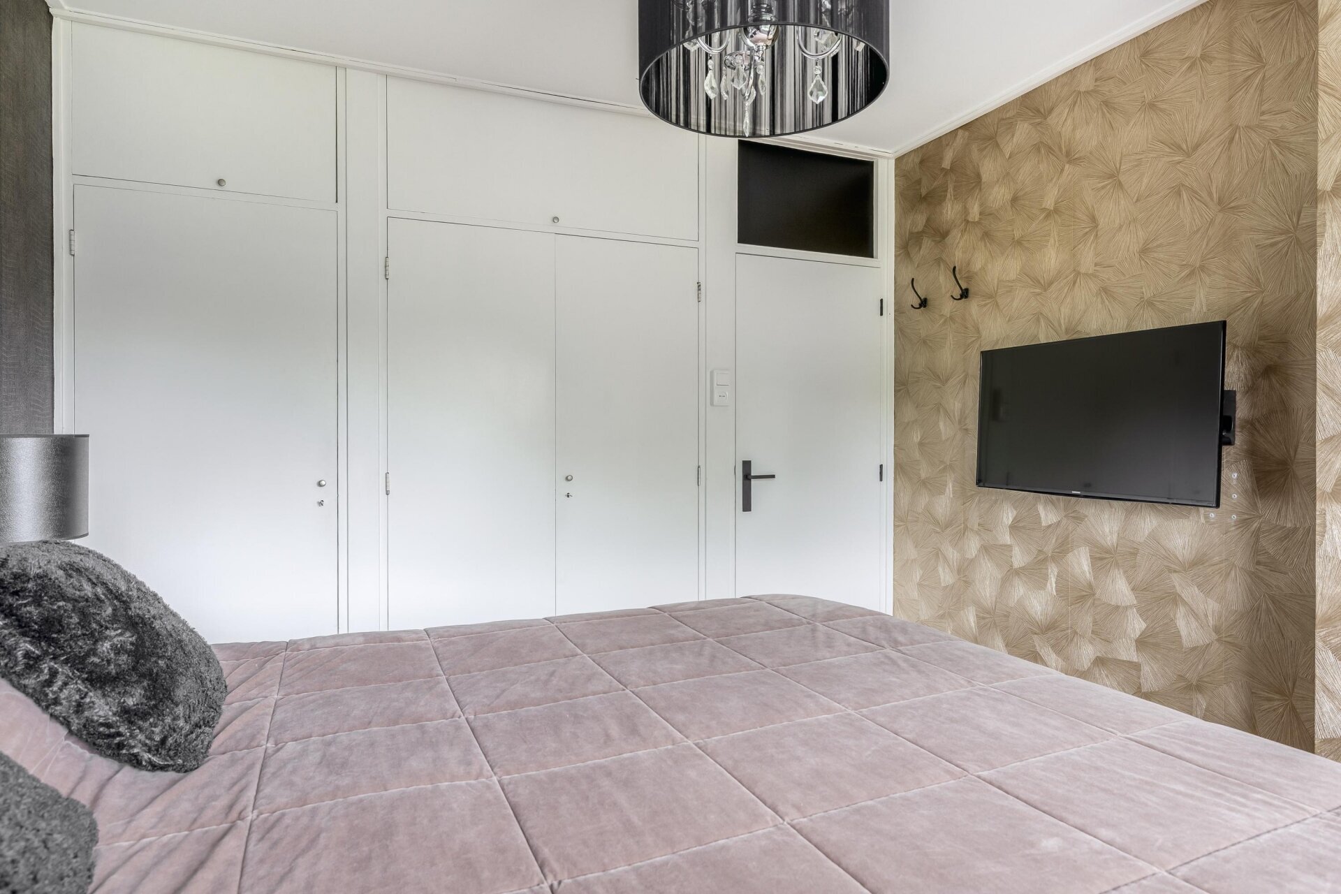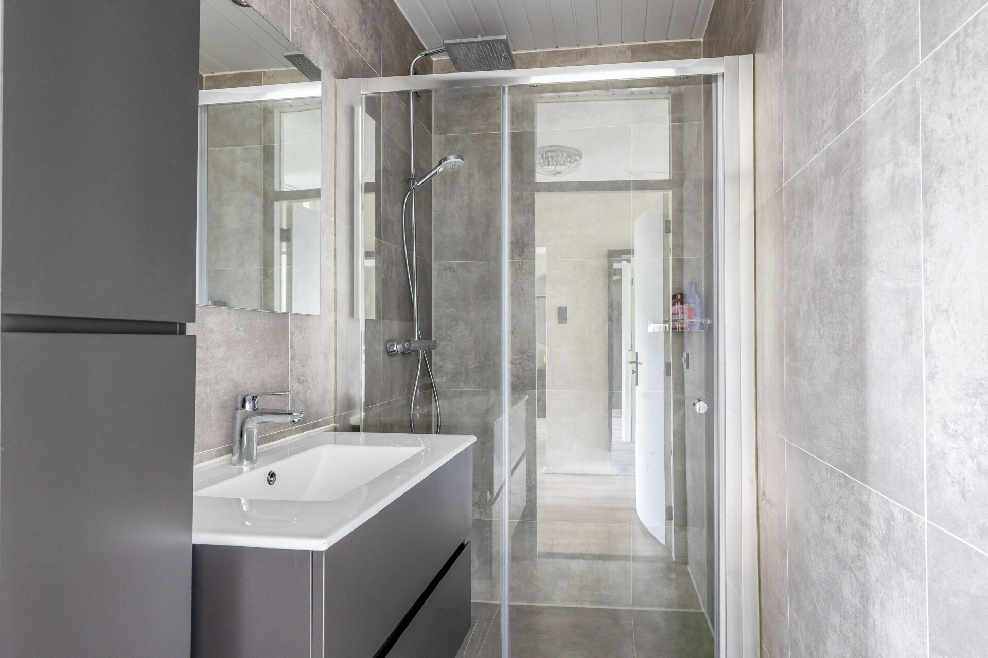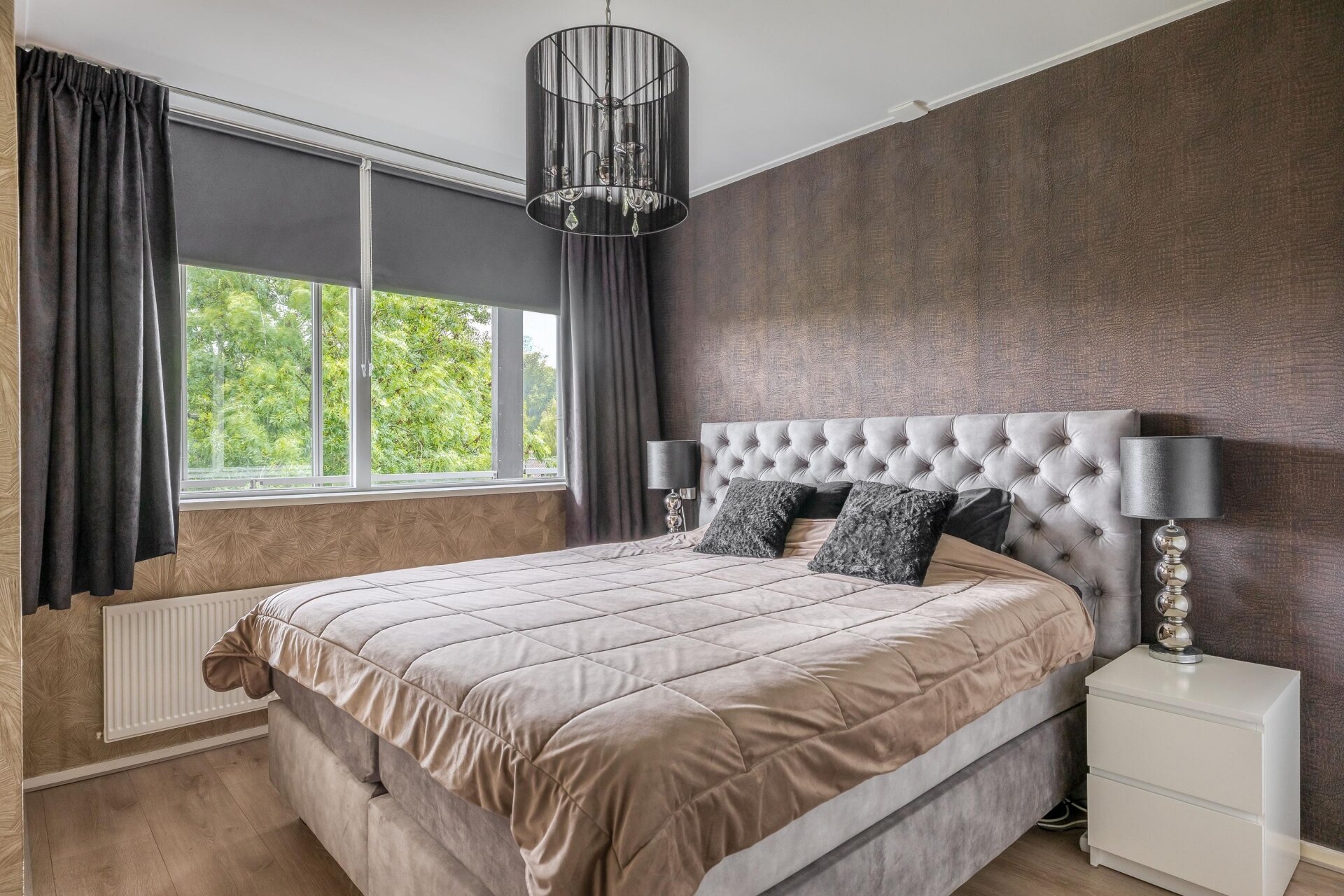 De royale hoofdslaapkamer ligt aan de voorzijde en beschikt over praktische vaste kasten. Vanuit de tussenhal heeft u toegang tot het moderne, separate toilet en de stijlvolle badkamer met inloopdouche en wastafelmeubel.