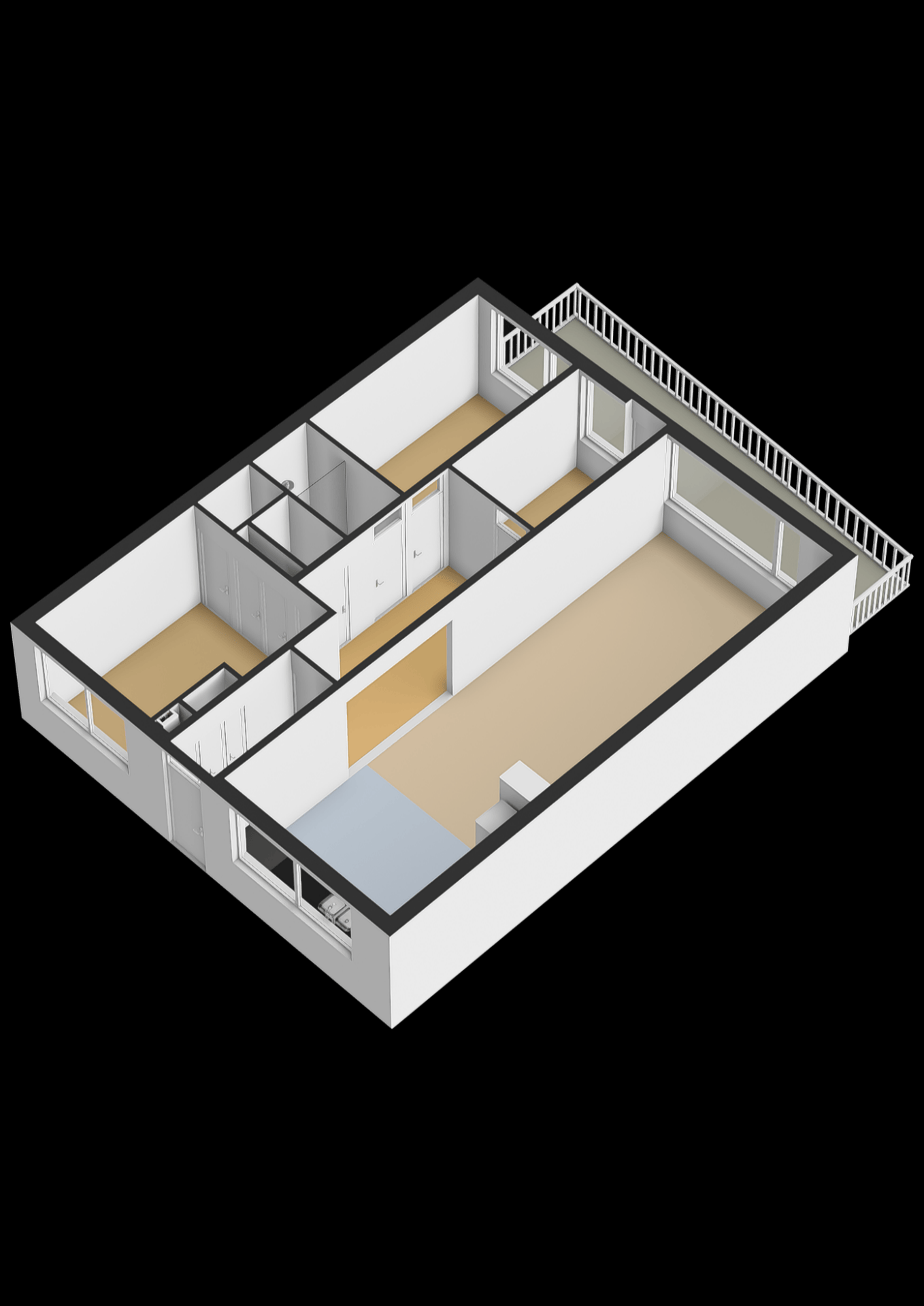 Aan de achterzijde bevinden zich de tweede en derde slaapkamer. Vanuit één van deze kamers is er toegang tot het zonnige, vrij gelegen en ruime balkon.