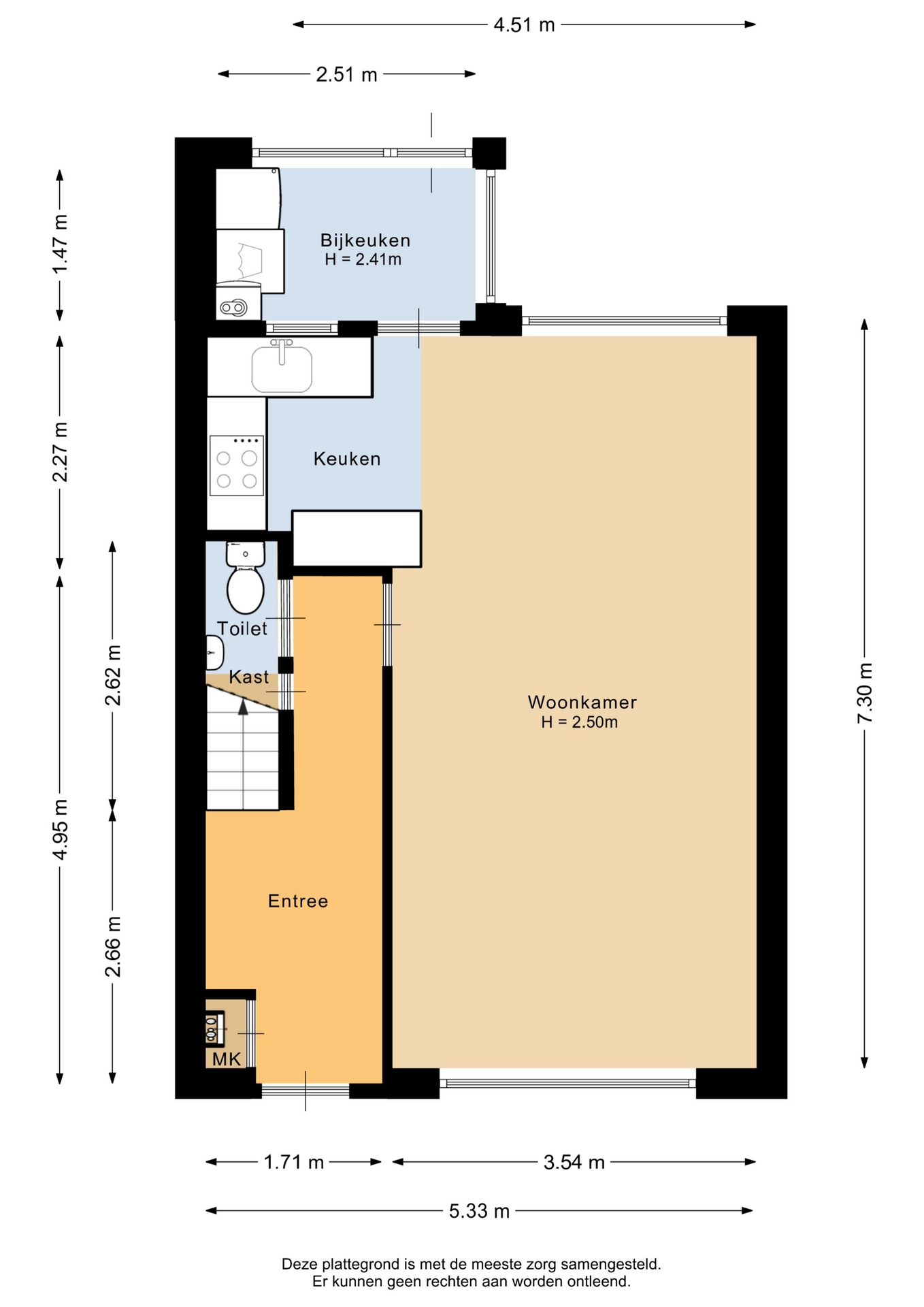 “Deze informatie is door ons met de nodige zorgvuldigheid samengesteld. Onzerzijds wordt echter geen enkele aansprakelijkheid aanvaard voor enige onvolledigheid, onjuistheid of anderszins, dan wel de gevolgen daarvan. Alle opgegeven maten en oppervlakten zijn indicatief.”