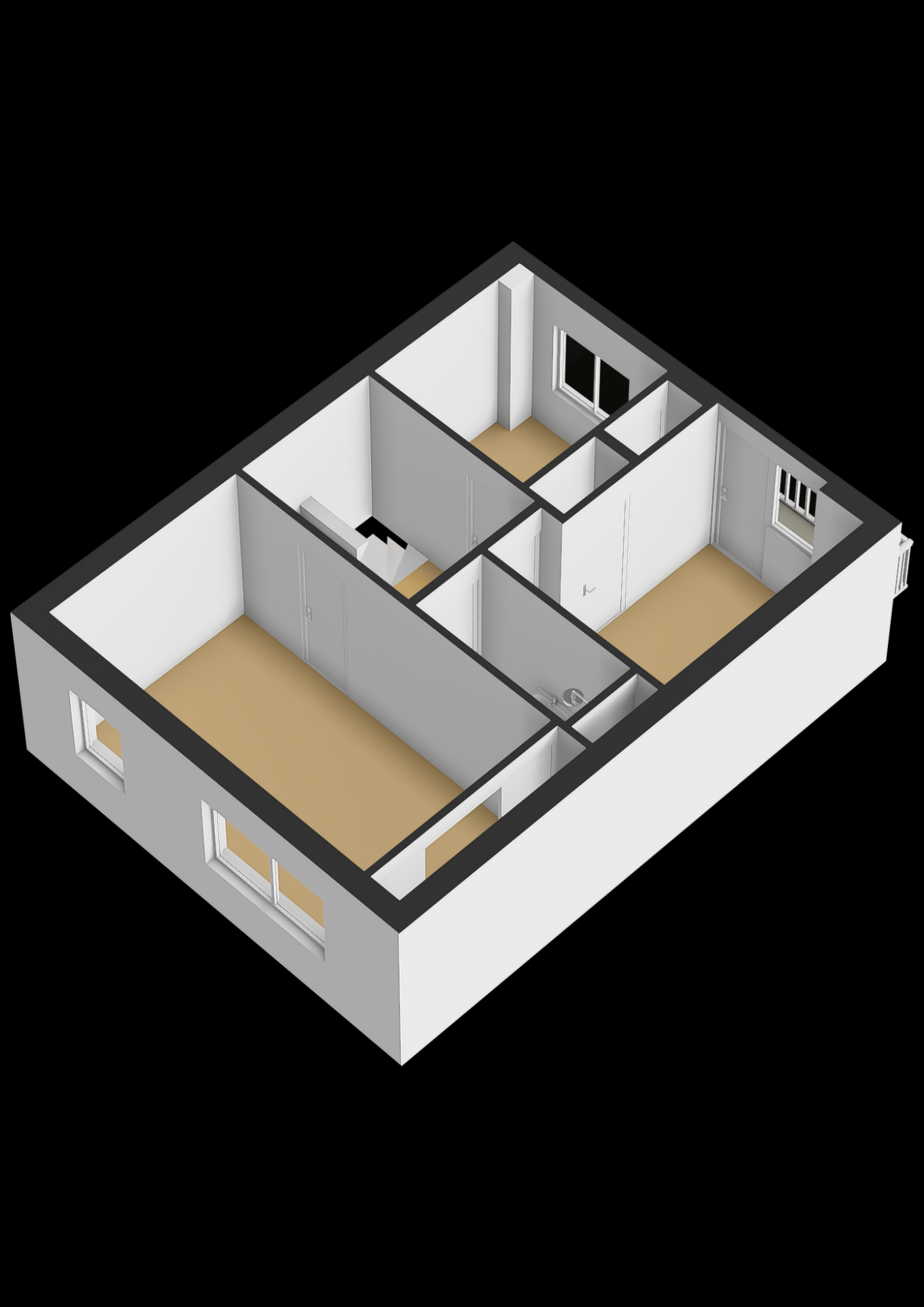 Op de eerste verdieping vind je drie slaapkamers van verschillende formaten, waarvan de grootste aan de voorzijde ligt. Deze kamer biedt genoeg ruimte voor een tweepersoonsbed én een kledingkast. De twee overige kamers zijn ideaal als kinderkamer, werkkamer of logeerkamer. Dankzij de rechte gevels is er geen ruimteverlies en voelt elke kamer ruim aan.