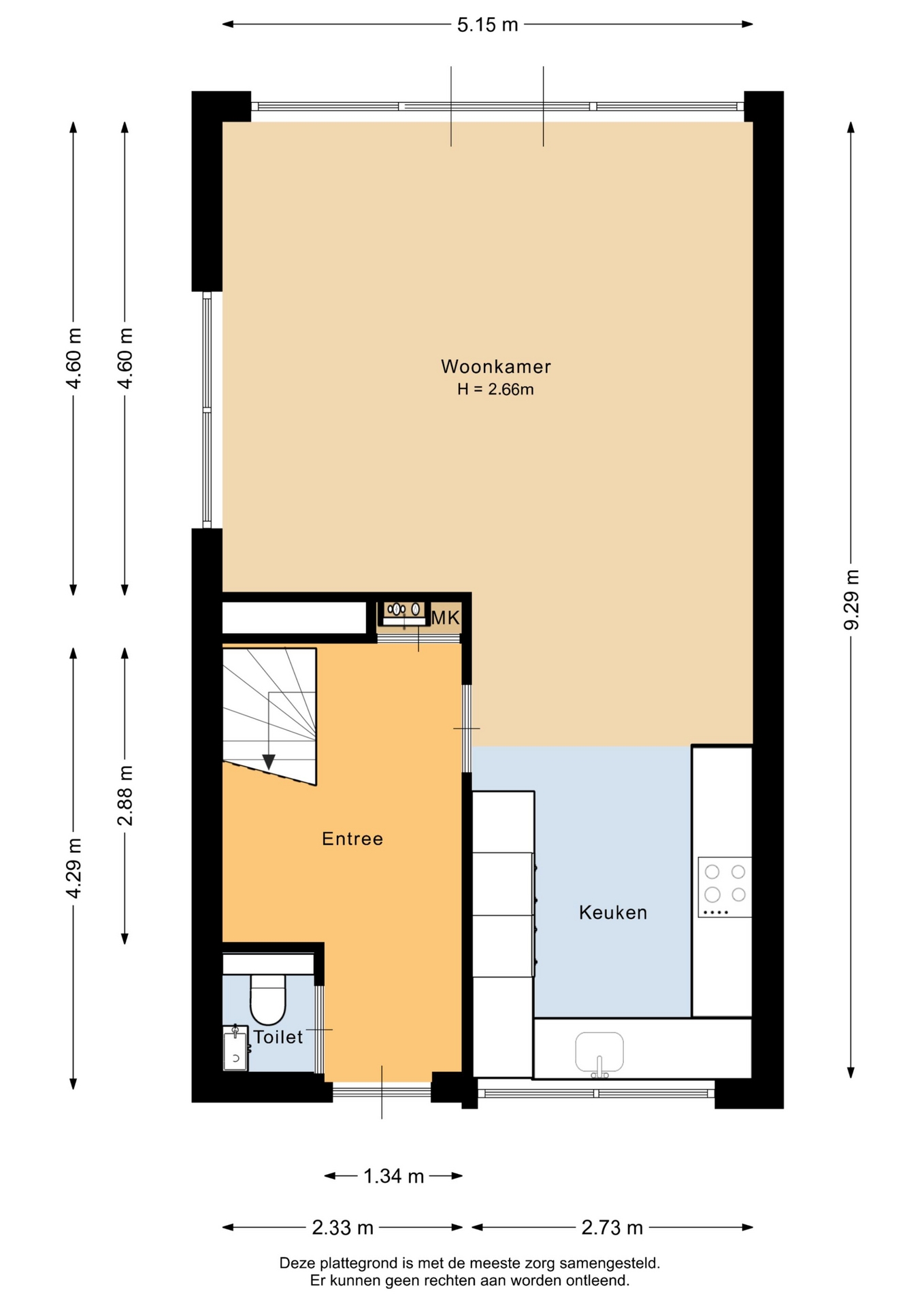 “Deze informatie is door ons met de nodige zorgvuldigheid samengesteld. Onzerzijds wordt echter geen enkele aansprakelijkheid aanvaard voor enige onvolledigheid, onjuistheid of anderszins, dan wel de gevolgen daarvan. Alle opgegeven maten en oppervlakten zijn indicatief.”