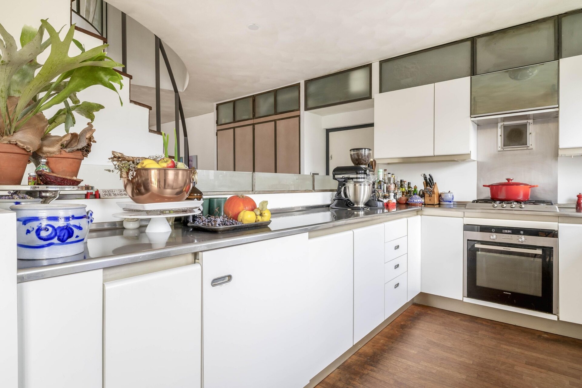 De keuken bevindt zich aan de achterzijde van de woning en is voorzien van diverse inbouwapparatuur. Hoewel functioneel, biedt deze ruimte de mogelijkheid om te moderniseren en naar eigen smaak aan te passen.