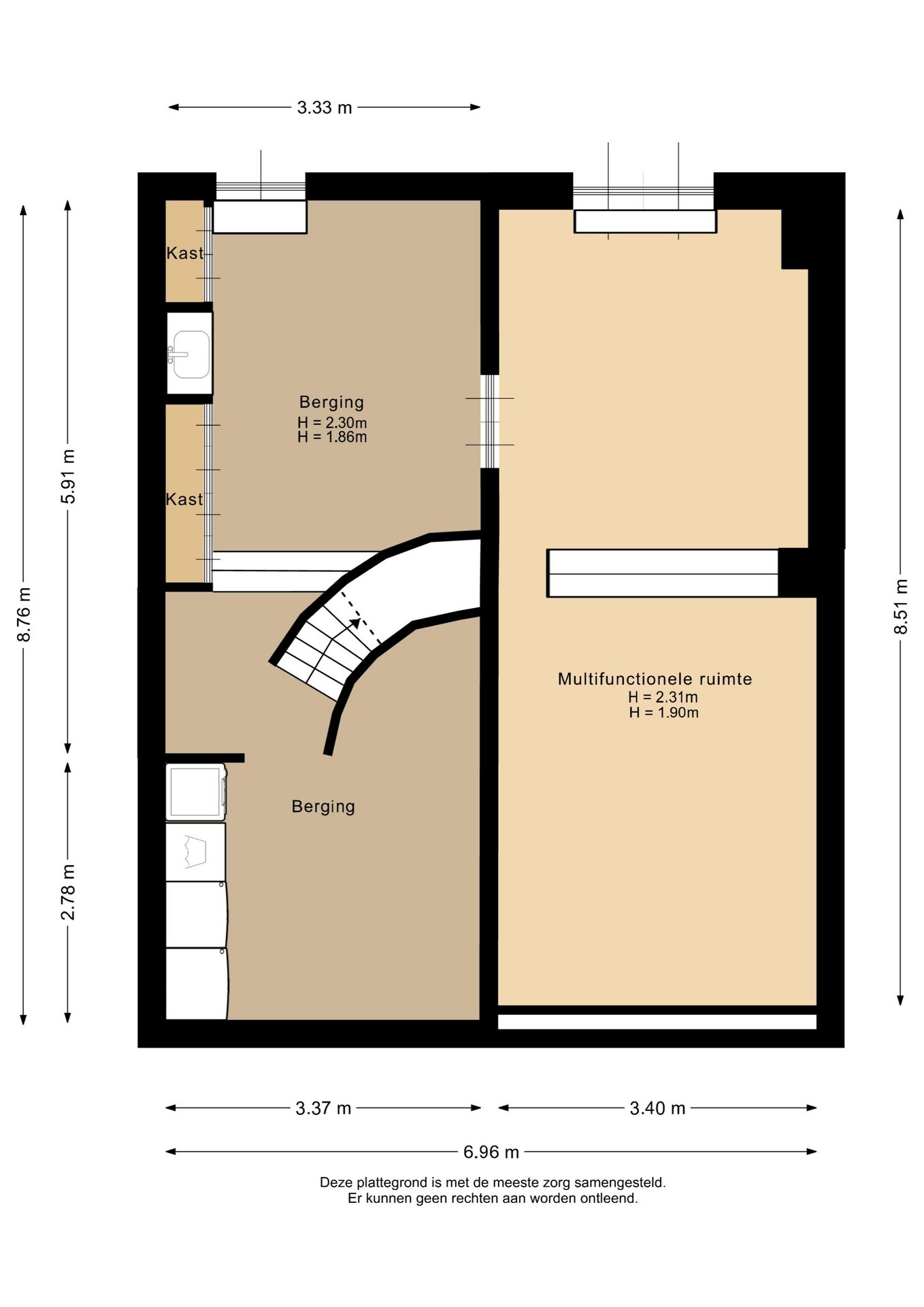 - Multifunctionele ruimte in souterrain die voor tal van mogelijkheden te gebruiken is;