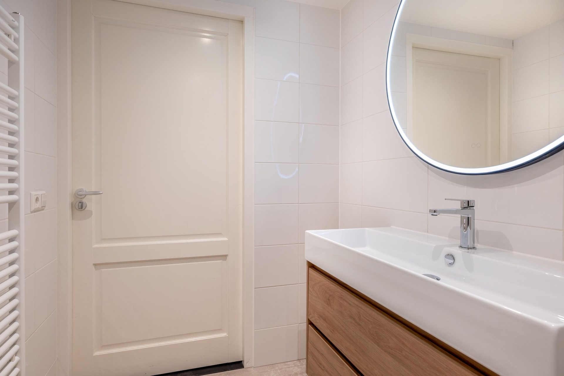 De begane grond beschikt over een prachtig woongedeelte en een nieuwe royale en moderne woonkeuken die van alle gemakken is voorzien met diverse inbouw apparatuur. Verder beschikt de begane grond over een ruime bijkeuken met keukenblok een toilet en een nieuwe badkamer met royale douche, wastafel, meubel en designratiator. Wat verder opvalt is een enorme kastruimte waar de wasruimte in is geplaatst, ideaal!